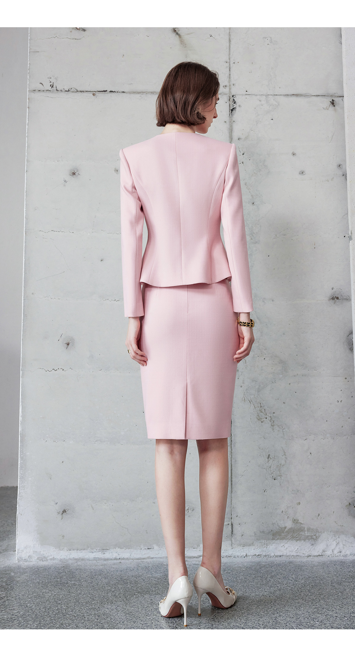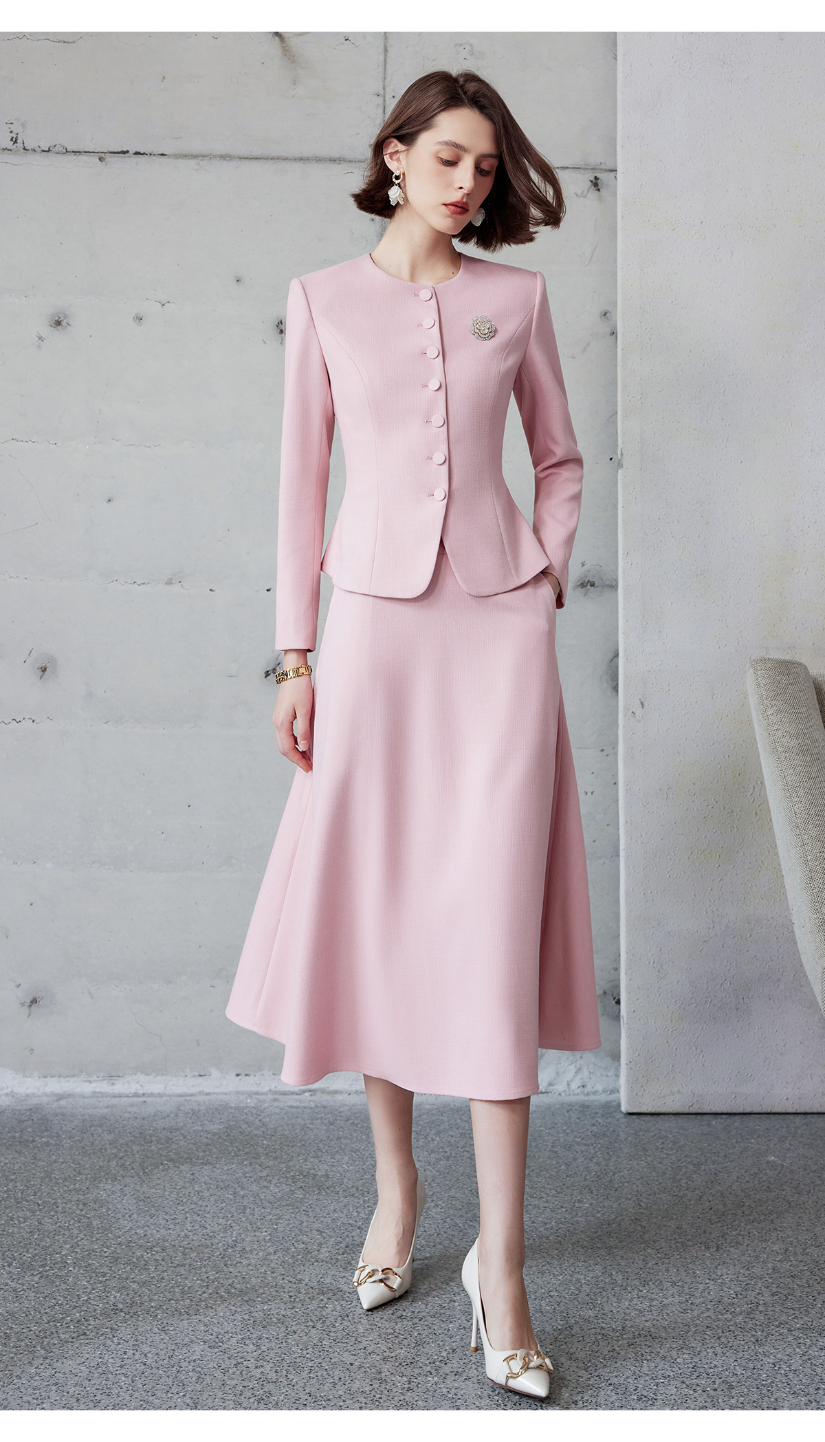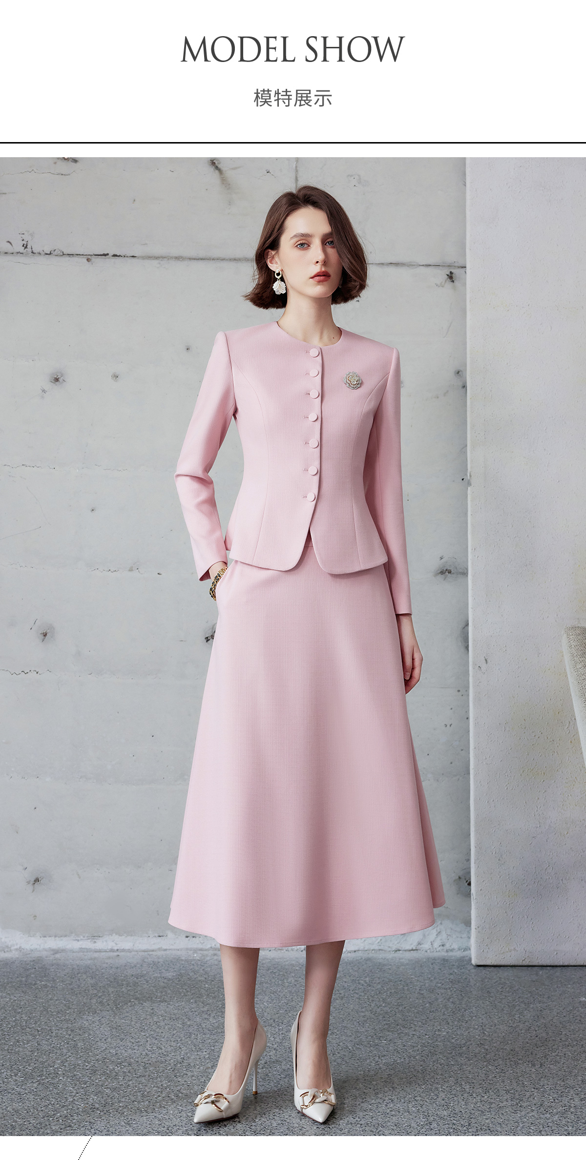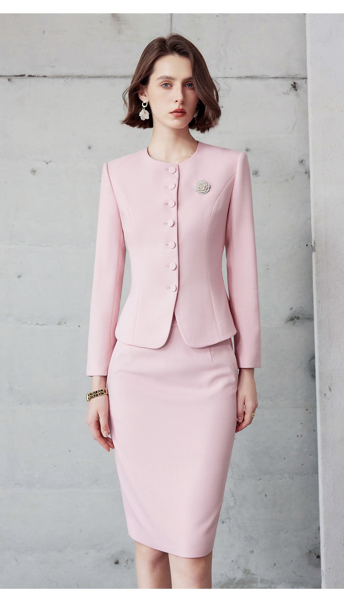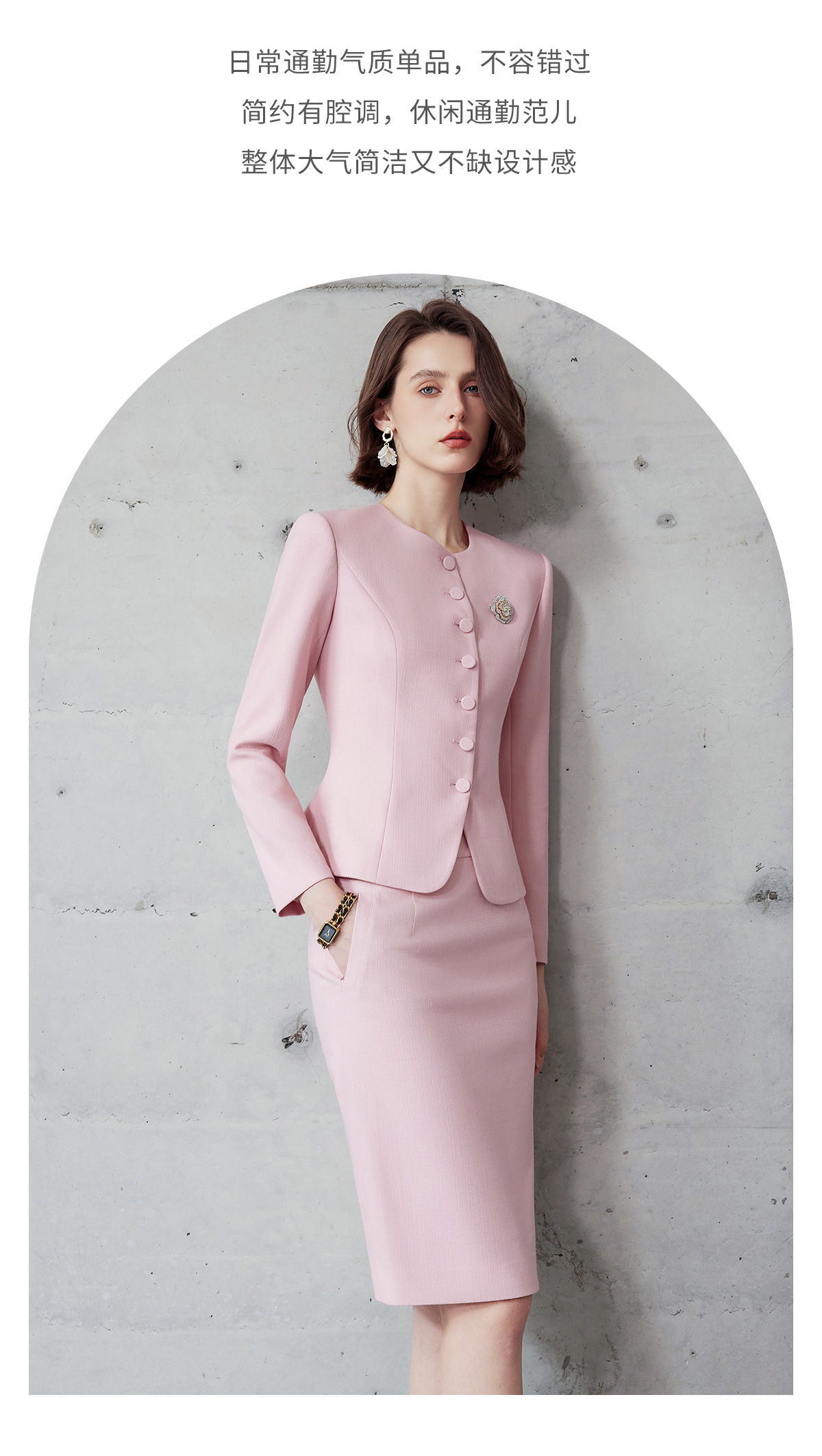 AD粉色小香风套装2024爆款圆领知性两件套上镜主持人正装工作服秋