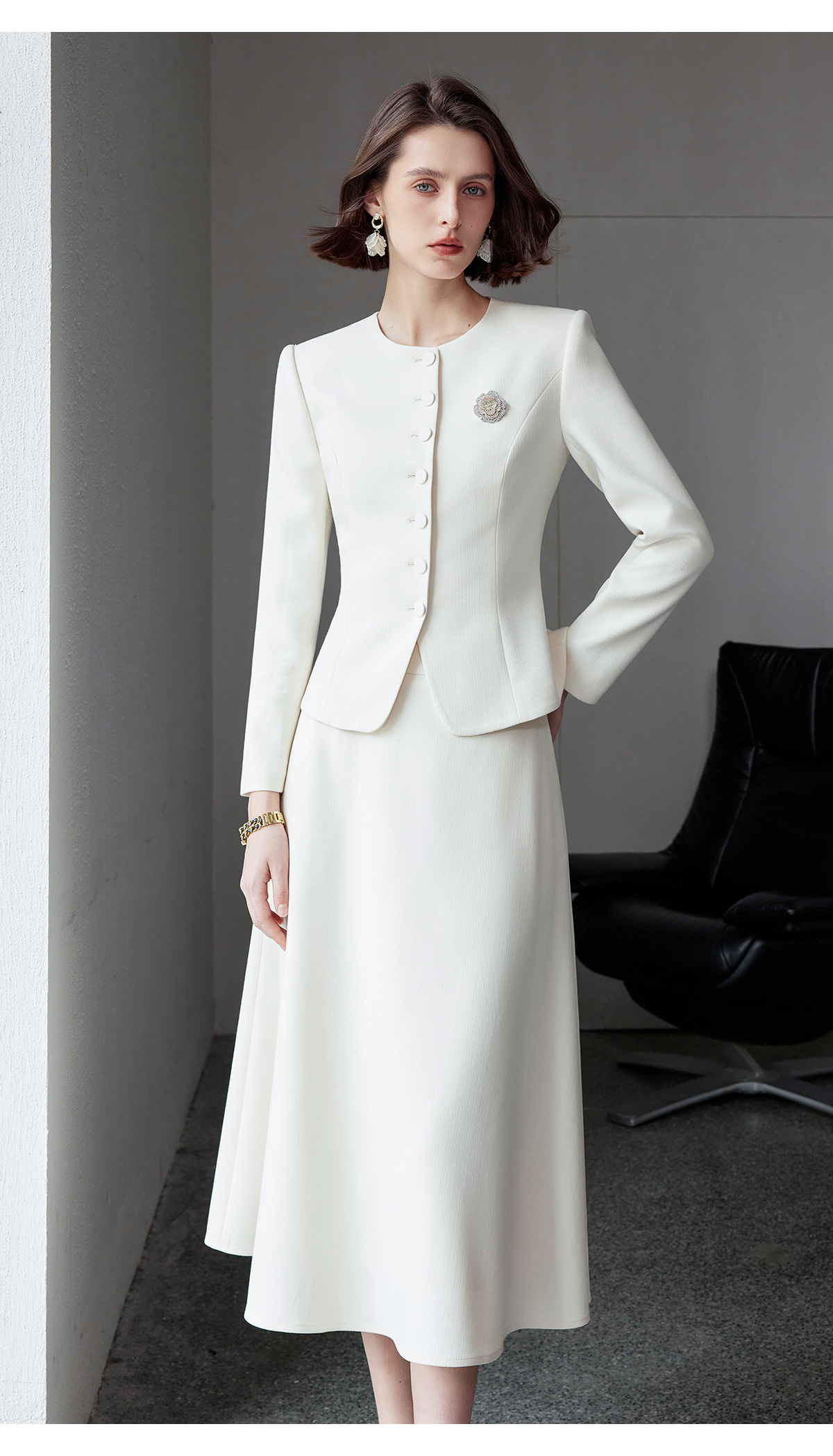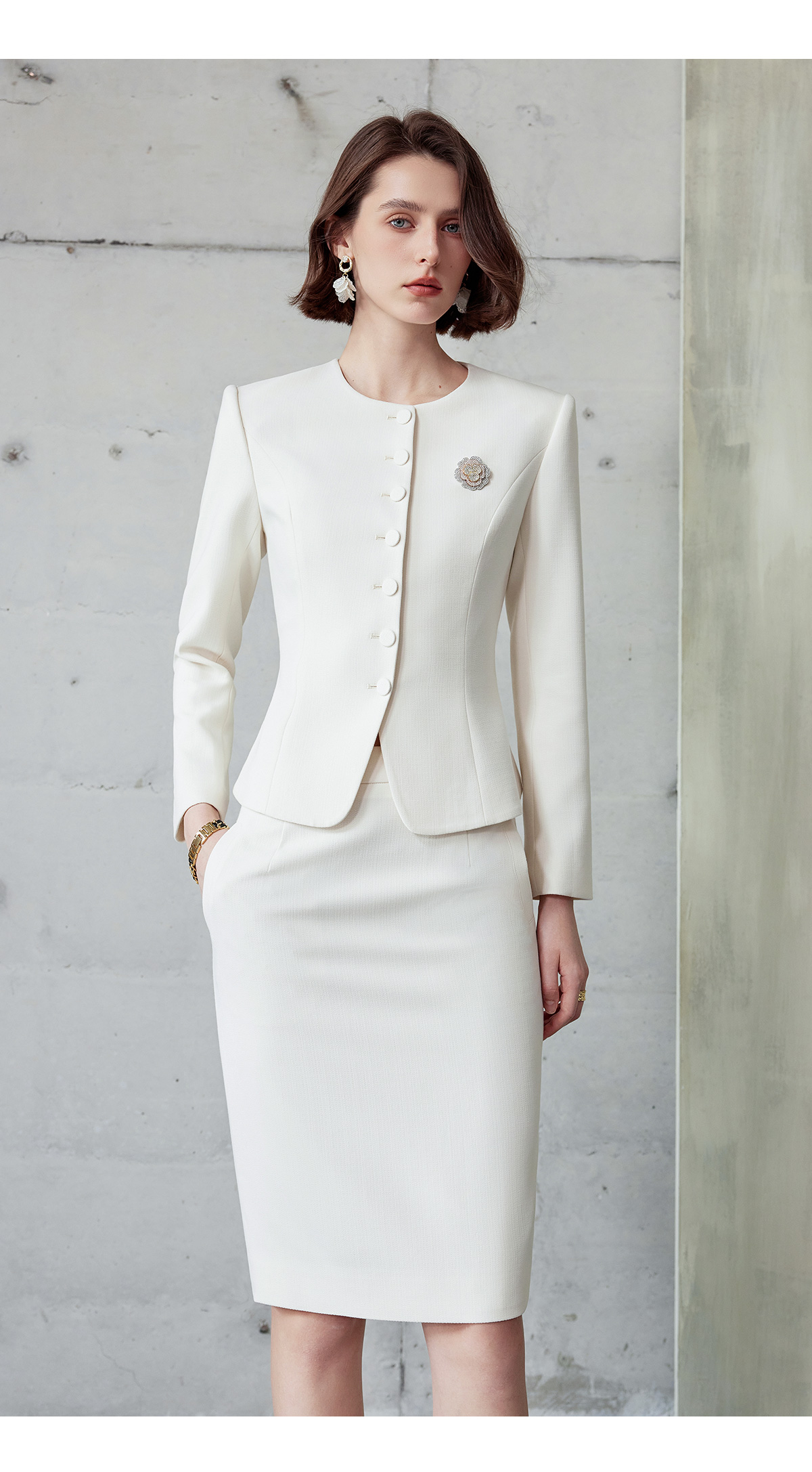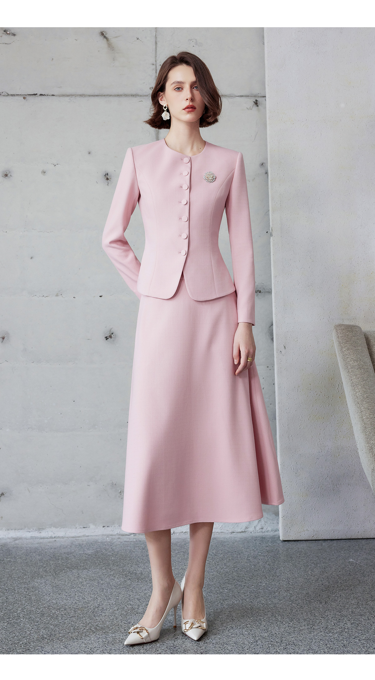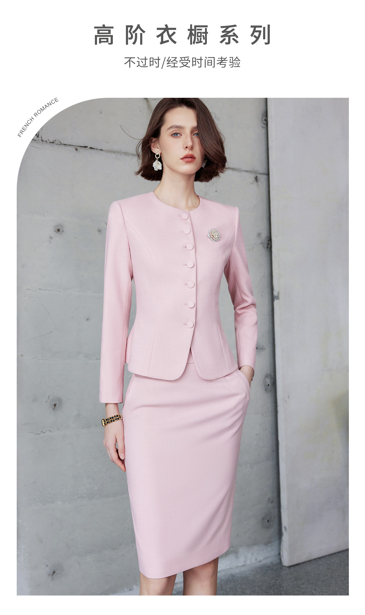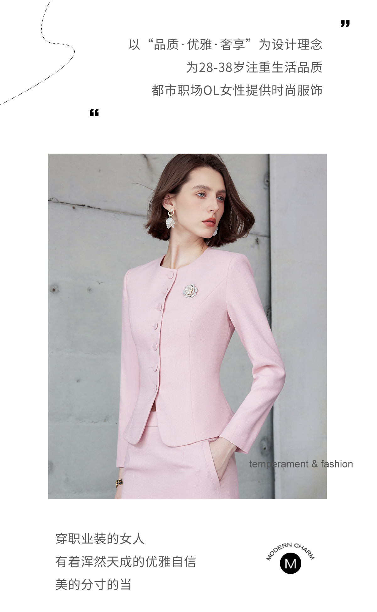 AD粉色小香风套装2024爆款圆领知性两件套上镜主持人正装工作服秋