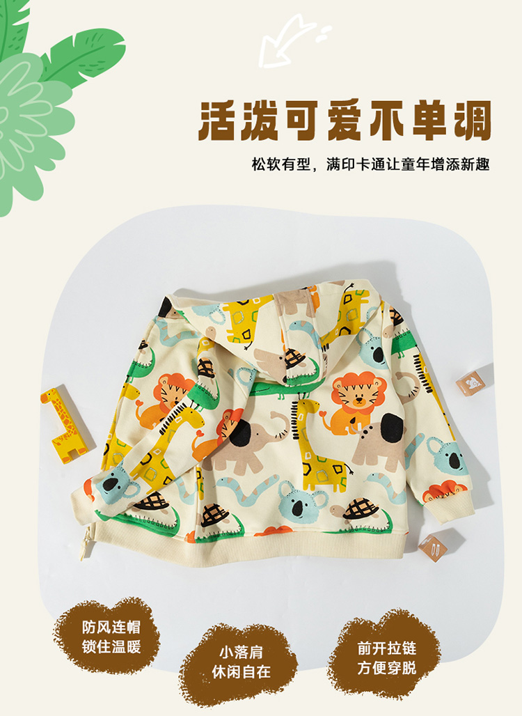 2025春秋新款男童外套连帽防风夹克儿童卡通满印运动休闲风衣