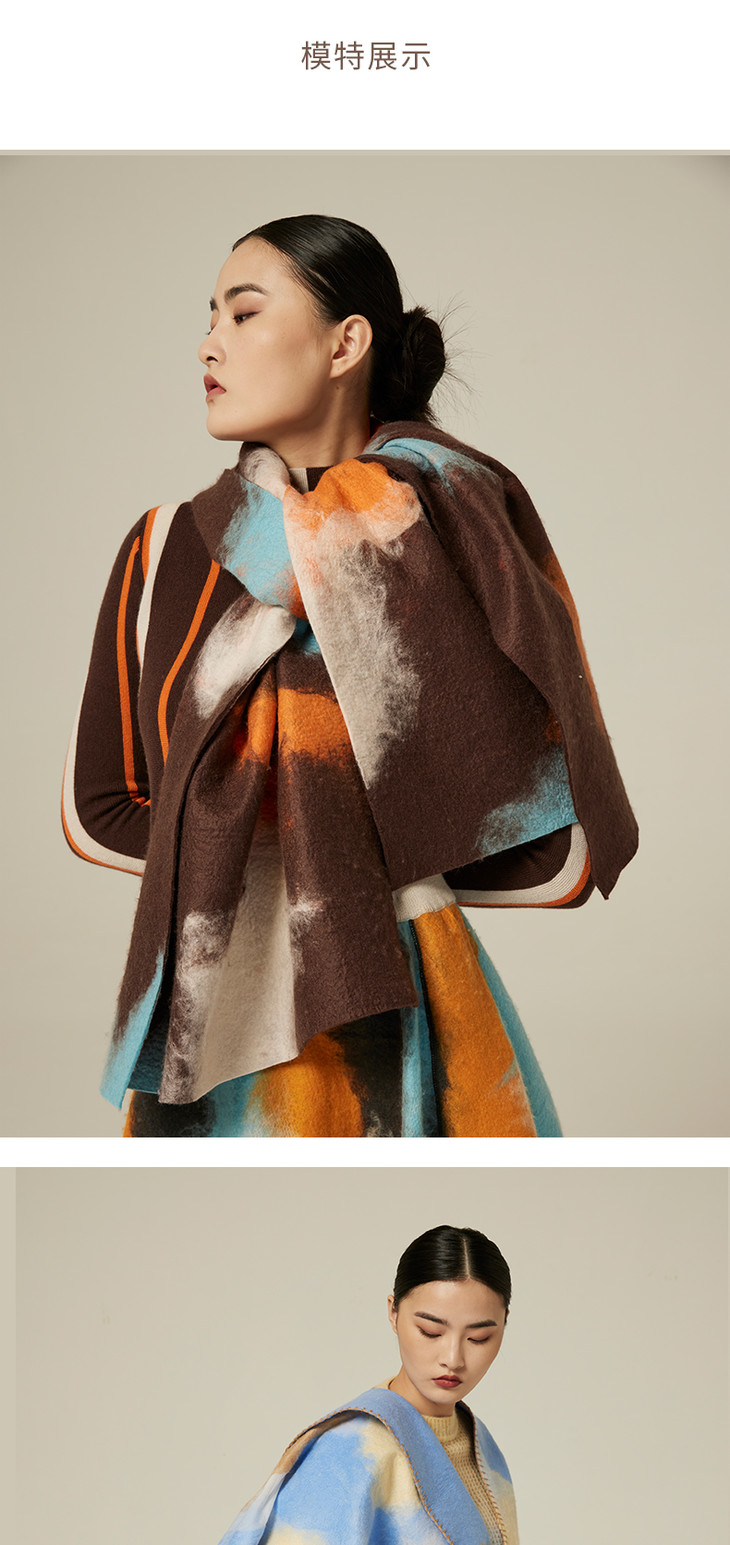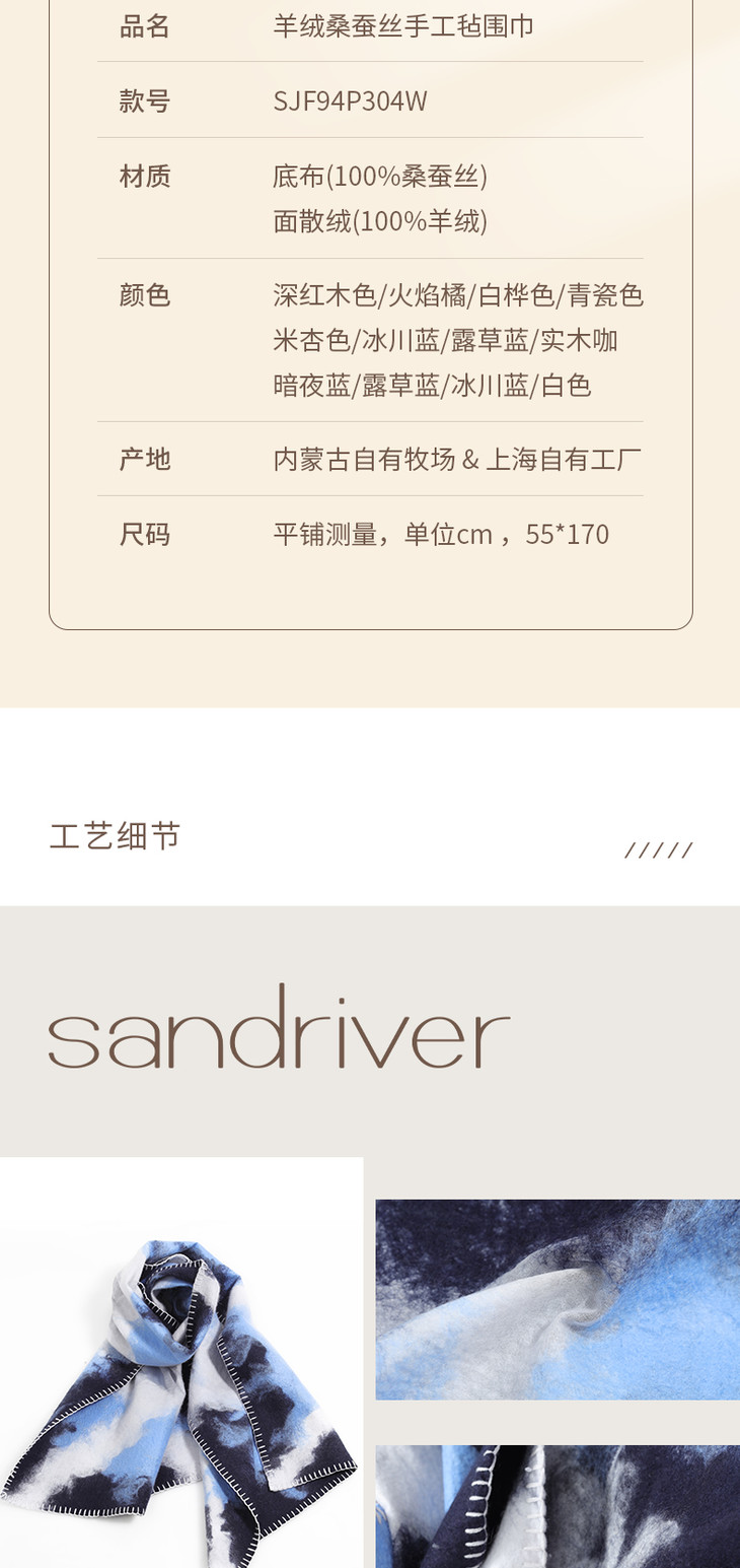 桑蚕丝羊绒手工毡围巾 SJF94P304W