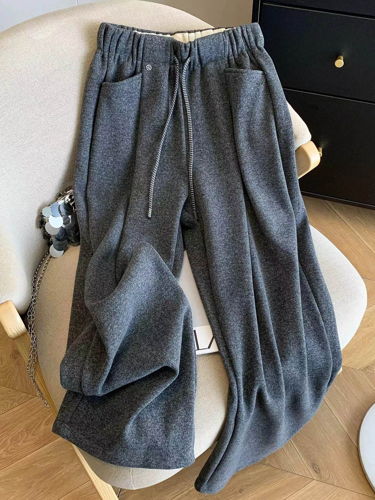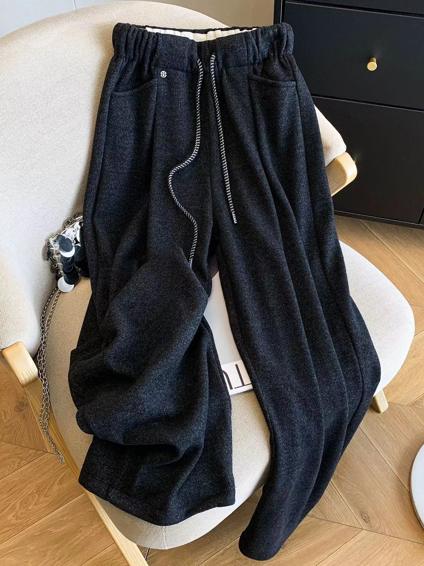 加绒保暖毛呢直筒休闲裤女秋季2025新款高腰抽绳宽松百搭呢子长裤,加绒阔腿毛呢裤|把“冬日暖炉”穿在身上,显瘦保暖一步到位。当软糯加绒邂逅垂顺毛呢,当阔腿版型碰撞高腰设计,这条裤子直接把秋冬的“温暖与显瘦”锁死!设计心机,藏肉显瘦天花板。高腰阔腿剪裁:视觉上“拉高腰线+遮胯藏肉”,不管是梨形身材还是苹果型身材,都能穿出“下装消失”的长腿既视感;立体打褶设计:裤身褶皱增加层次感,行走间自带垂坠感,告别普通阔腿裤的单调拖沓;抽绳腰头+隐形口袋:松紧腰适配各种腰围,抽绳可自由调节,侧边口袋实用又隐形,日常放手机、钥匙超方便。