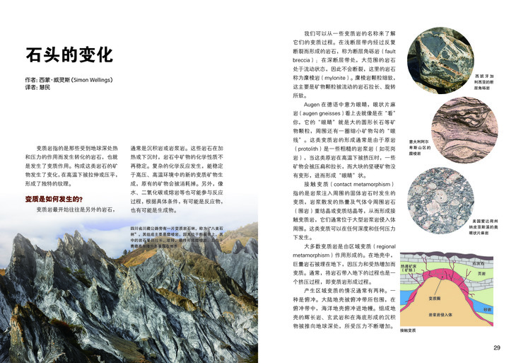 每一块石头都有一个故事。几千米高 的山峰、上万米深的海底,都是岩石形成 的,但形成高山的石头和形成海底的石头 又不一样。大西洋中洋脊的黑色玄武岩来 自地幔冒出的岩浆,是新生地壳的样貌; 喜马拉雅山上纹路扭曲的岩石,曾深埋于 地下,这是经历极端环境的印记。关于这 些,我们可以说一个 45 亿年长的故事。