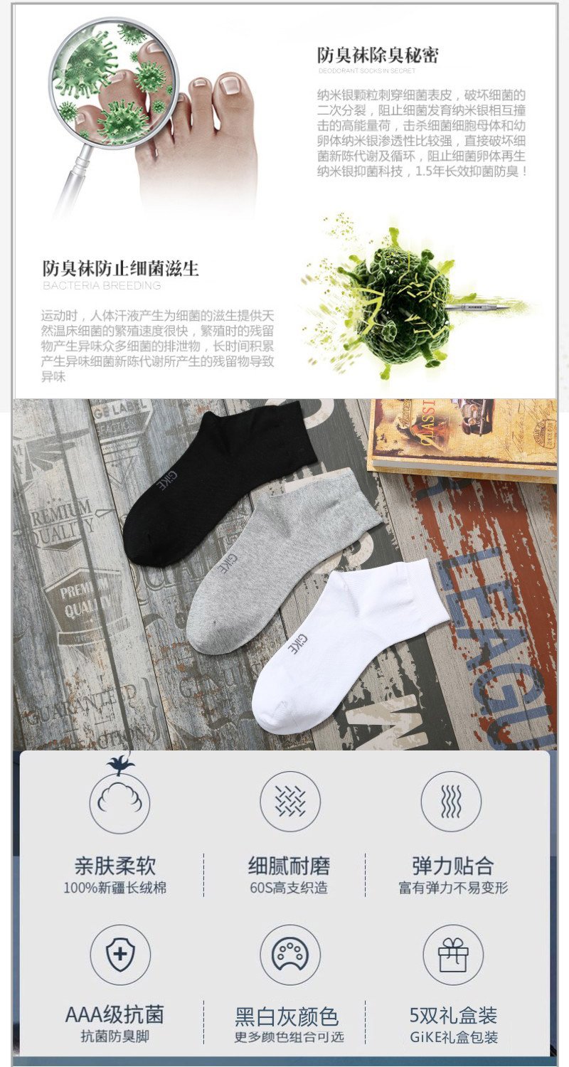 【防臭黑科技】5双袜子男士棉袜防臭吸汗四季款男商务袜