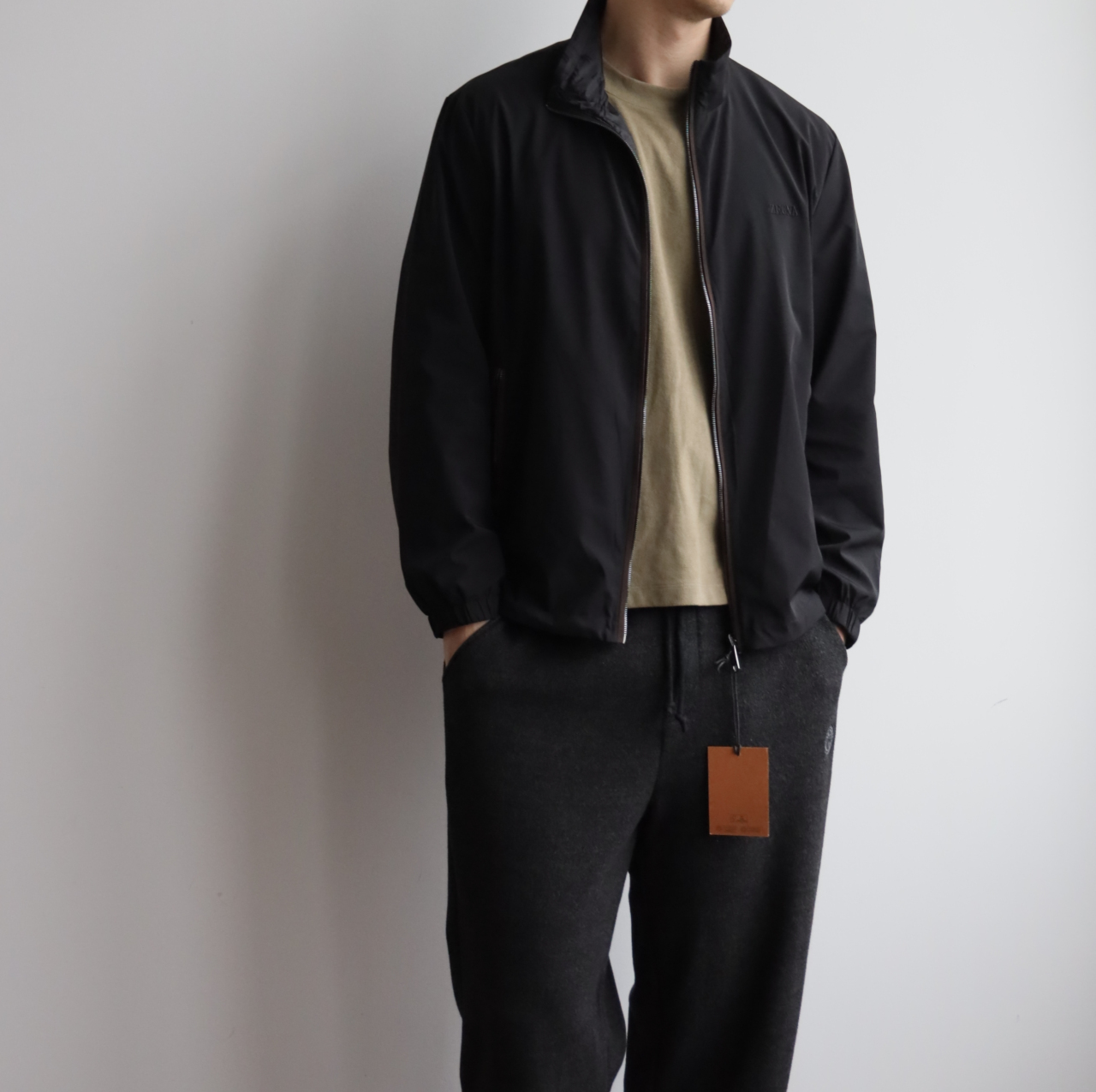 整体轮廓趋于简约风格(个人还是喜欢穿纯色面),双面面料,内里暗纹字母提花,丰富了整体视觉。