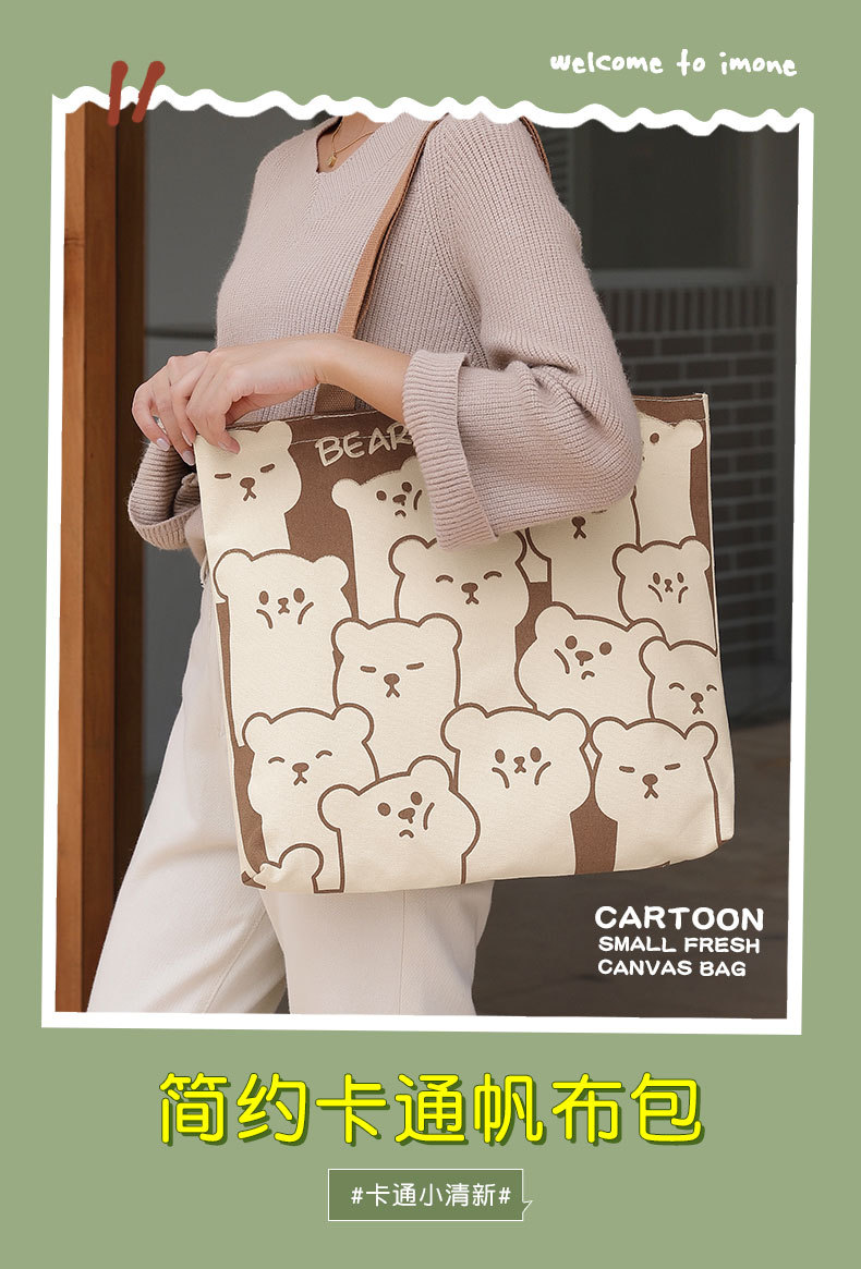 原创萌萌熊帆布包 单肩环保大容量帆布包