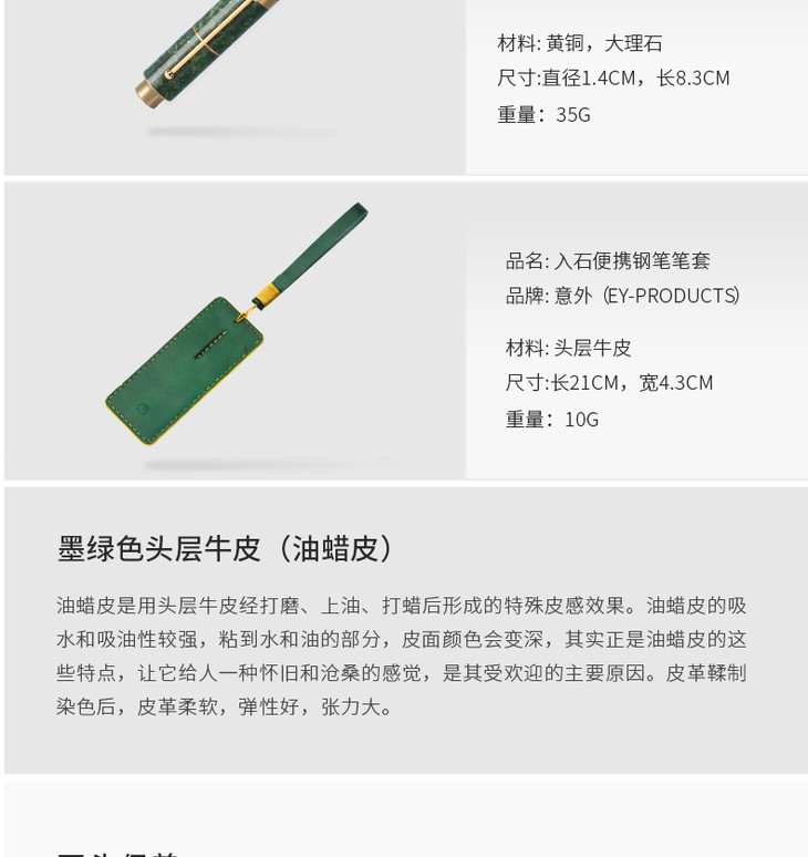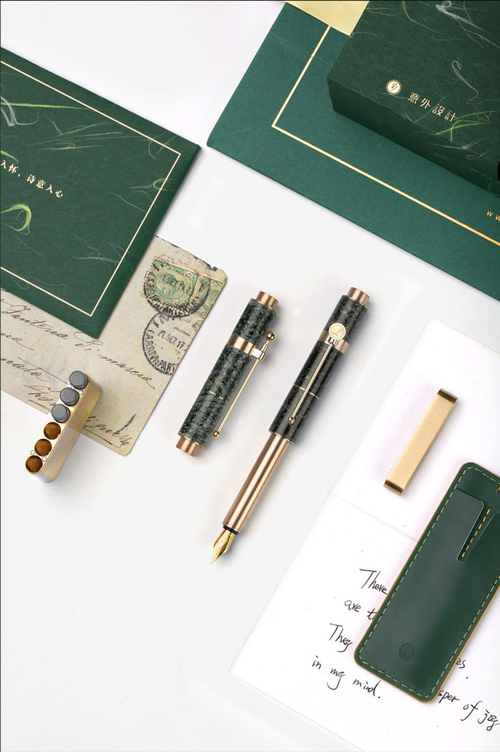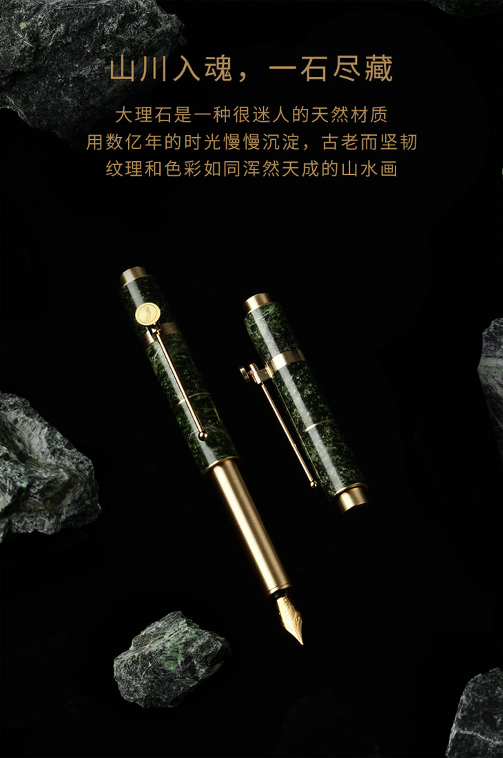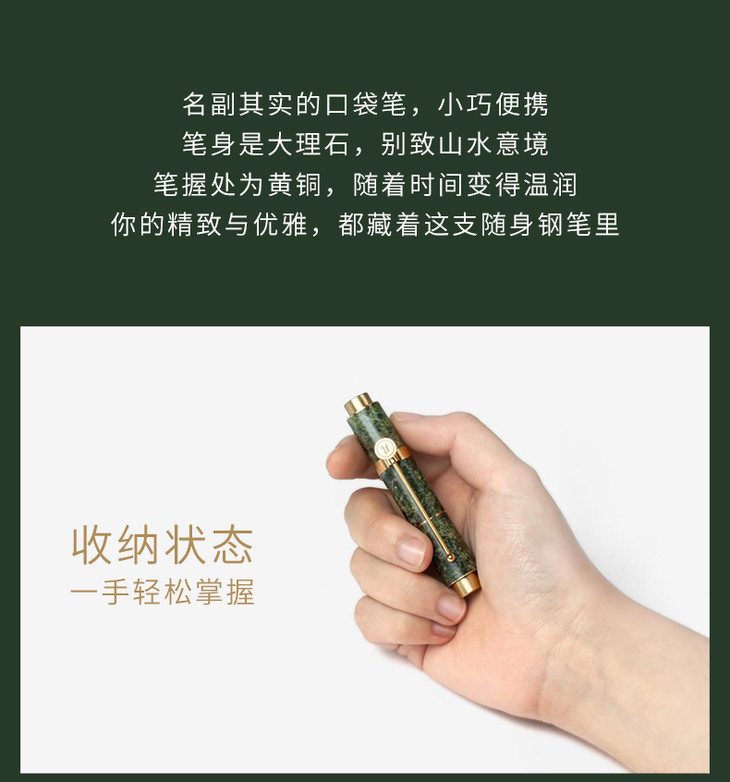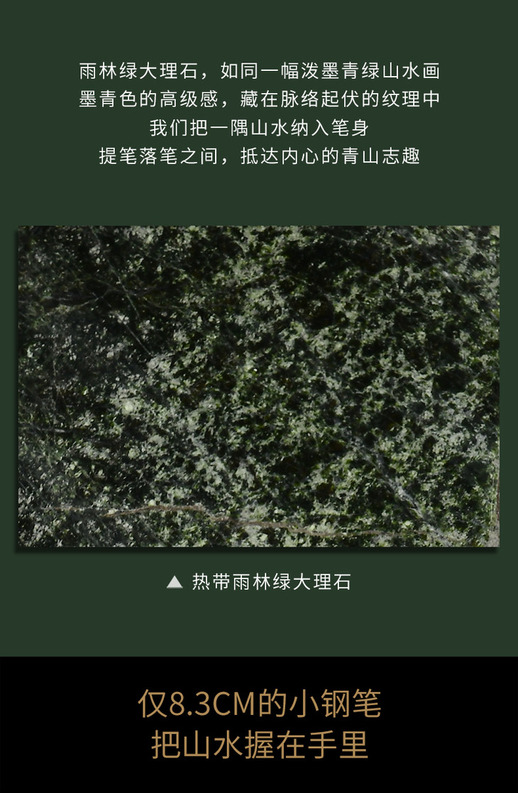 入石小钢笔(常青款)| 雨林绿大理石+黄铜,8.3cm一手可握,私人定制,送礼精美