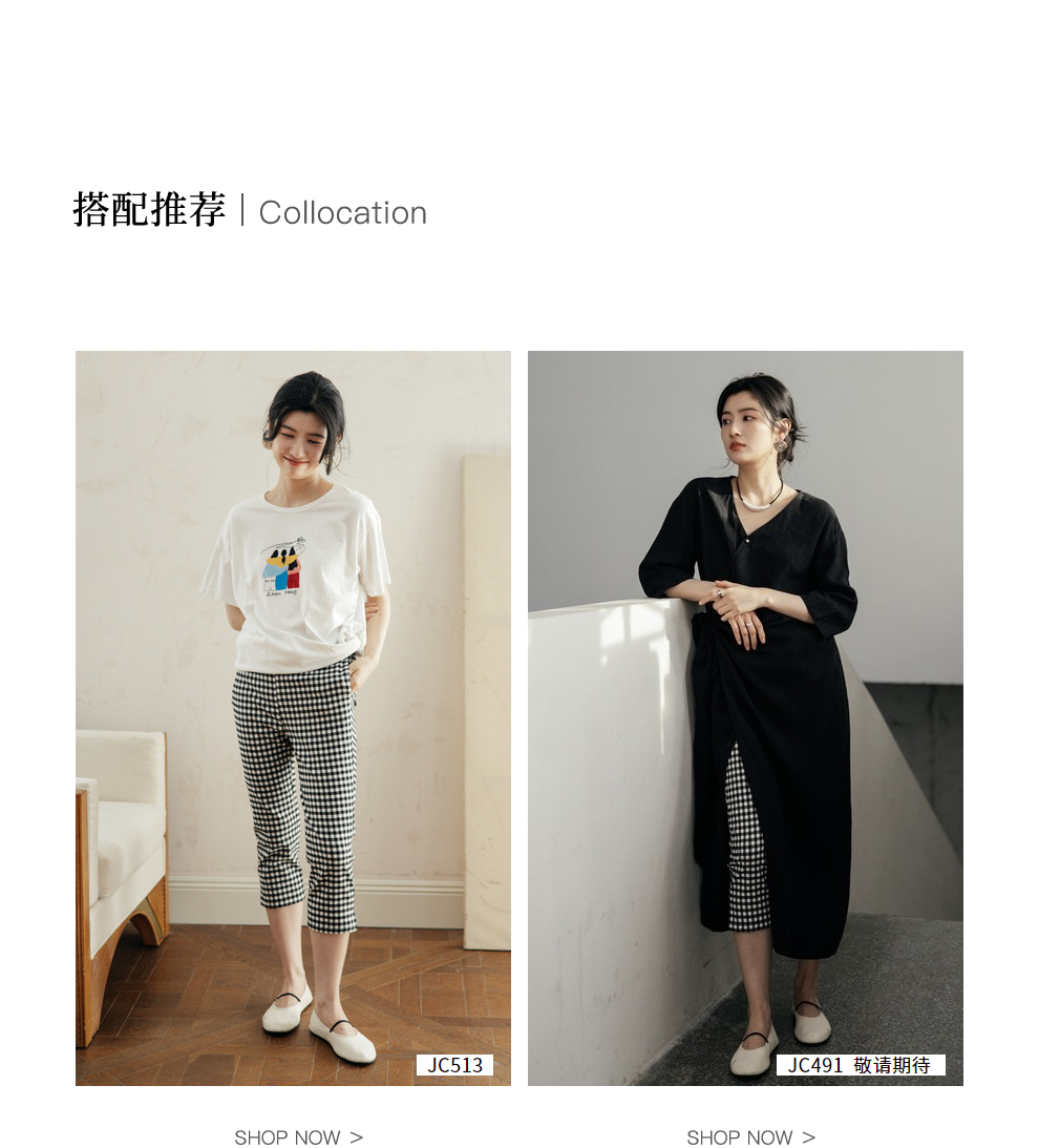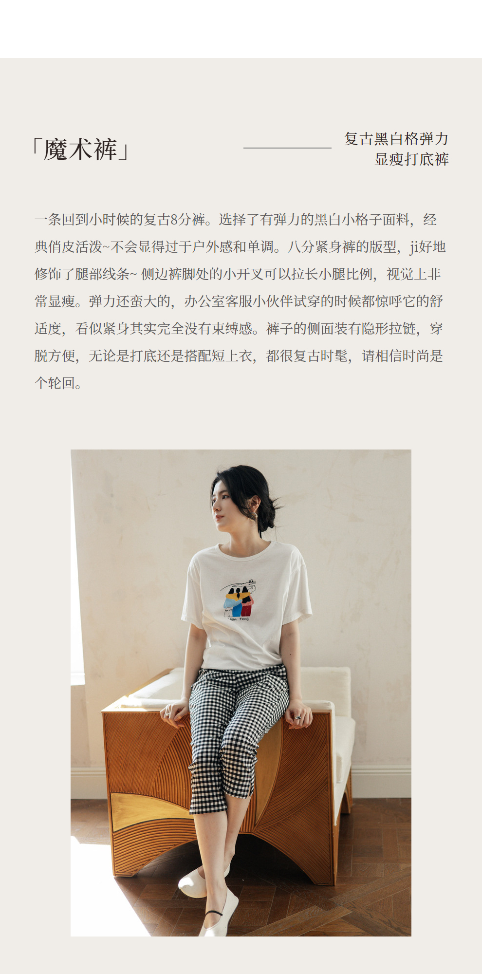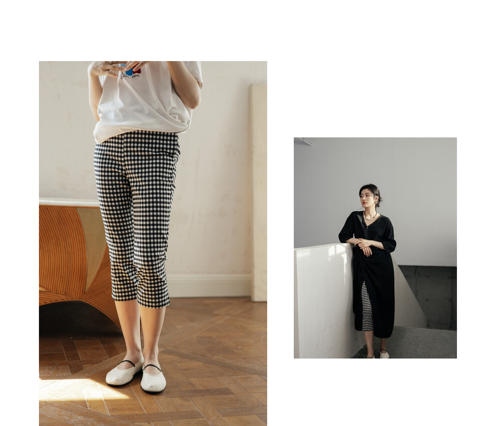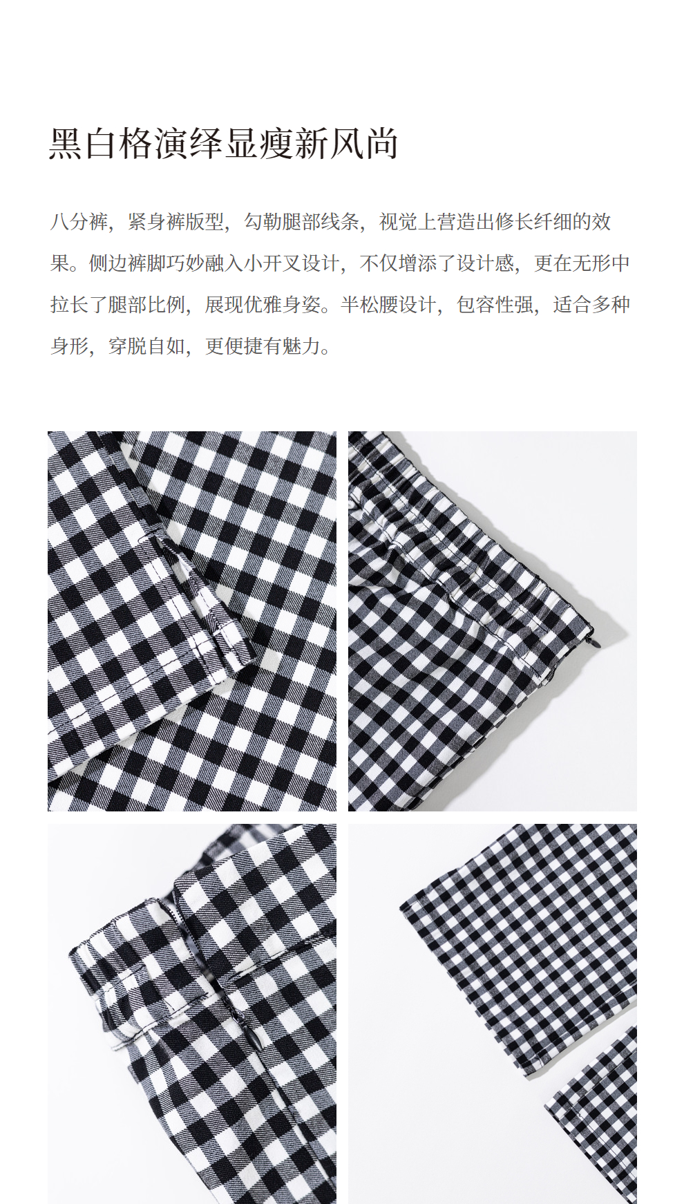绽放490朵【黑白灰系列·魔术裤】复古黑白格弹力显瘦混纺休闲裤