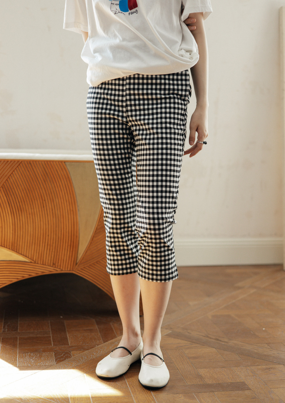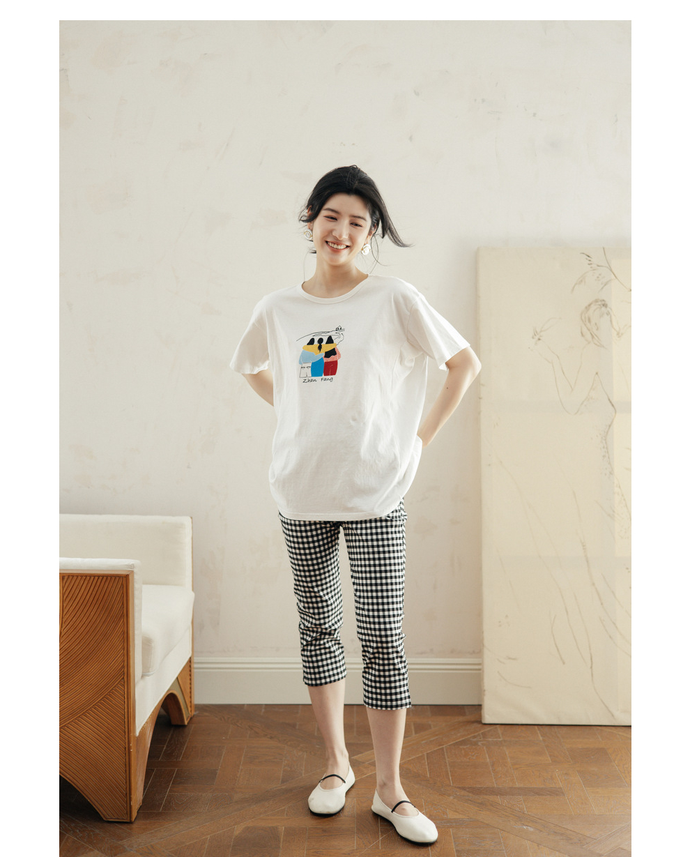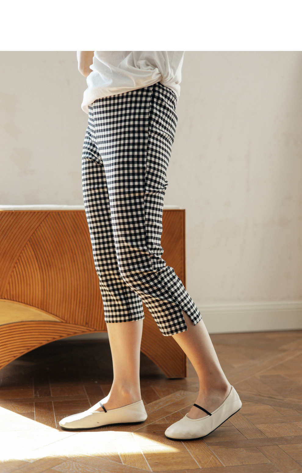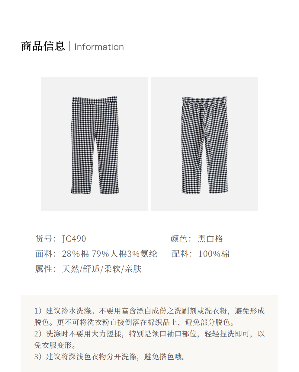 绽放490朵【黑白灰系列·魔术裤】复古黑白格弹力显瘦混纺休闲裤