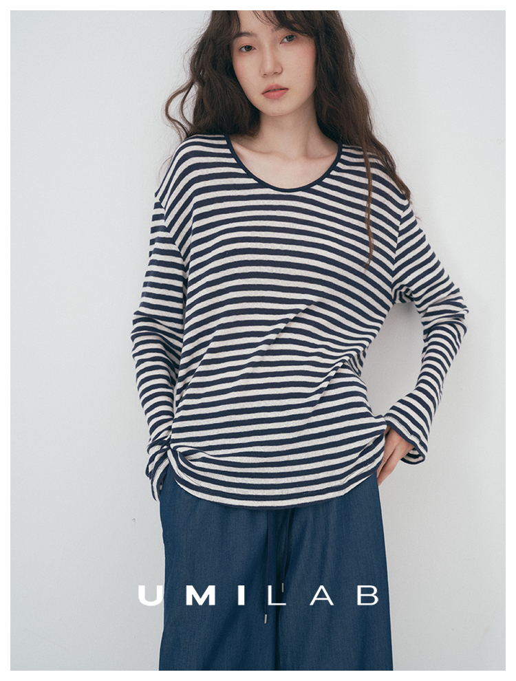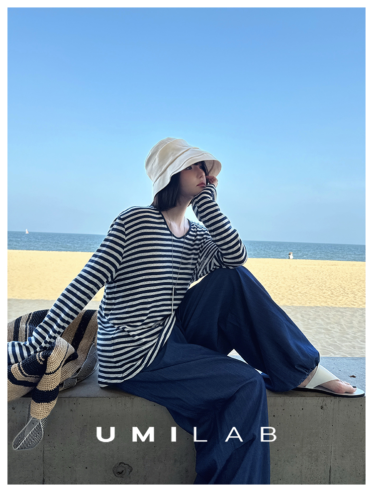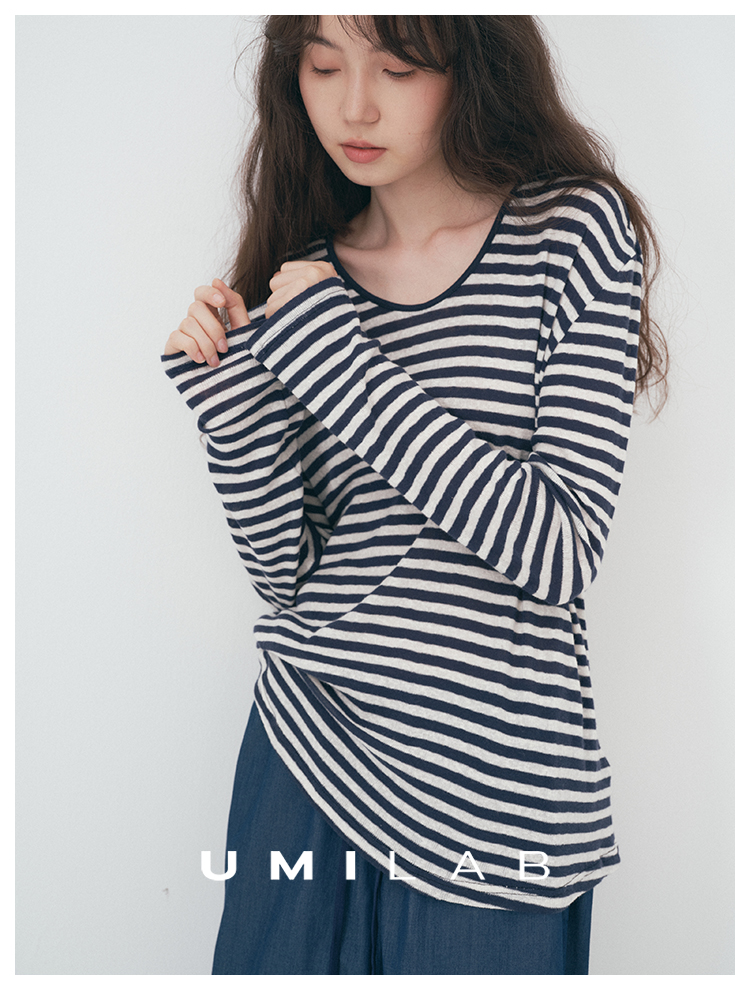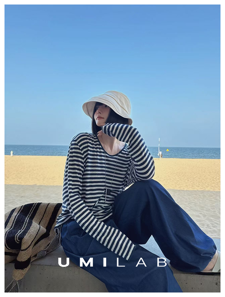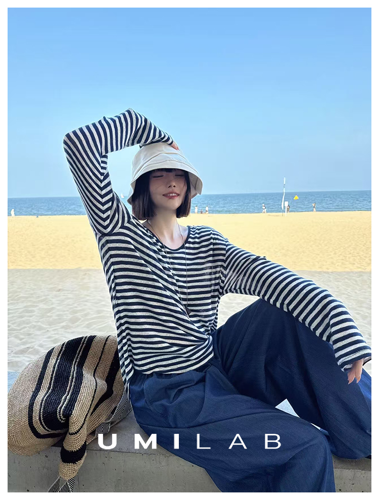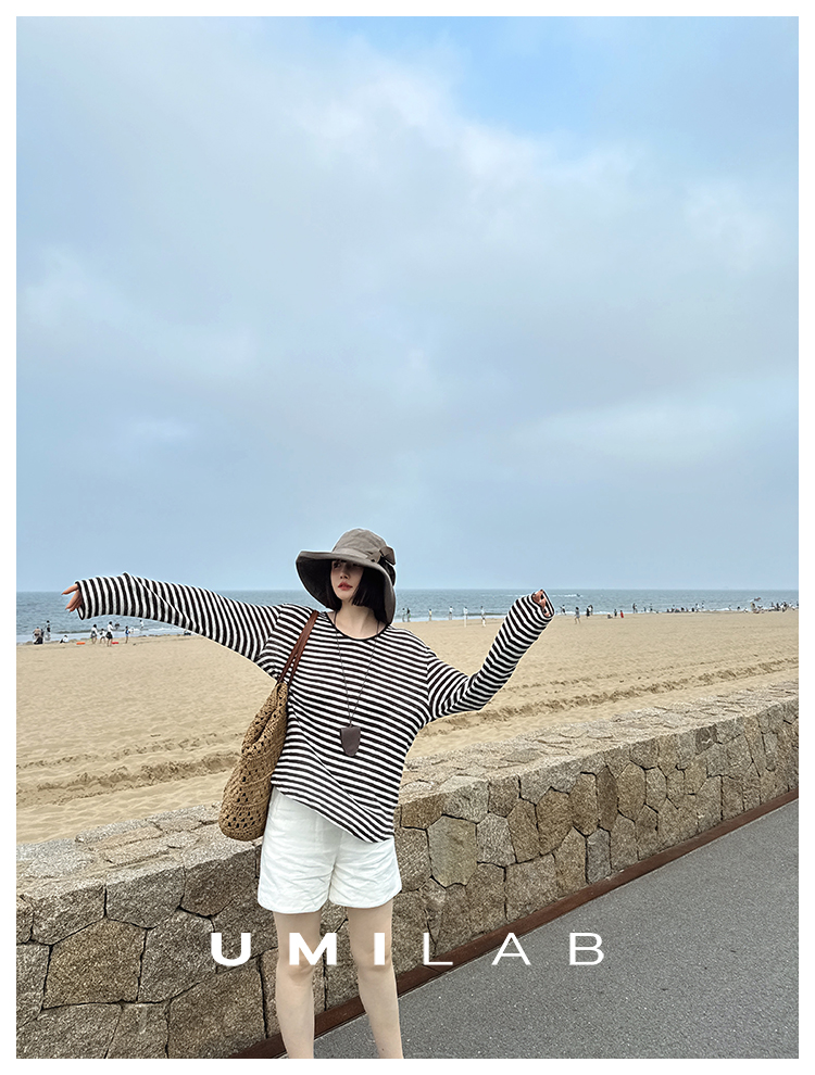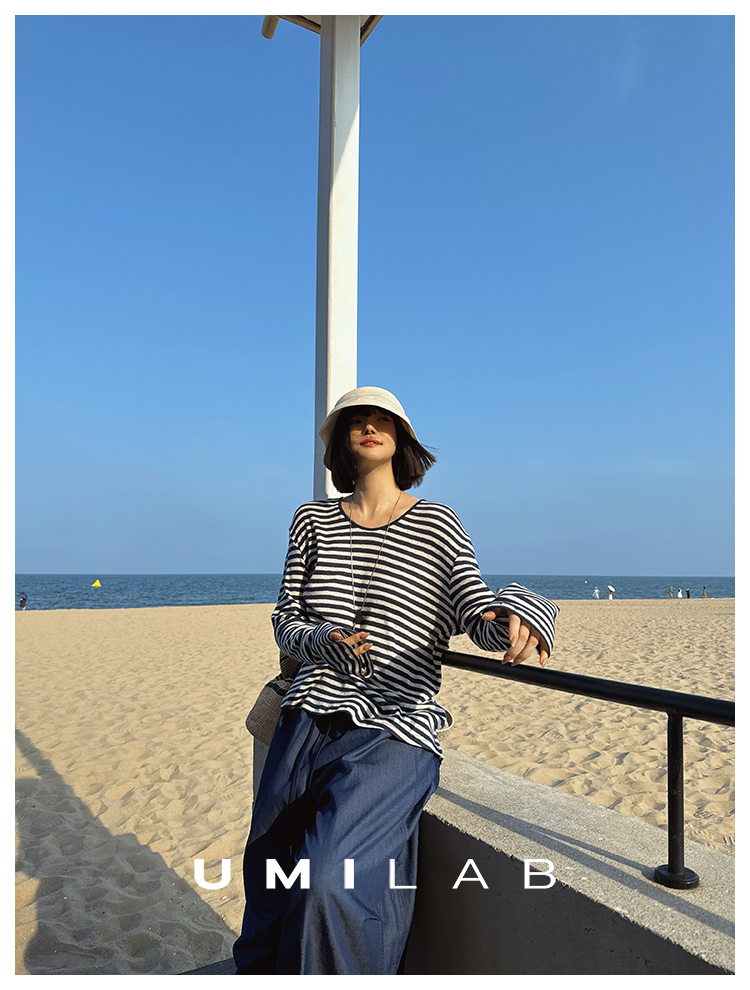 UMILAB|星轨*夏季刚需row风长绒棉轻薄宽松防晒长袖条纹T恤T756M