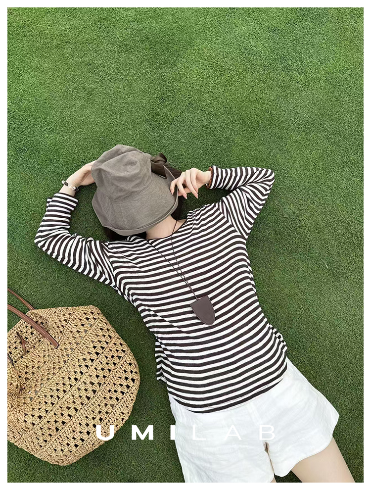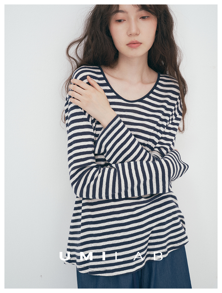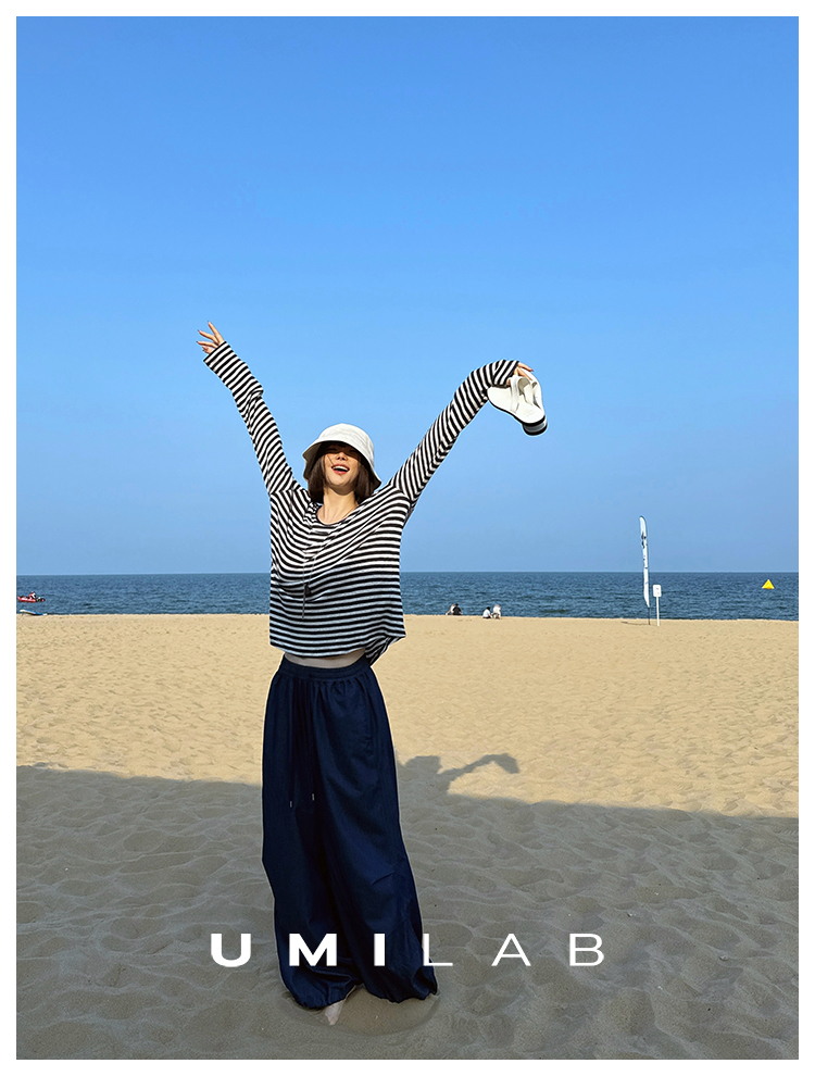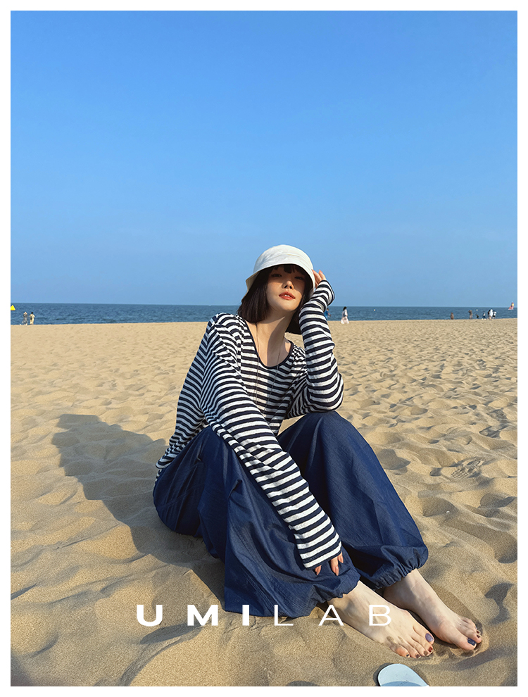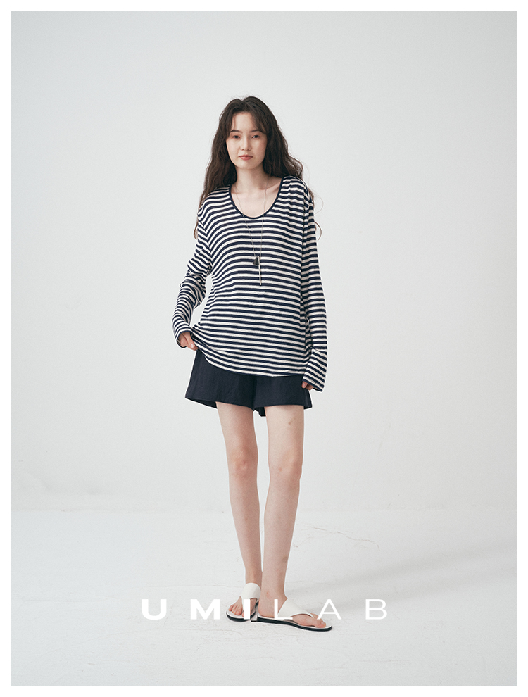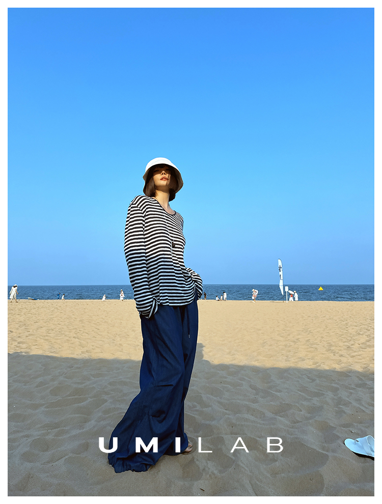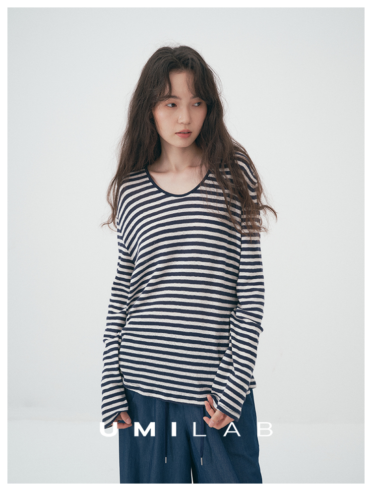 UMILAB|星轨*夏季刚需row风长绒棉轻薄宽松防晒长袖条纹T恤T756M