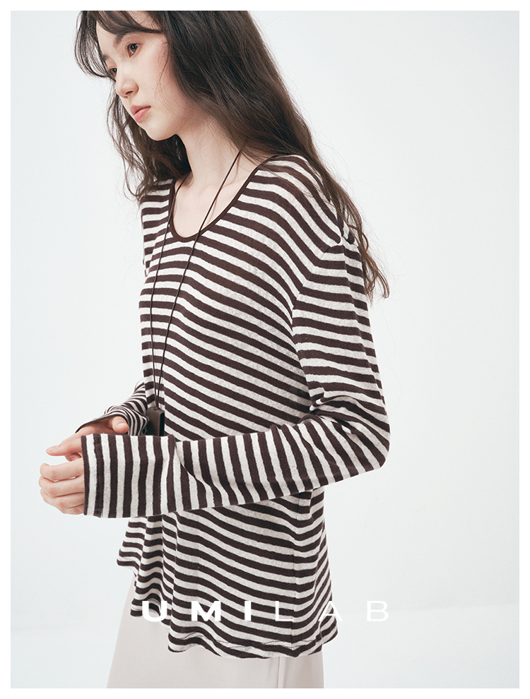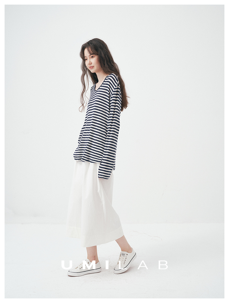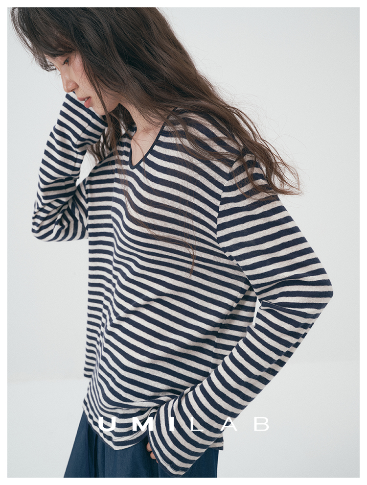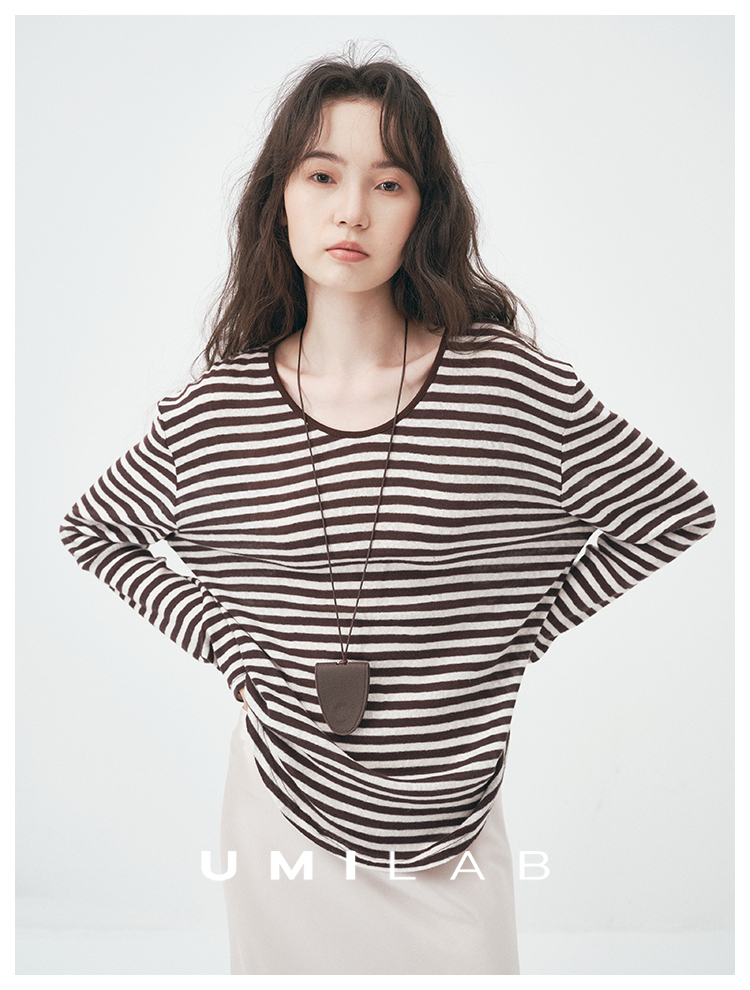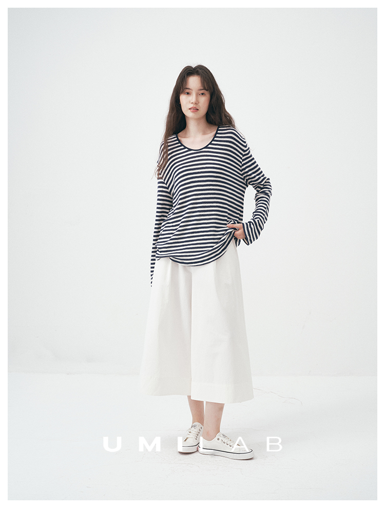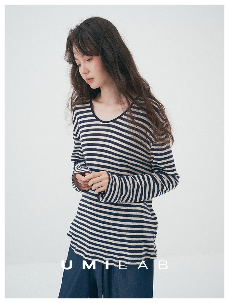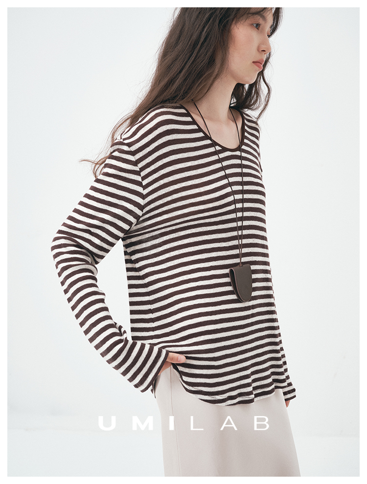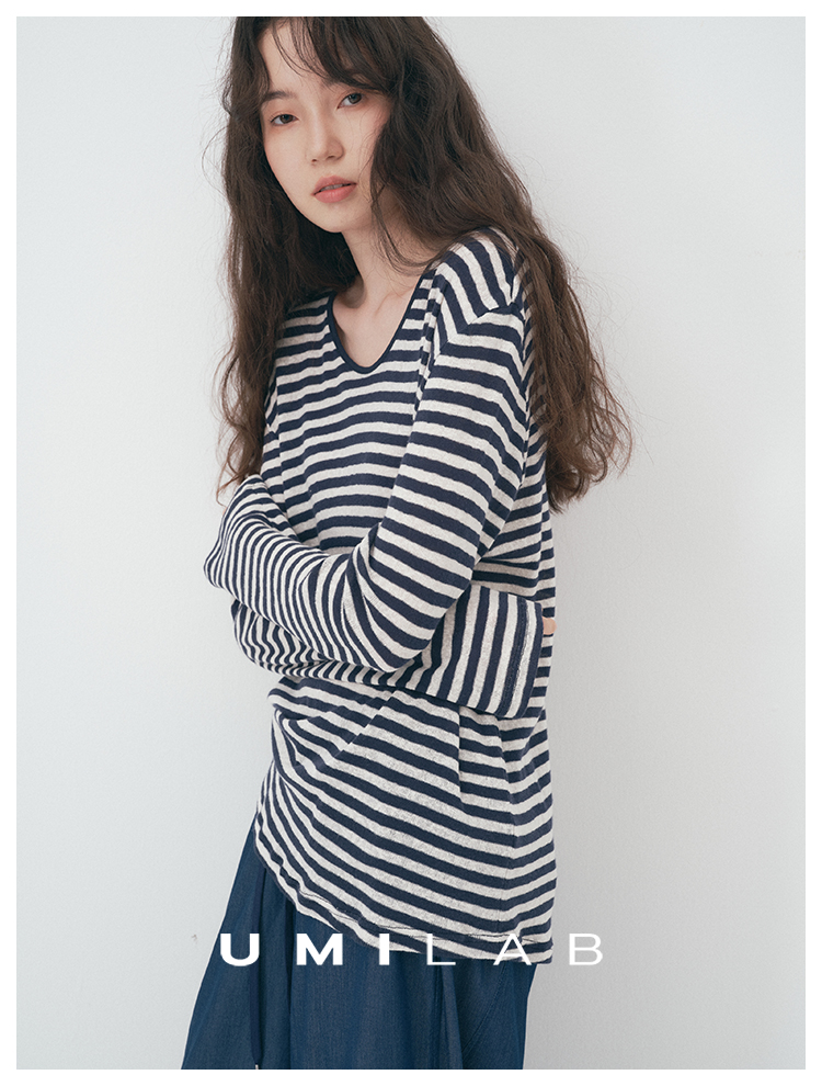 UMILAB|星轨*夏季刚需row风长绒棉轻薄宽松防晒长袖条纹T恤T756M