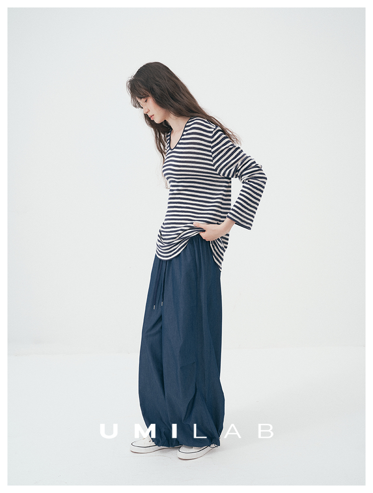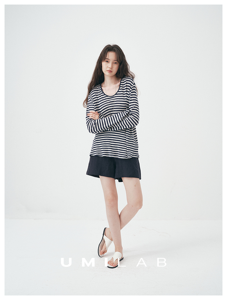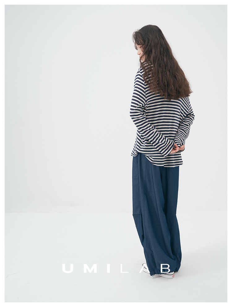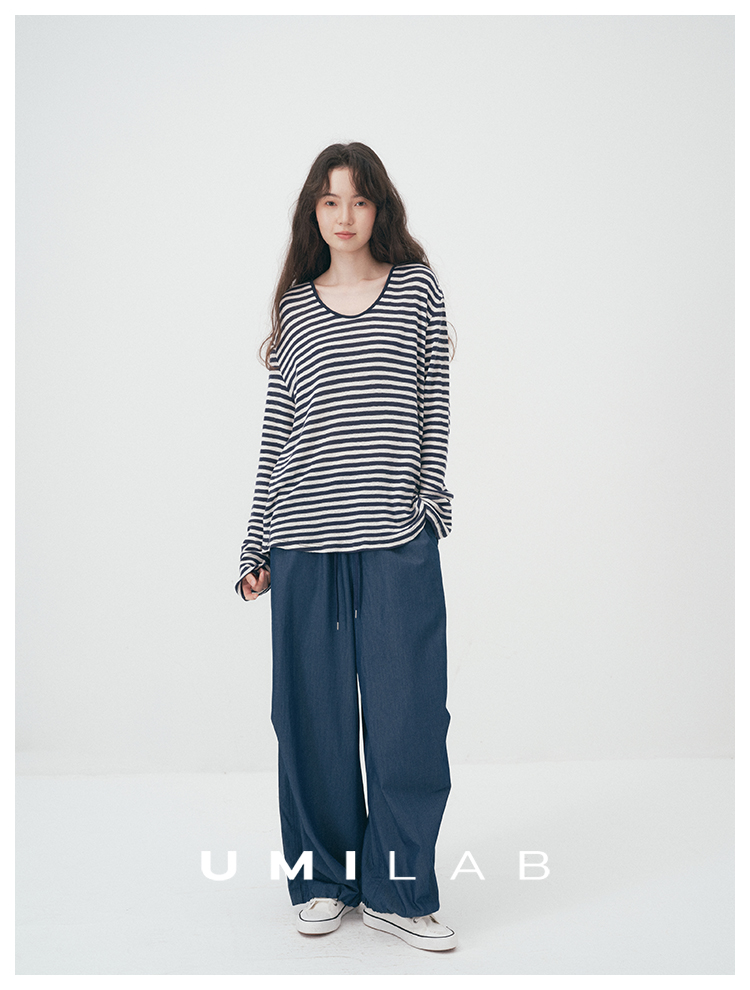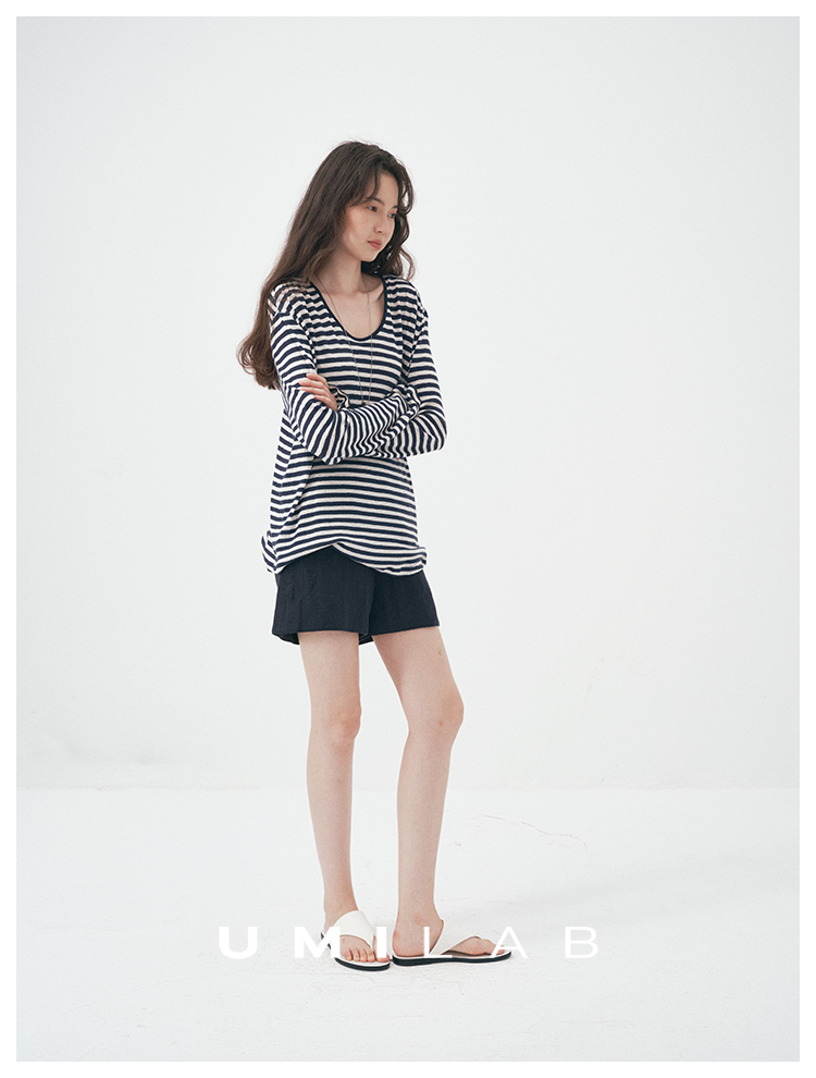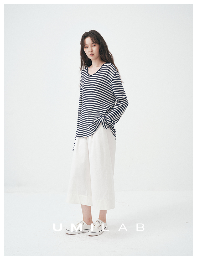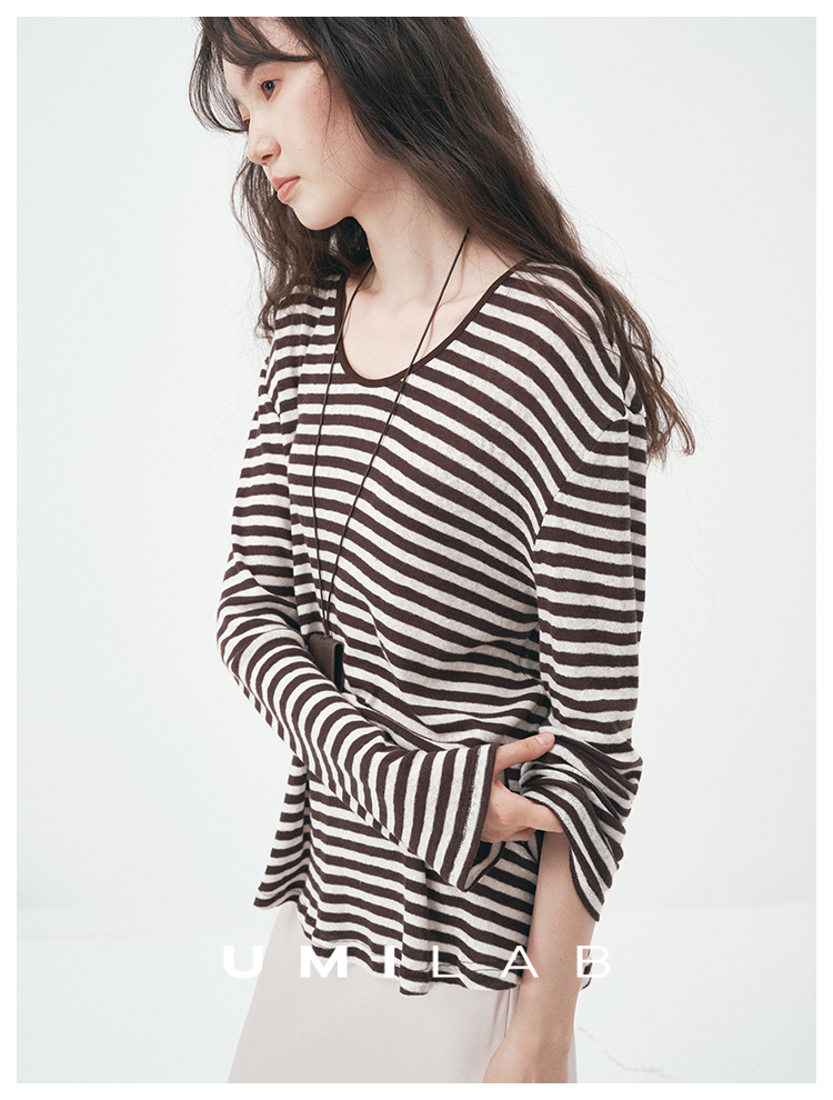 UMILAB|星轨*夏季刚需row风长绒棉轻薄宽松防晒长袖条纹T恤T756M