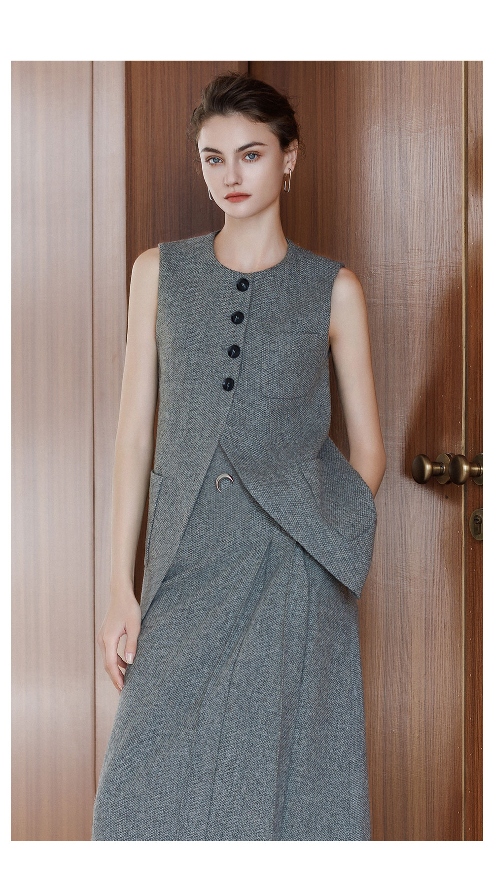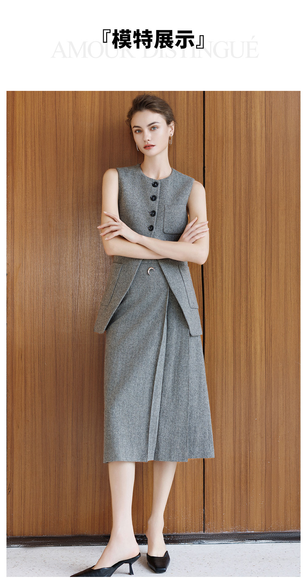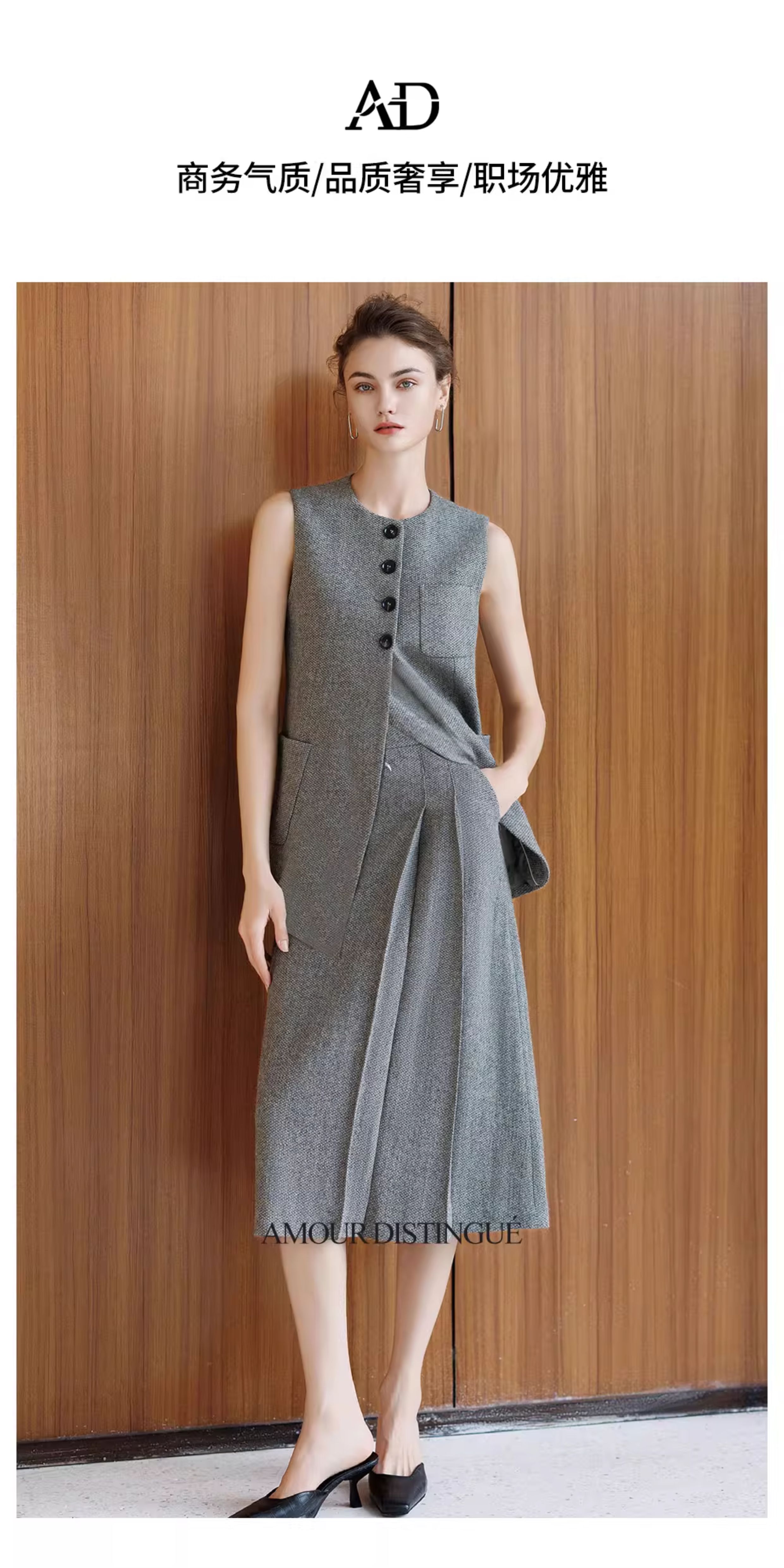 AD灰色羊毛马甲背心女2025新款秋冬高级感内搭呢子套装裙坎肩上衣