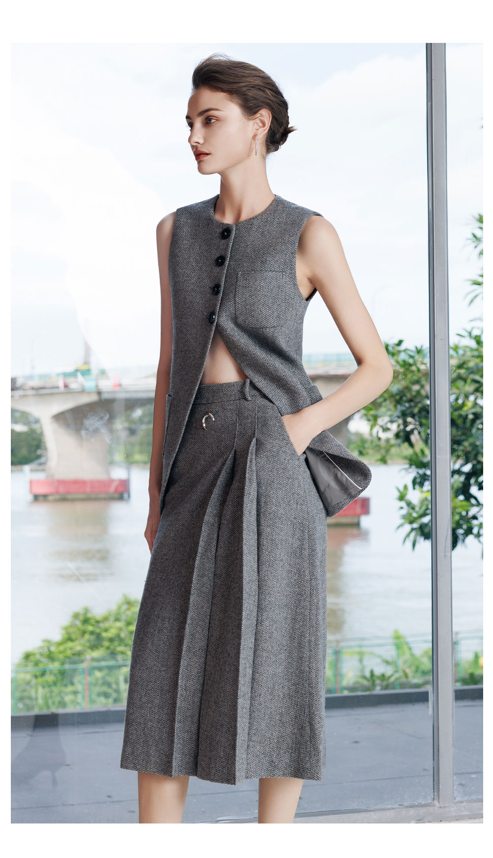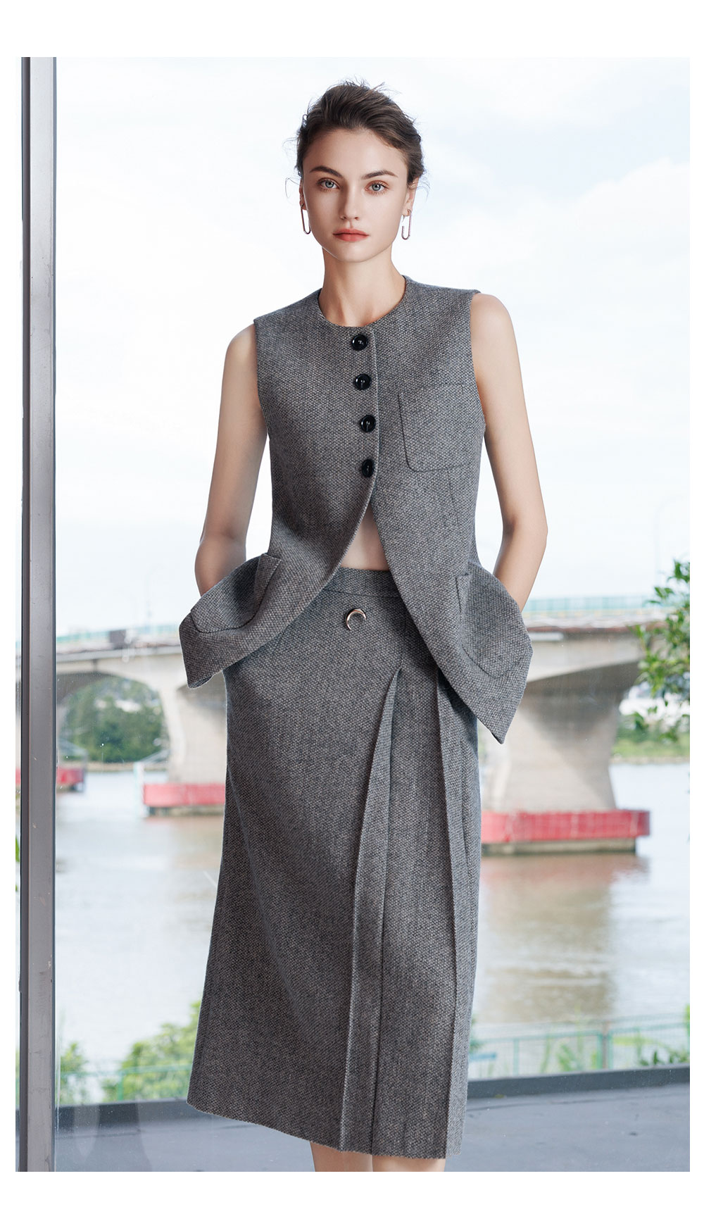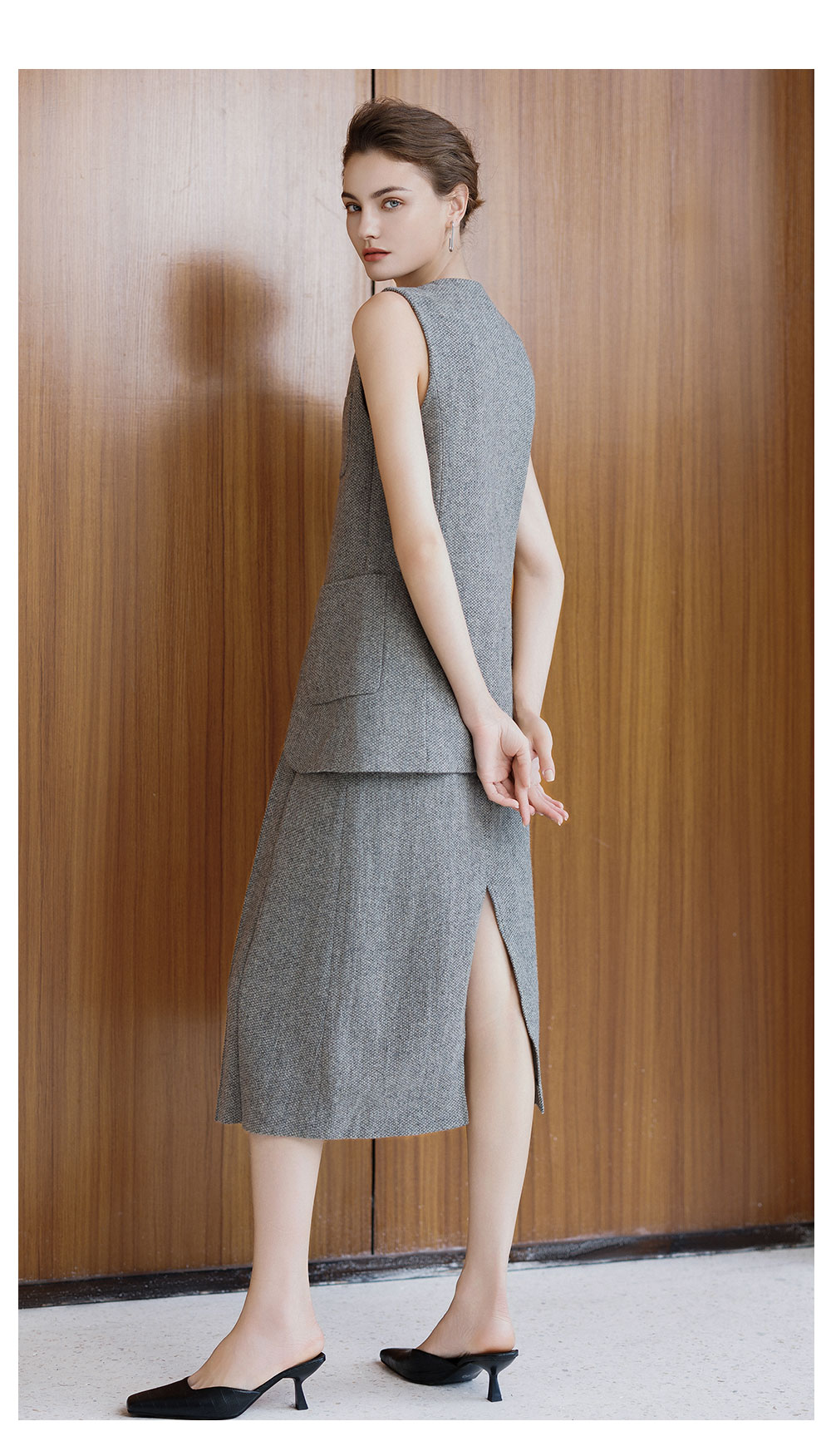 AD灰色羊毛马甲背心女2025新款秋冬高级感内搭呢子套装裙坎肩上衣