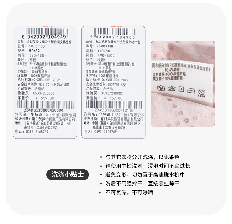 迪士尼女童冬季夹棉保暖外套234DS1188