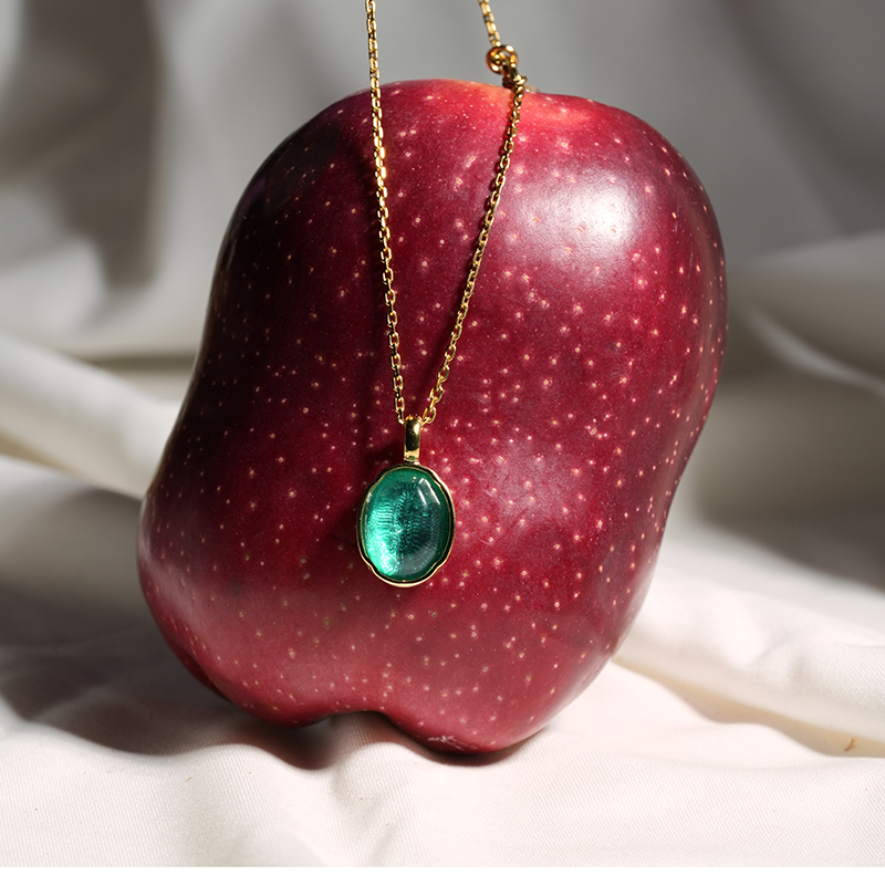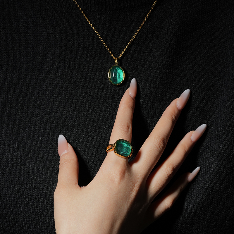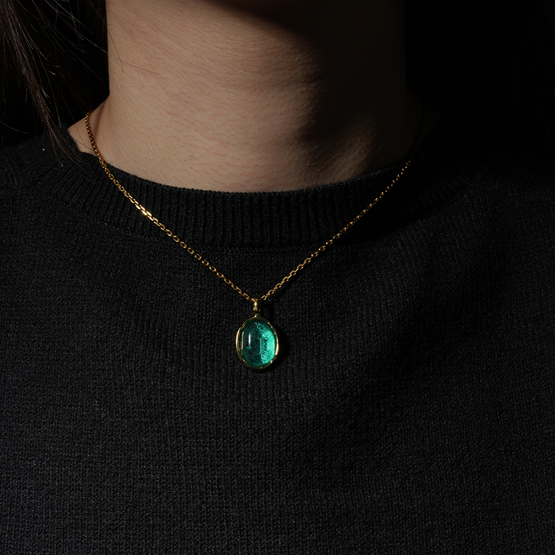 北京仓|Goossens Paris-CABOCHONS-绿色 岩石水晶 吊坠 项链[法国设计师]
