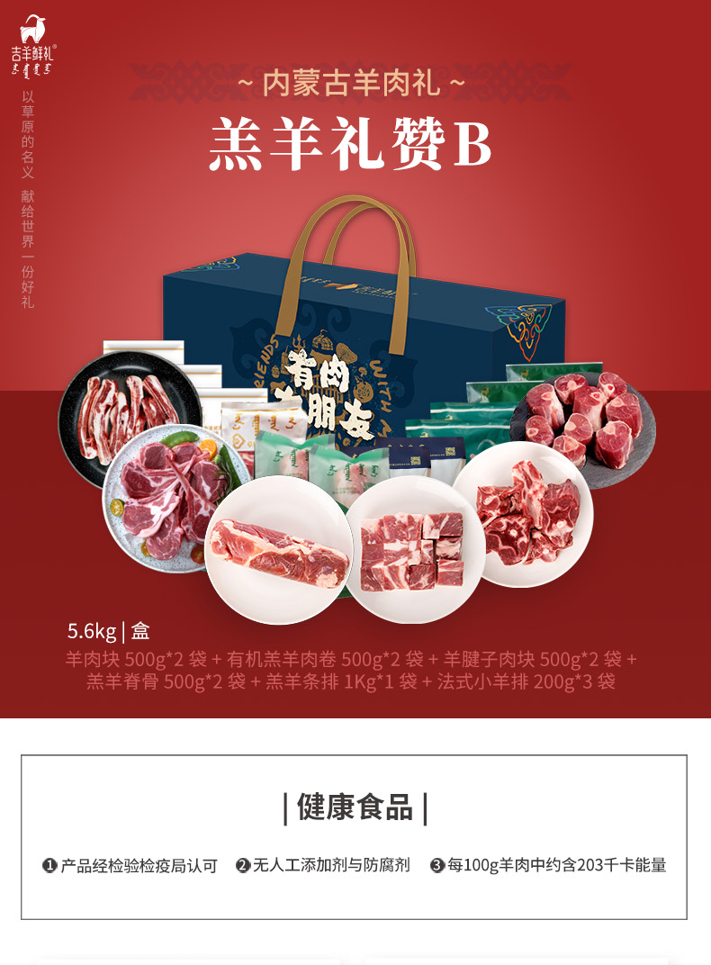 【羔羊礼赞B】5.6kg细毛羊/苏尼特 8月龄 顺丰包邮羊肉礼盒