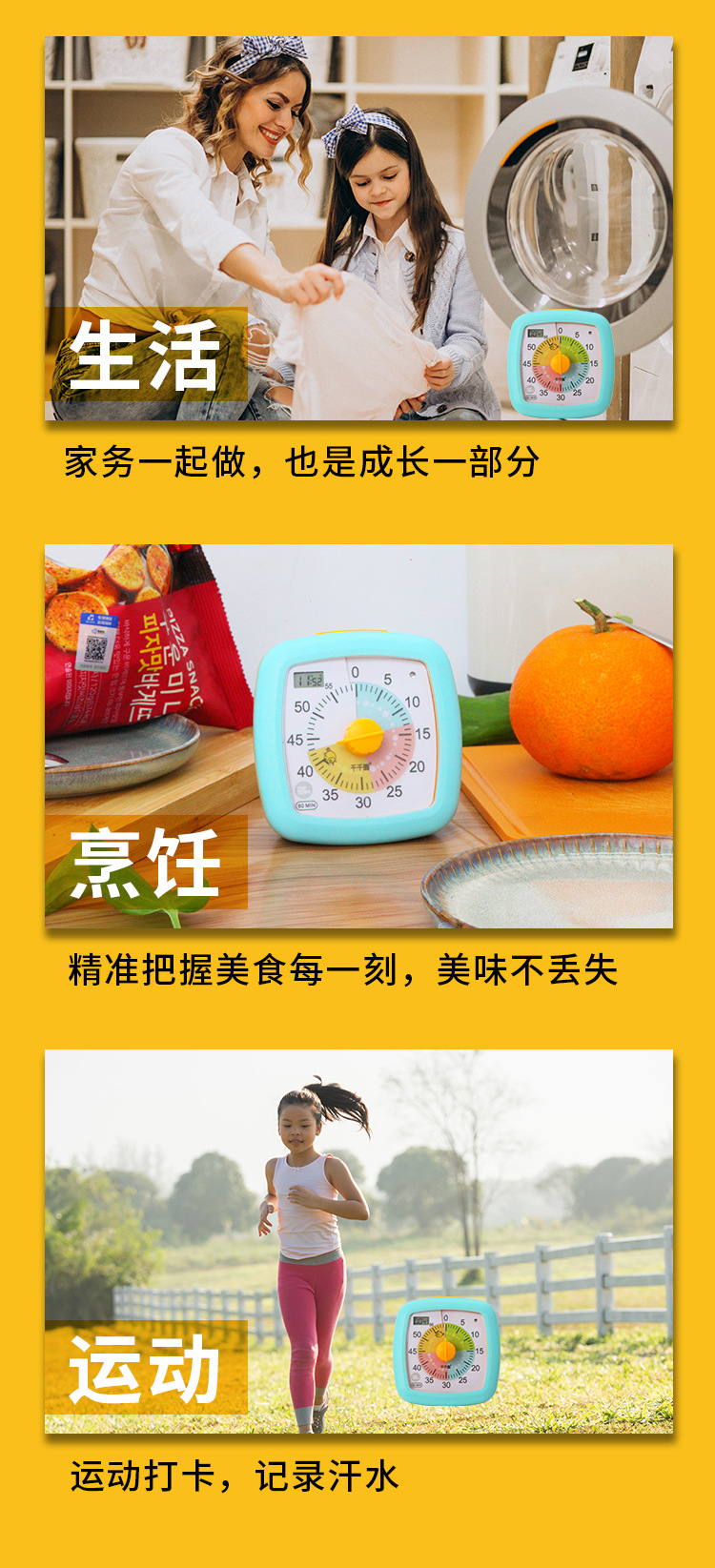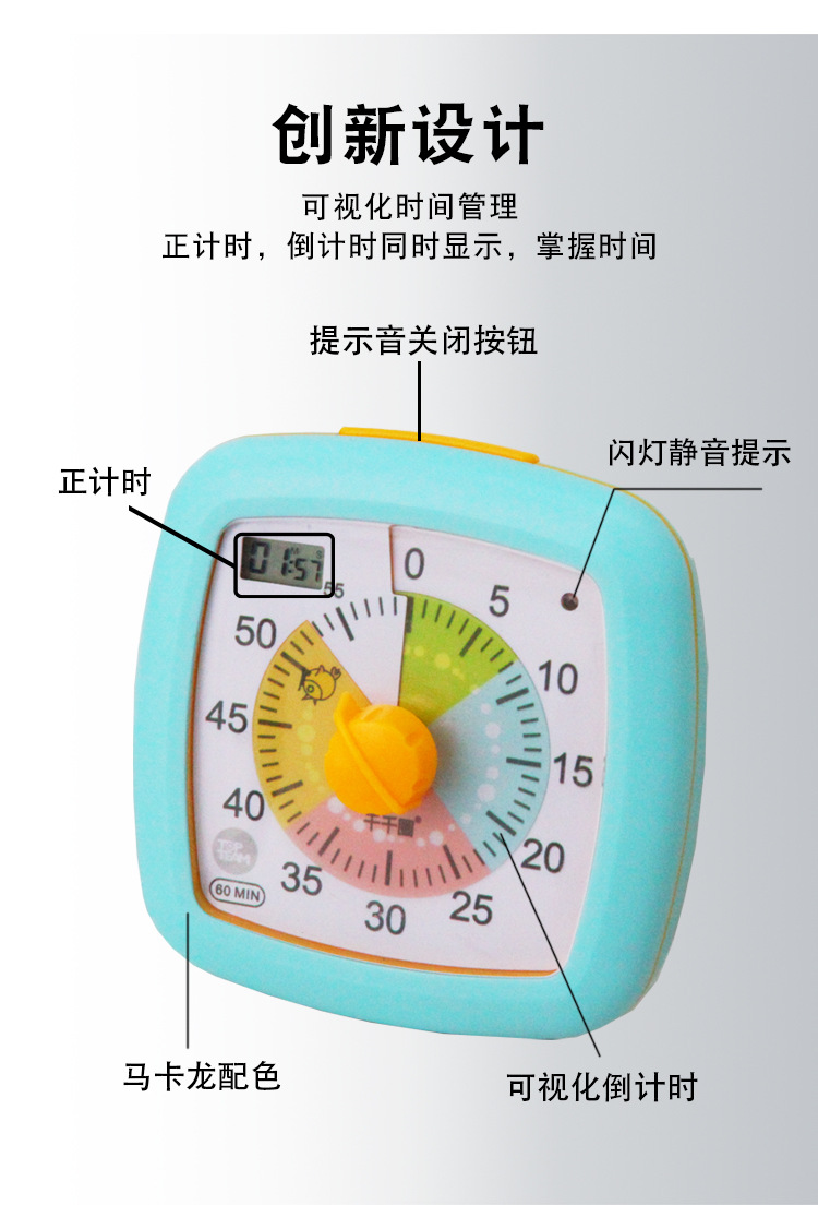 千千圈 时间闹钟学生电子可视计时器静音做题考试时间管理器厨房定时器