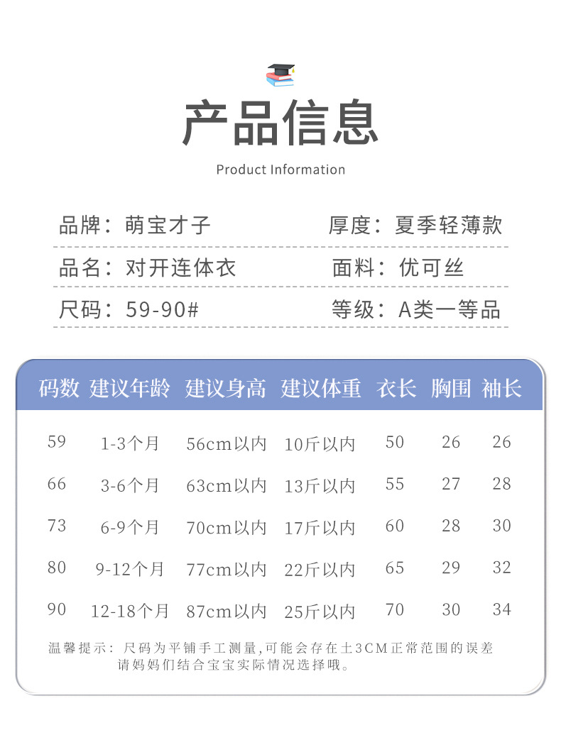 【夏季轻薄对开连体衣】2024婴幼儿爬服轻薄夏季新款韩版男宝宝薄款女长袖儿童连体衣哈衣