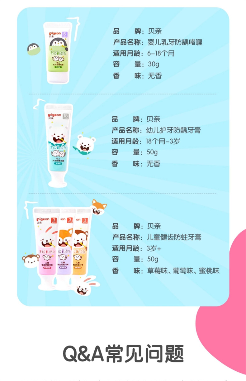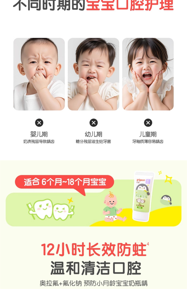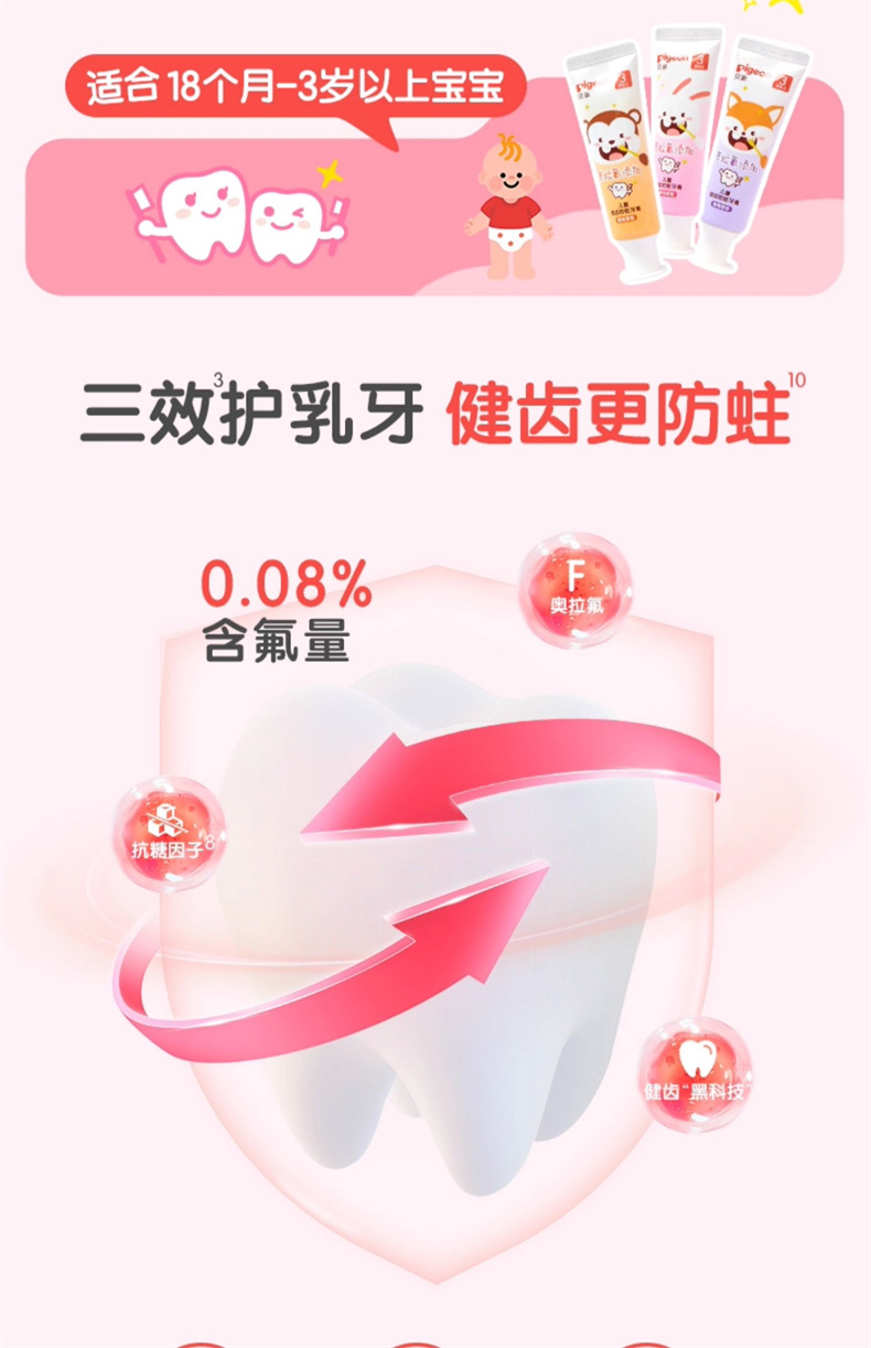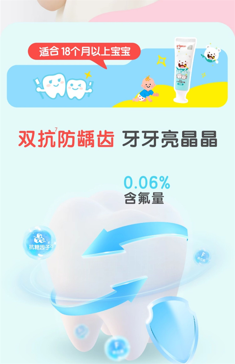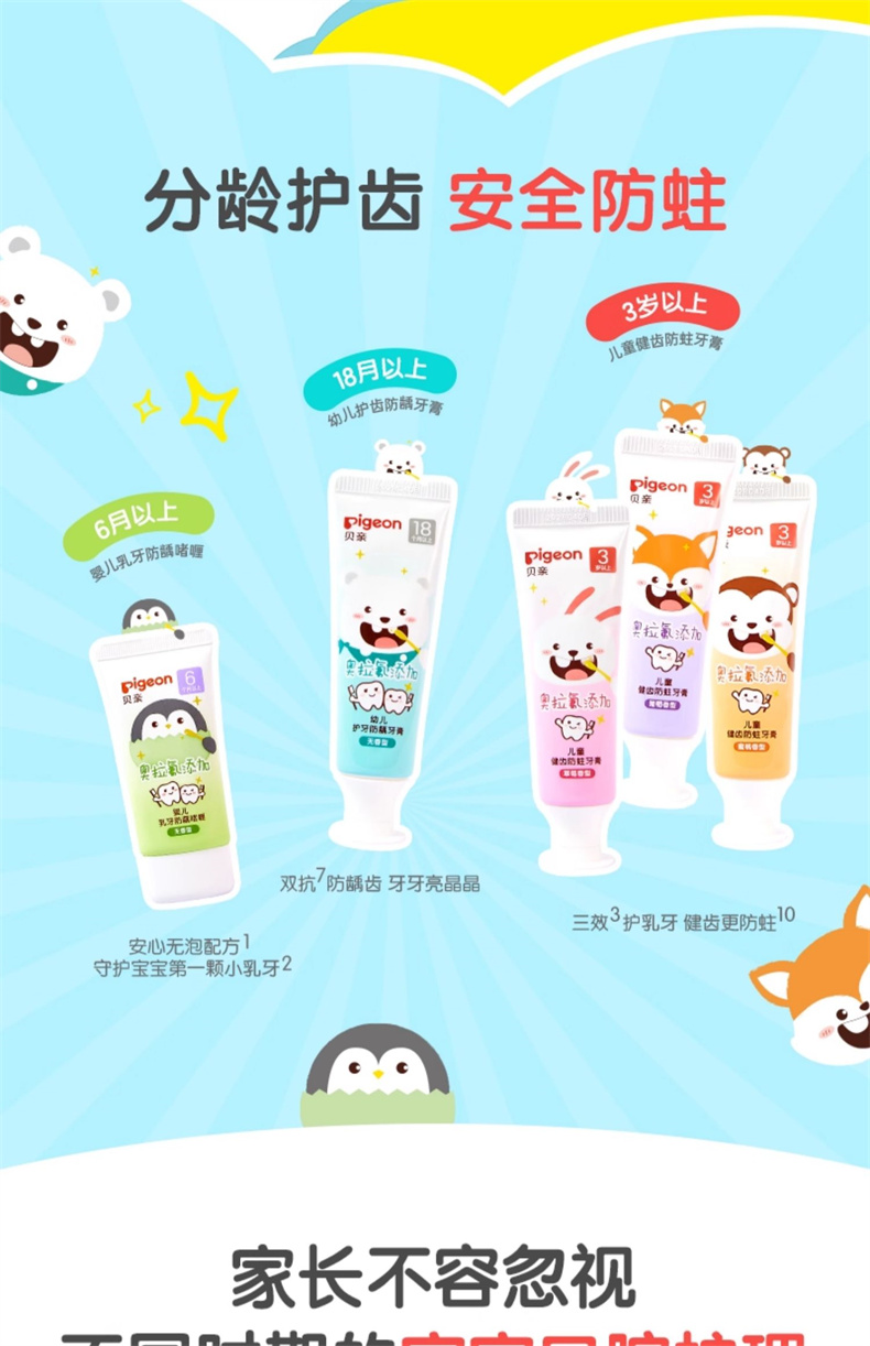 【奥拉氟添加】贝亲牙膏婴儿童宝宝牙刷乳牙啫喱微氟防蛀牙清洁牙齿预防龋齿水果味无香型