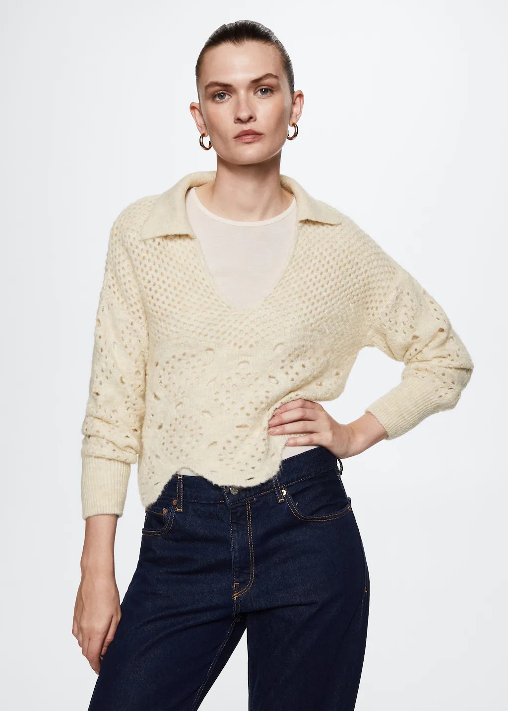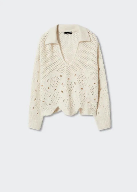 好折¥320!Mango钩花镂空毛衣白菜价,尺码全,入手快。