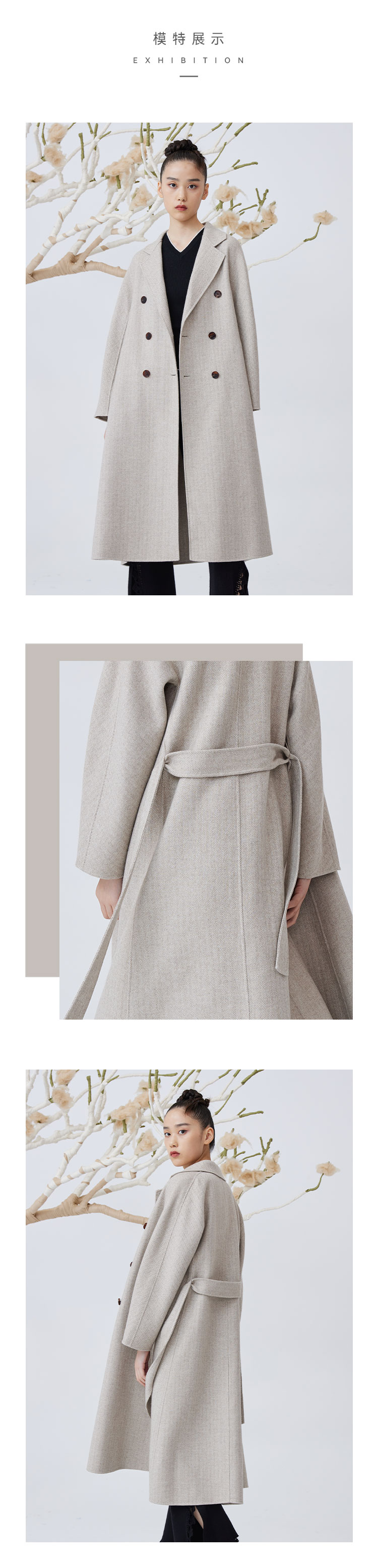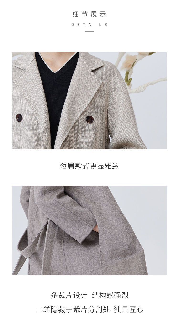 双排扣人字纹羊绒呢女长大衣 SJF92W821C