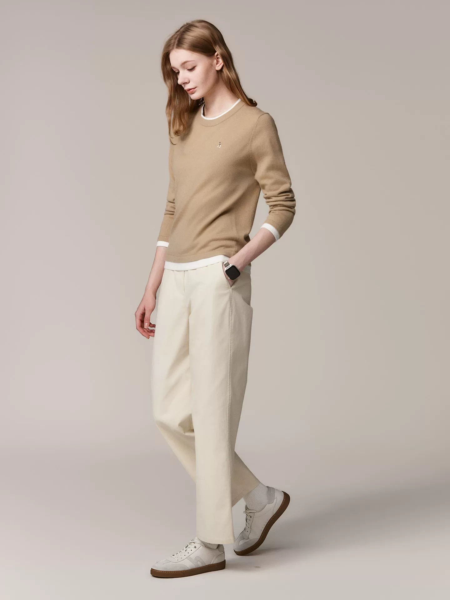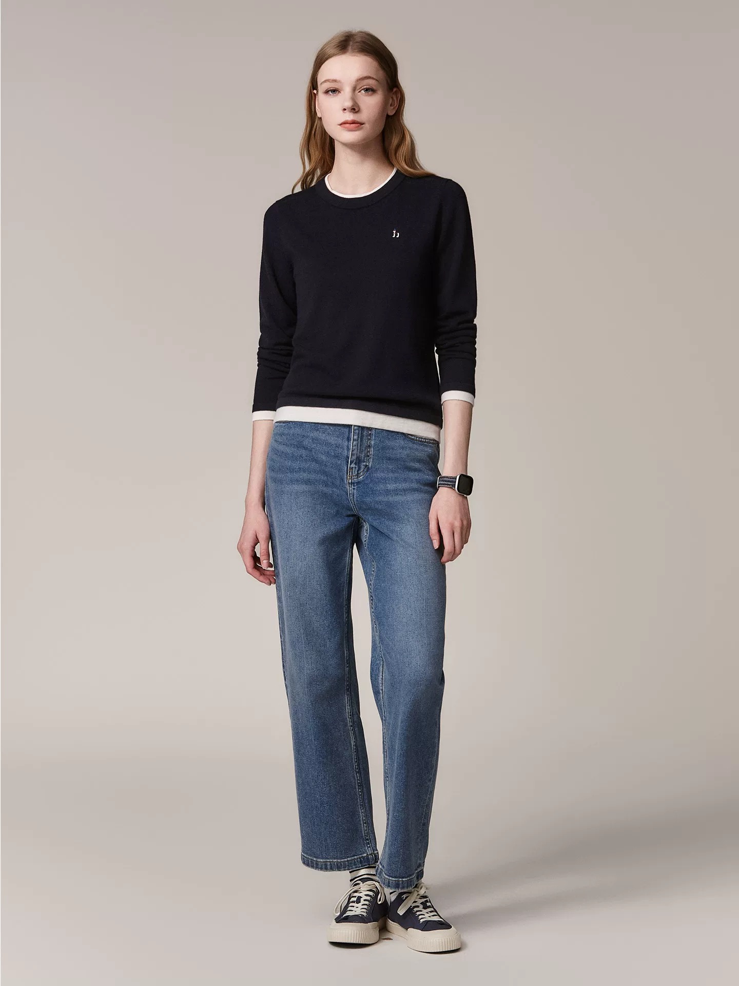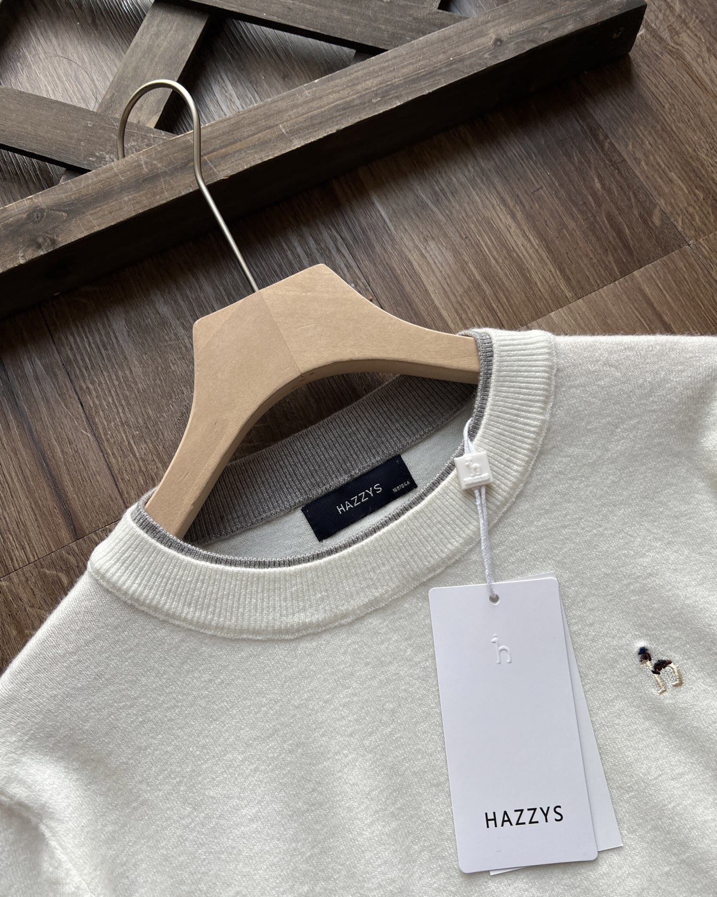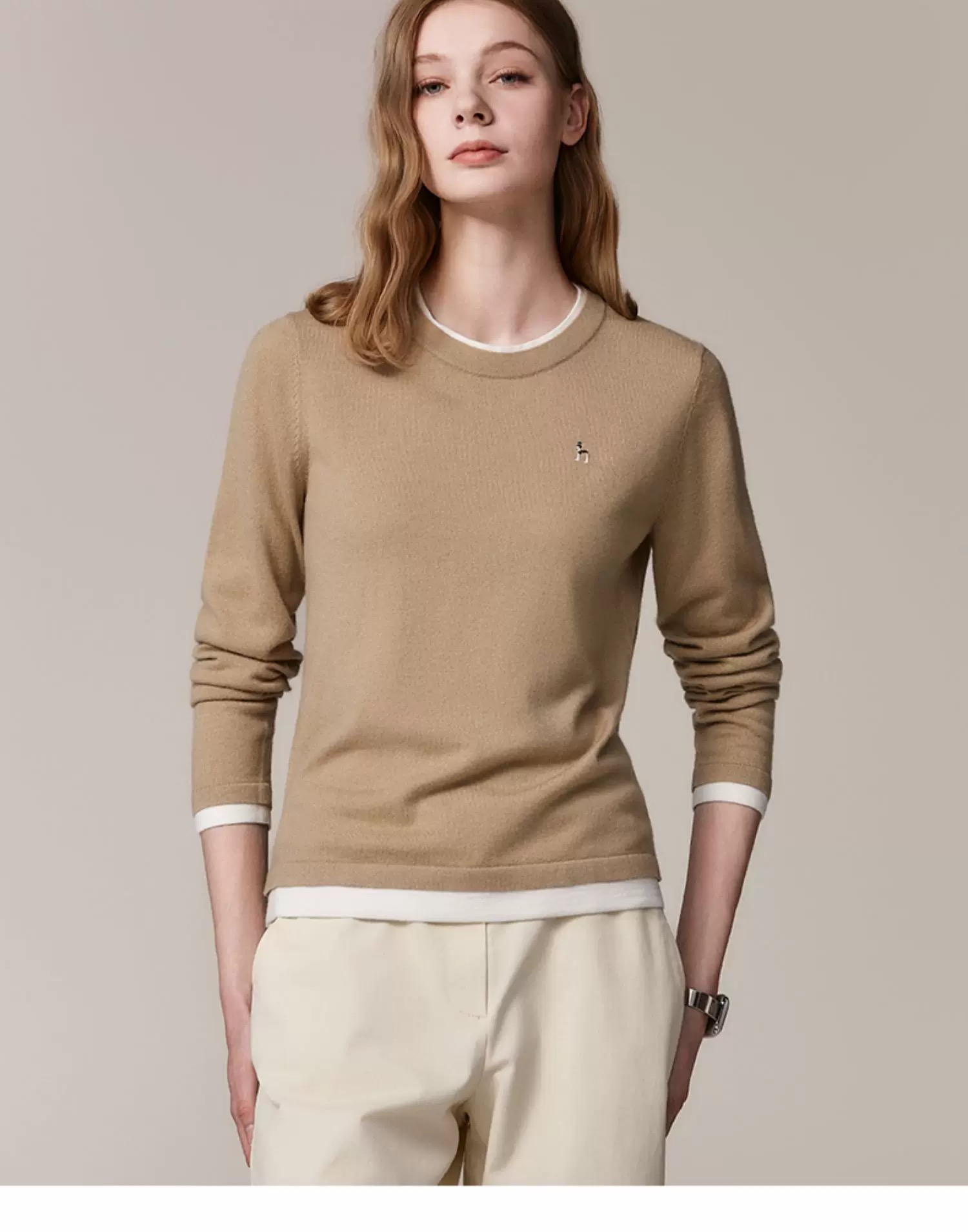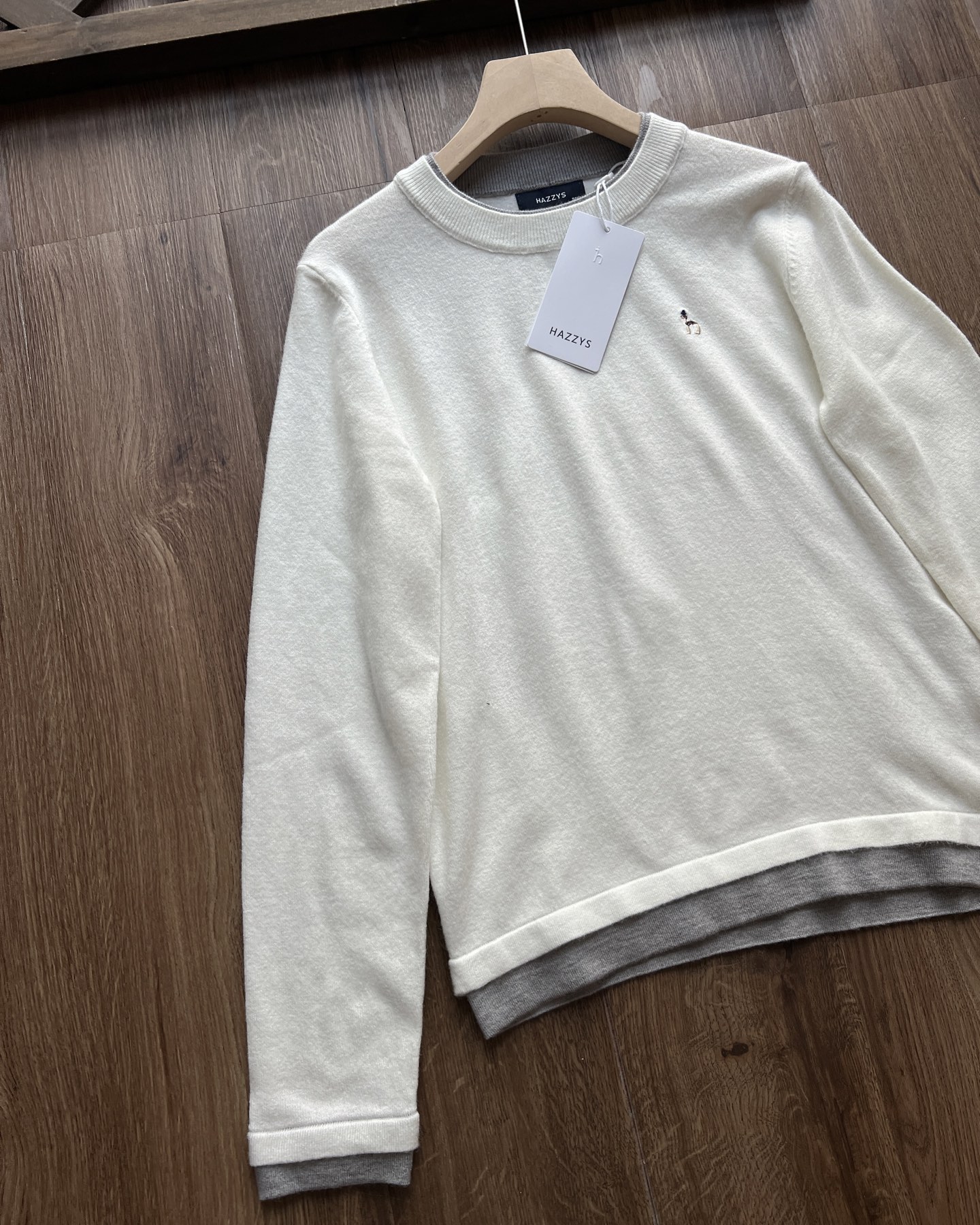 【假两件】Hazzys哈吉斯长袖羊毛衫女士秋季上衣时尚通勤针织衫