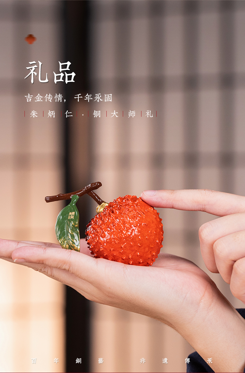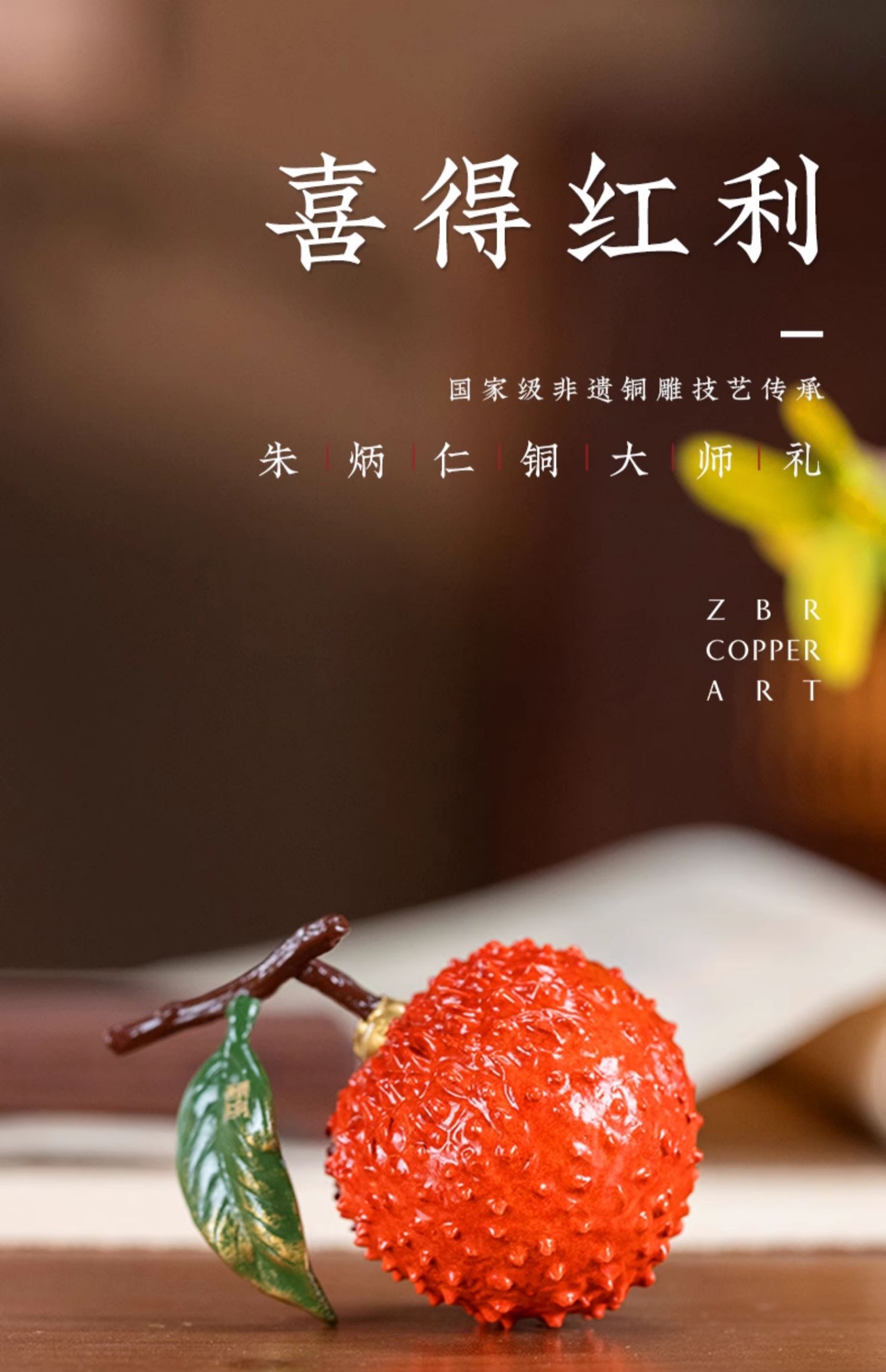 朱炳仁铜 铜荔枝摆件 桌面装饰品 茶宠茶玩 礼品 产品名称:喜得红利 -分销