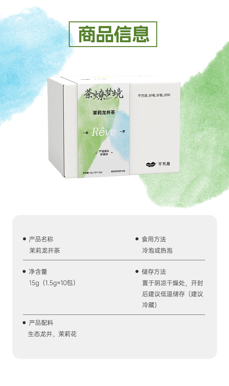 【茉莉龙井茶】通过窨制工艺,使茉莉花香与龙井茶香混合,做到不见茉莉花却含有茉莉花香