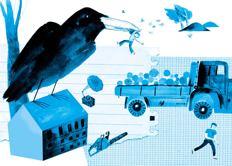 成百上千只鸟儿栖息在高耸的悬铃木上,像被人涂抹的一幅画儿。其中,红蓝色的线条其实是藏在宽大树叶间的灌丛鸦和红斑雀;黑色的线条则是成对儿的麻雀,它们停留在稍矮的枝丫上,间或混杂着黑色的山雀、捕蝇鸟和鹪鹩。我甚至通过那些彩色的羽毛数出了四只白颊鸟。