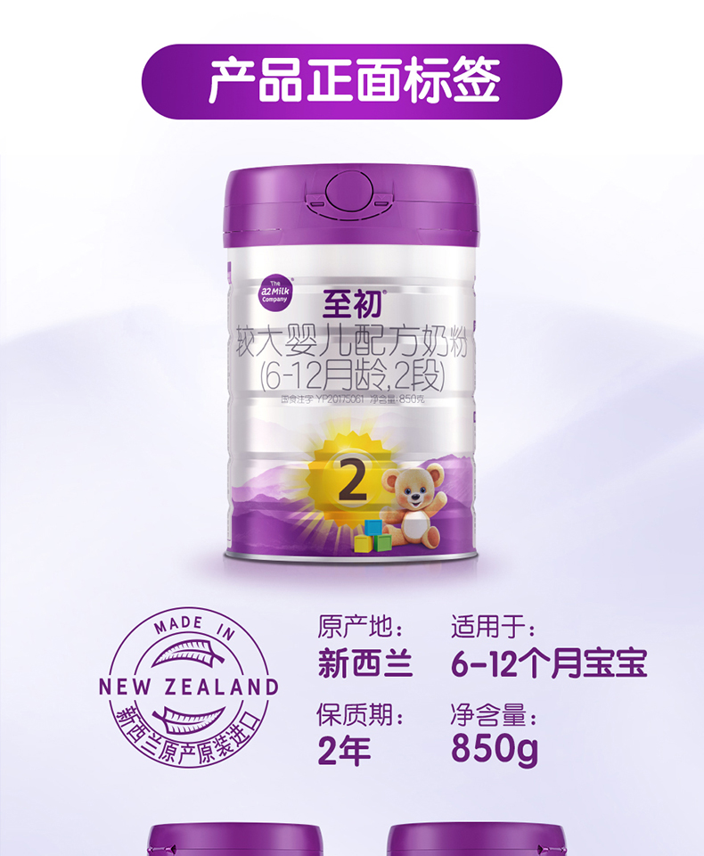 【新国标】a2至初奶粉2段850g(6-12月龄)