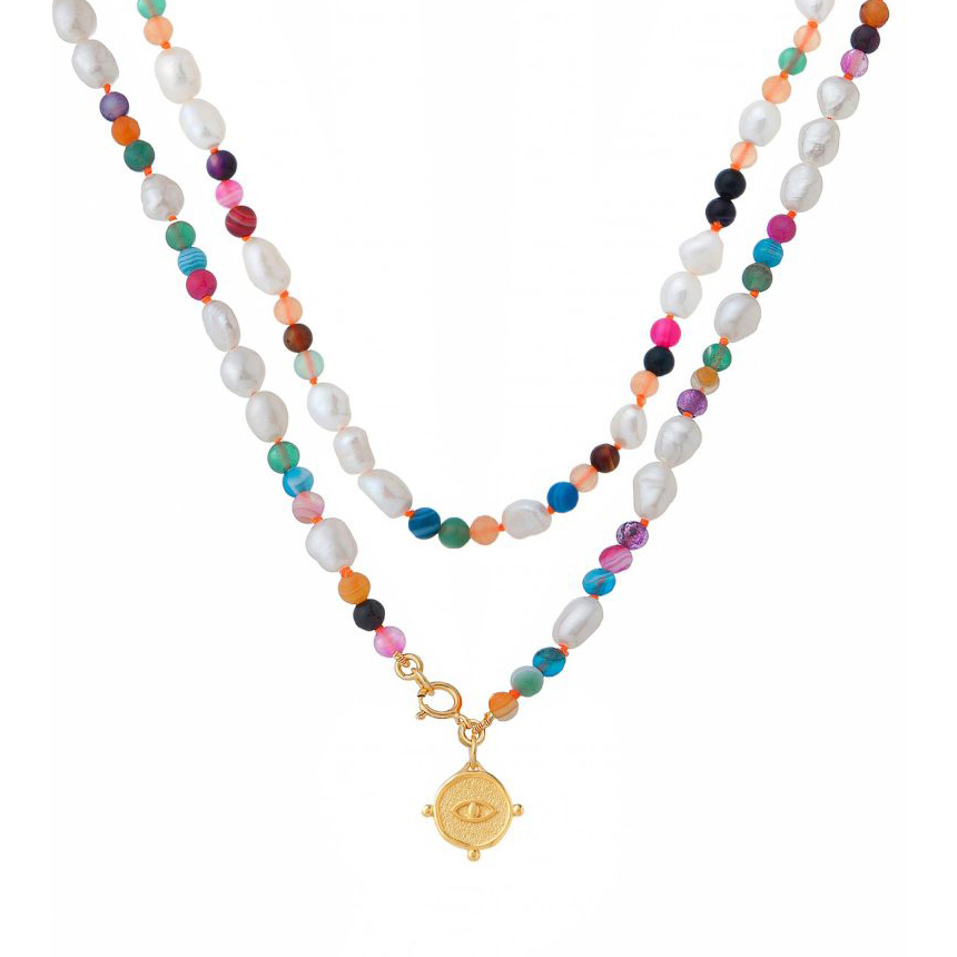 北京仓|Barbóra-Eye-彩色玛瑙 眼睛金币 长项链(两种戴法)[希腊设计师]