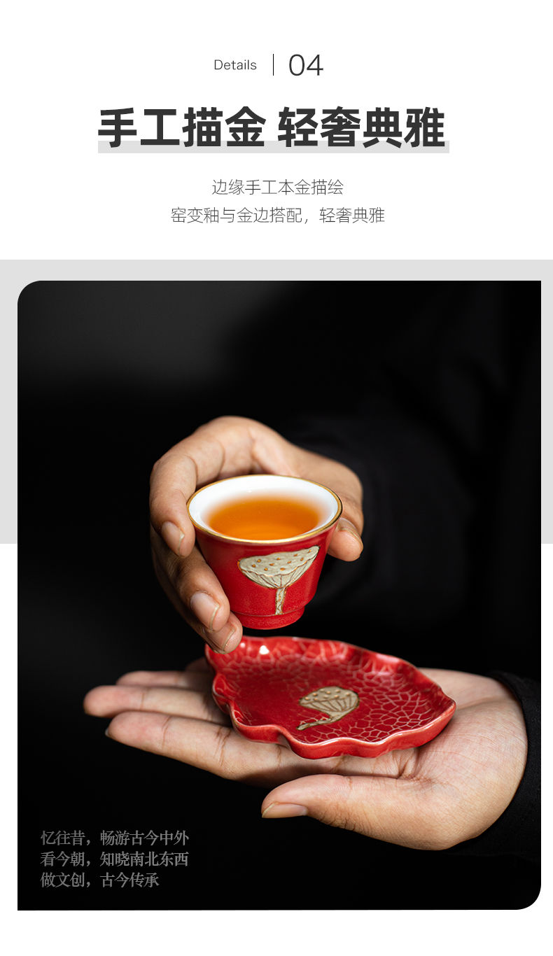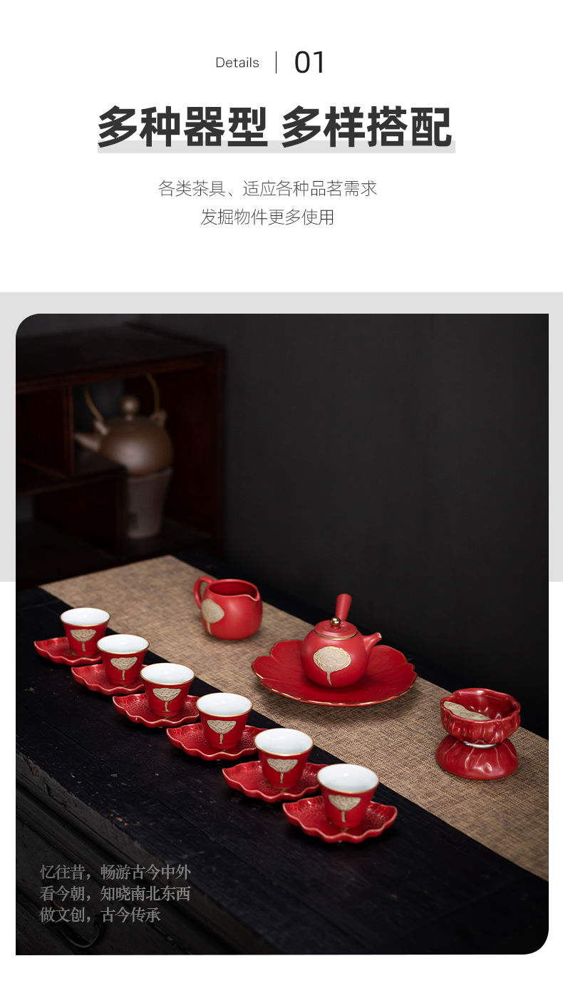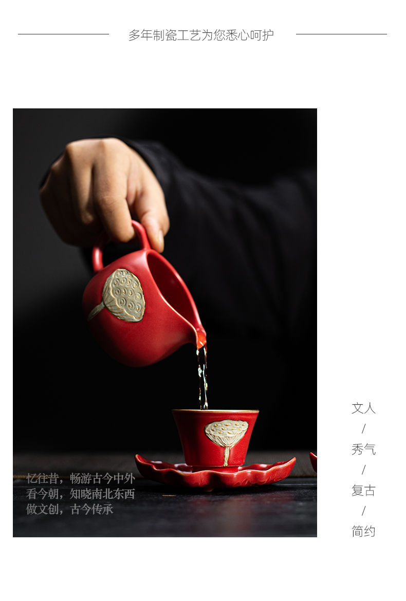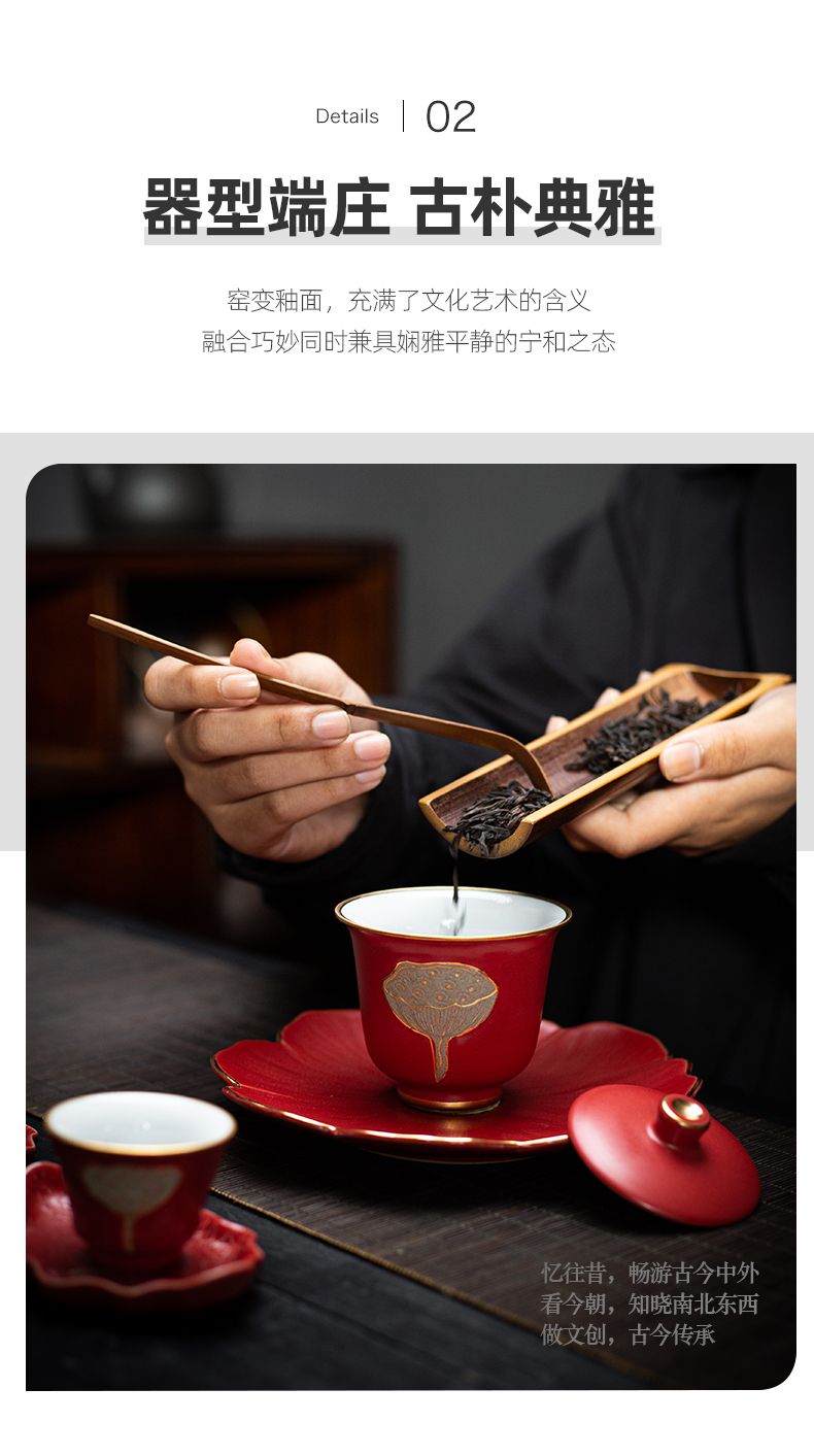 莲生吉祥宫墙红盖碗侧把壶功夫茶具套组复古家用礼盒装商务礼品