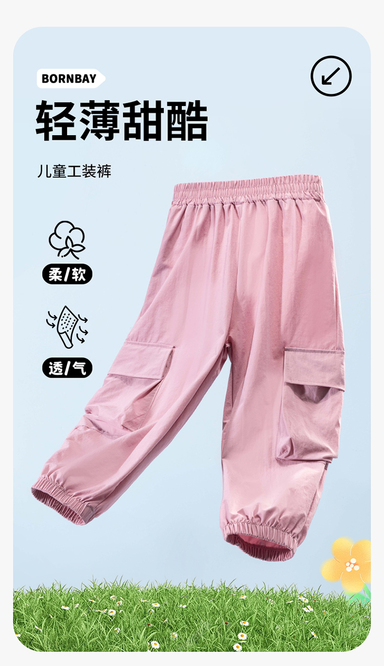 贝贝怡童装女童潮酷工装裤子2024夏季新款中大童舒适透气休闲裤子ZB2DK035