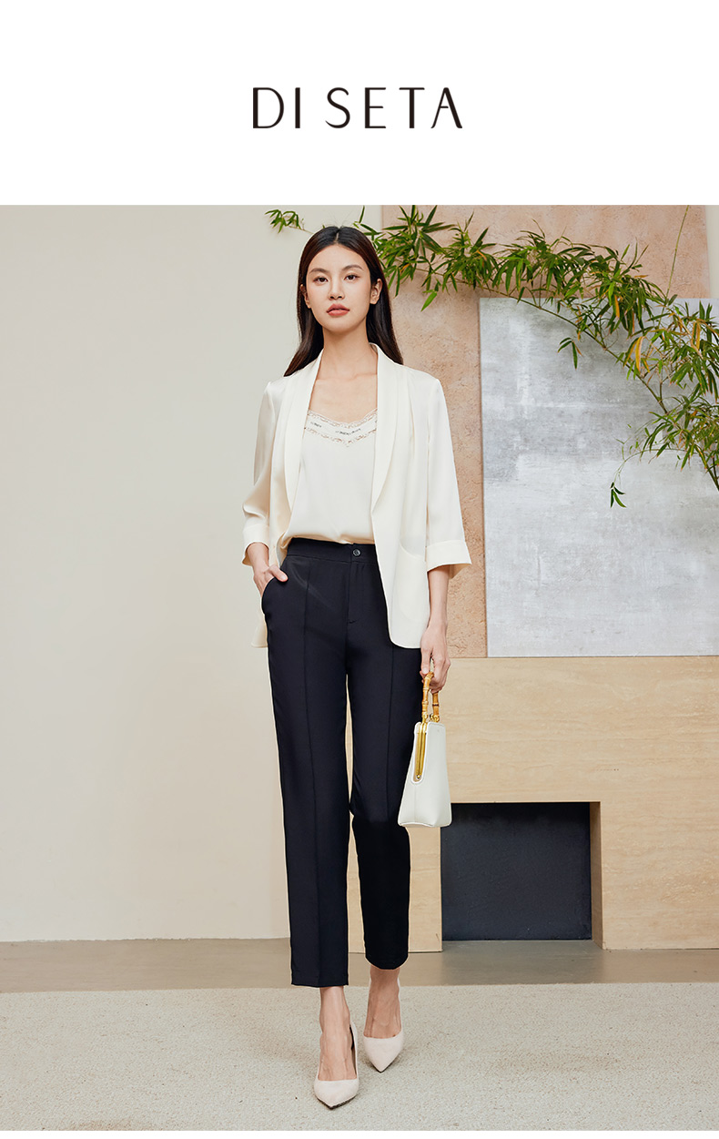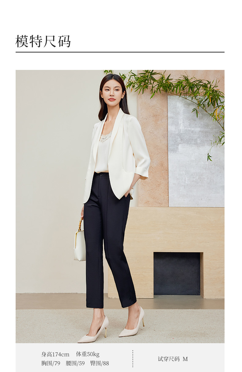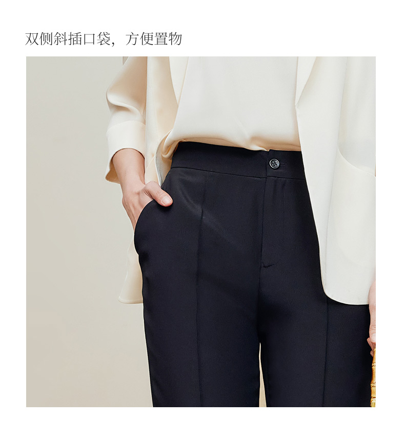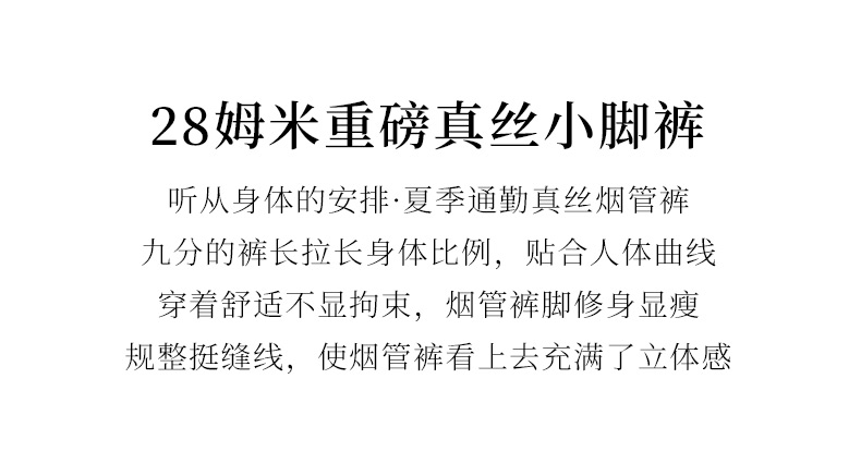 玳莎28姆米重磅真丝烟管裤女2024夏季新款显瘦九分小脚裤西装裤 EB36303