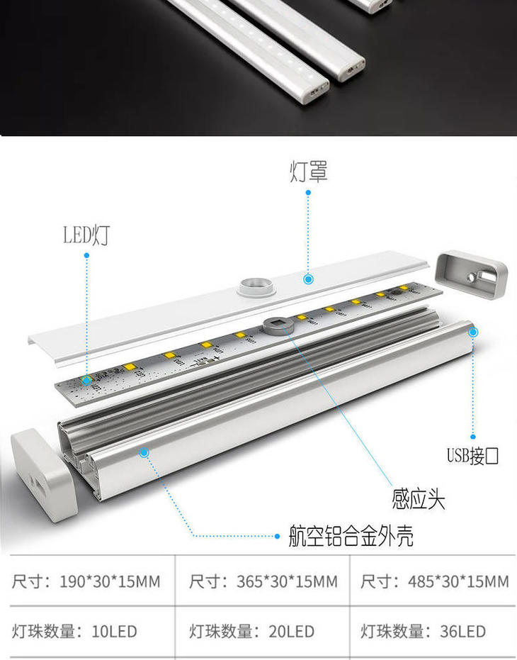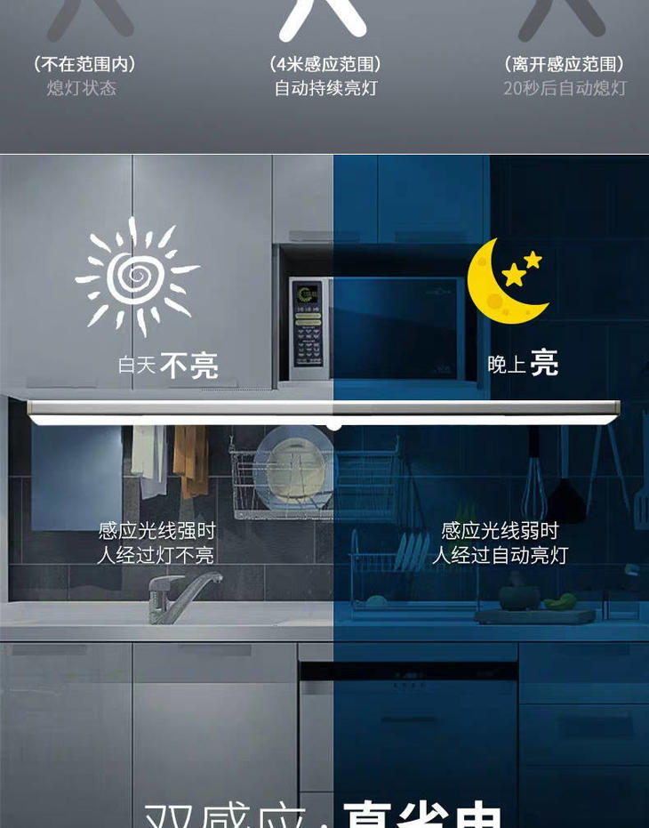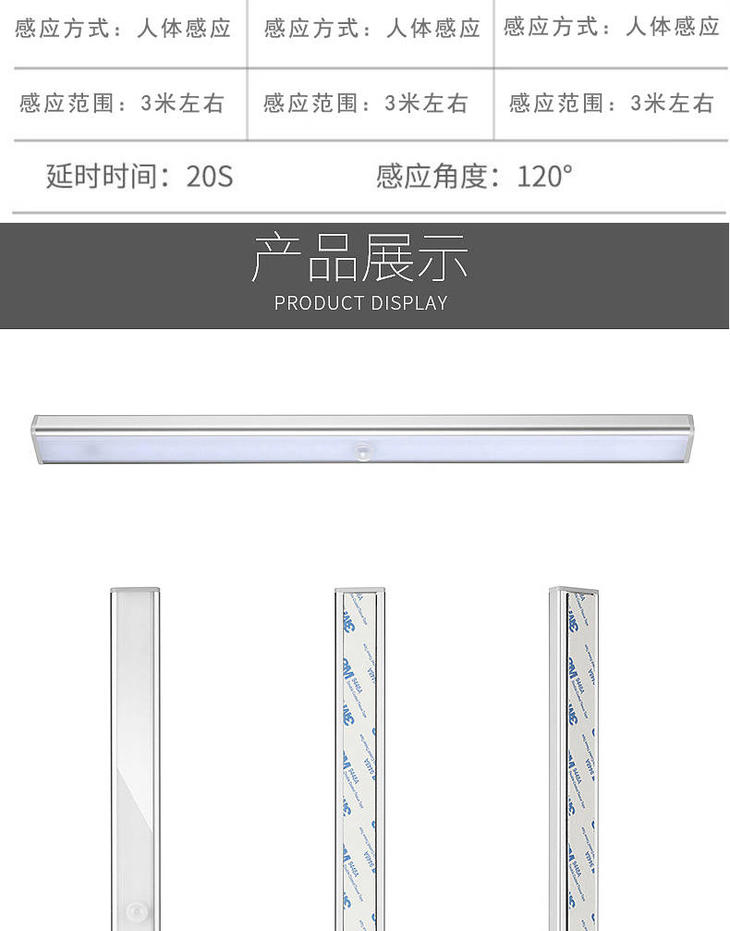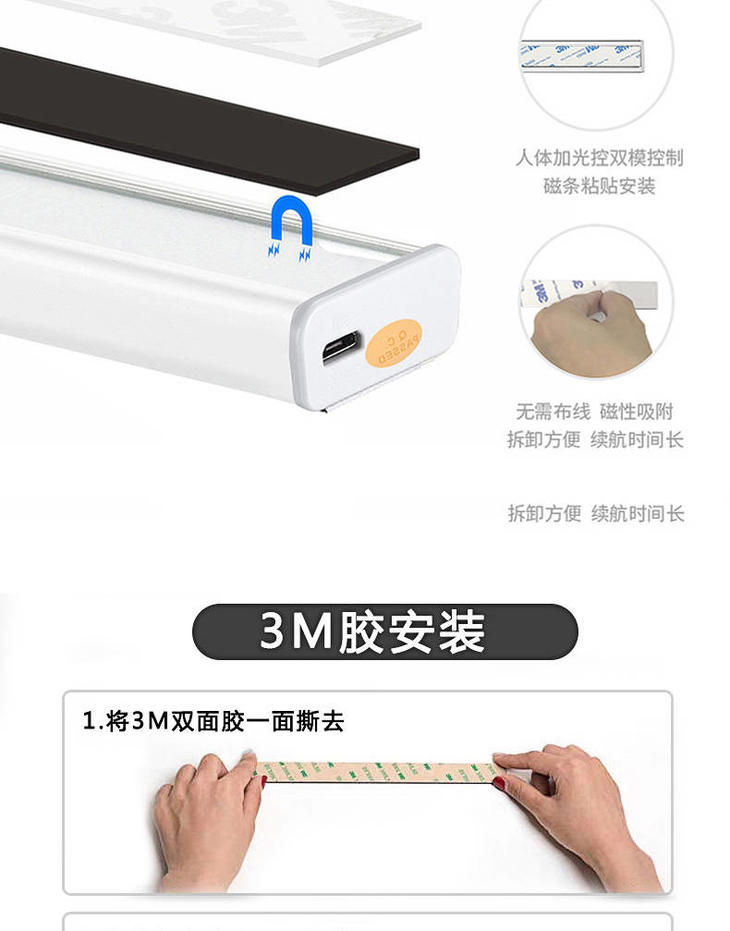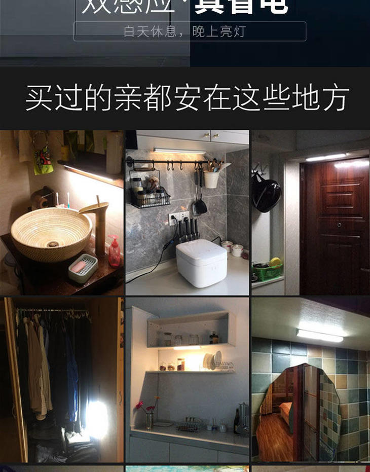 感应灯人体感应灯家用无线安装充电款小夜灯橱柜灯过道楼道衣柜灯