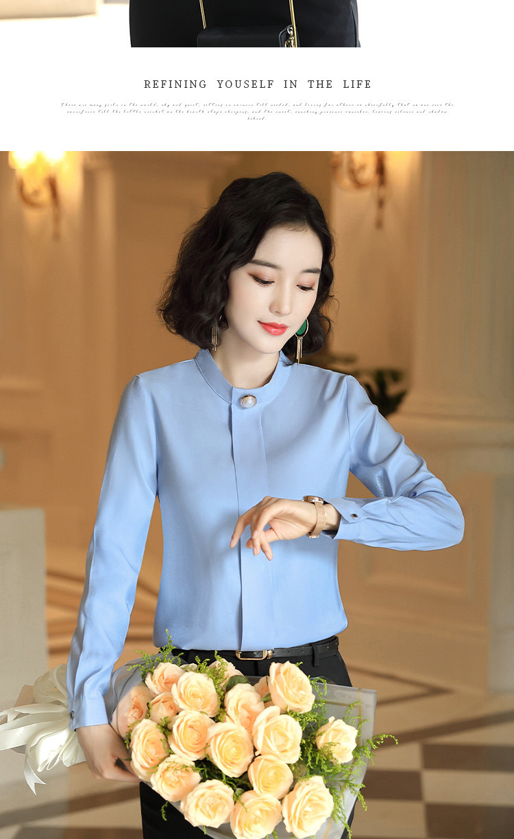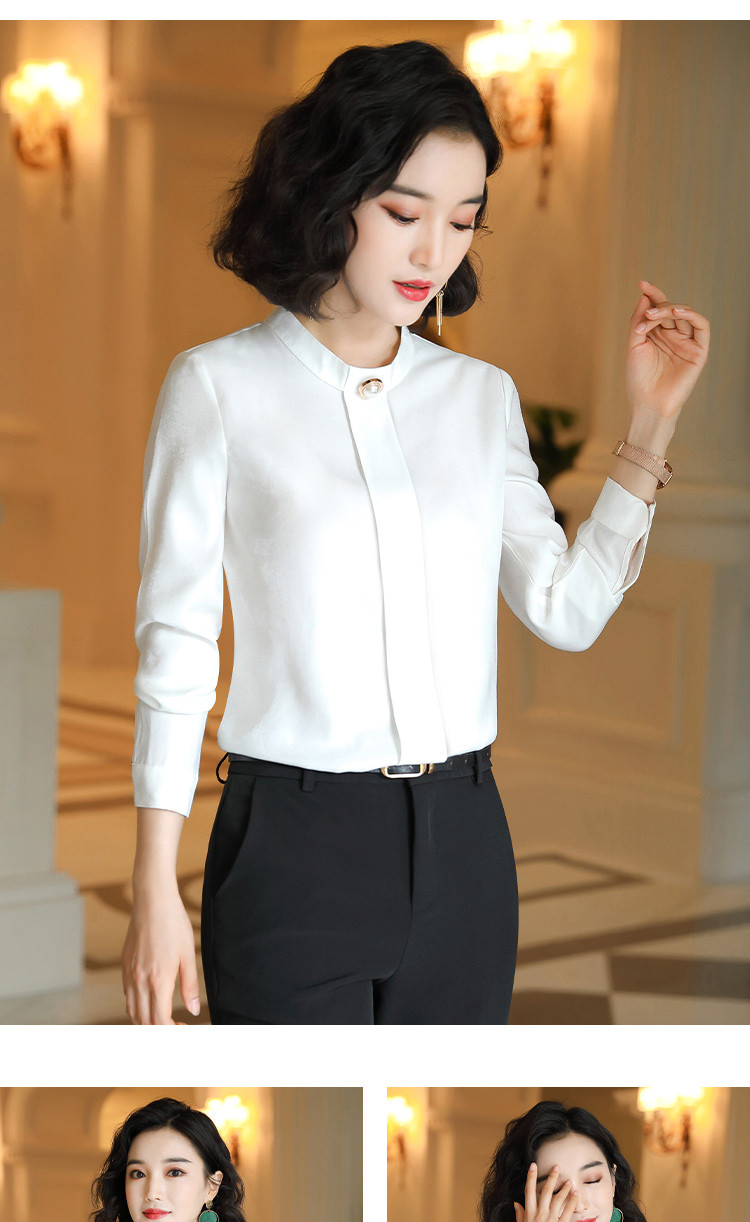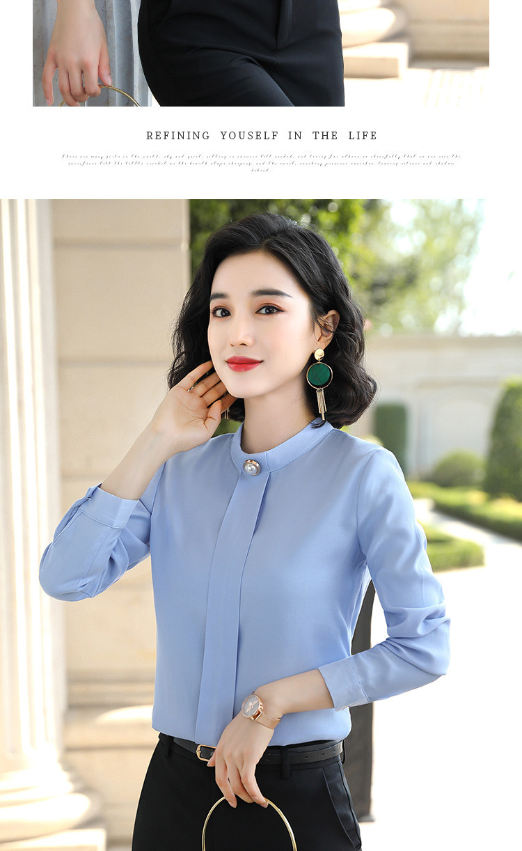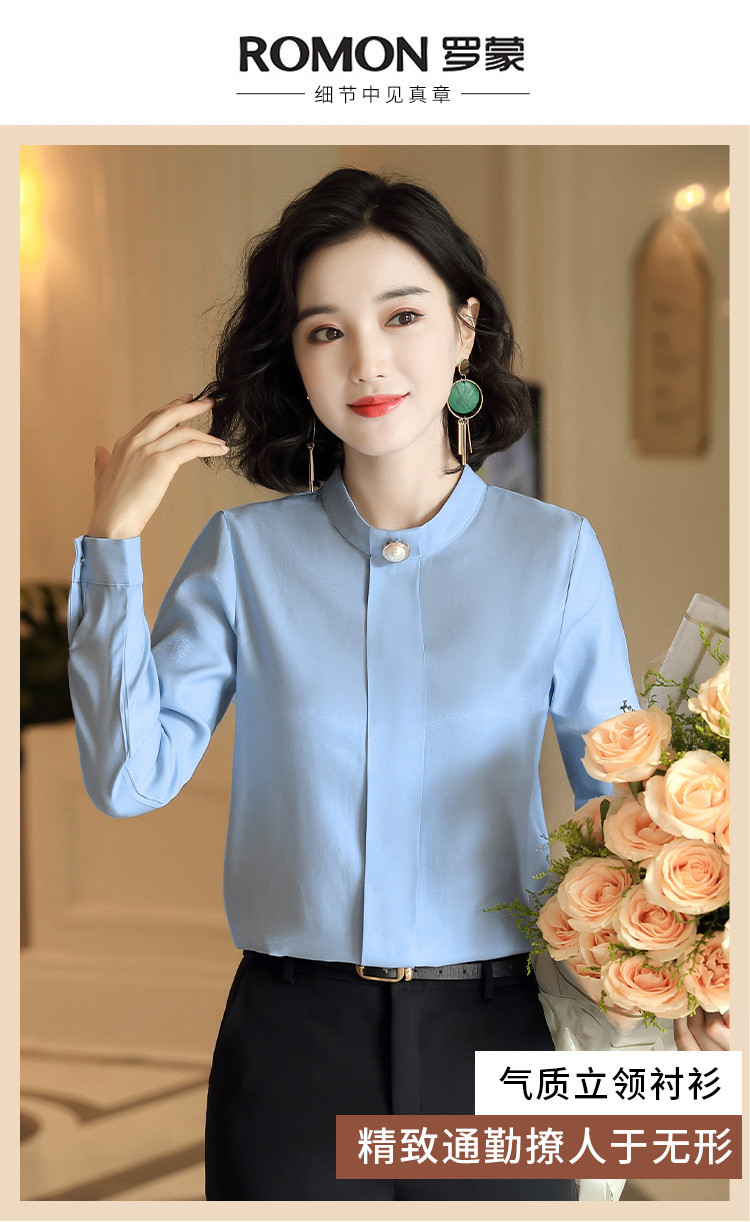 罗蒙衬衫女长袖春夏装商务通勤纯色简约修身套头气质女衬衣
