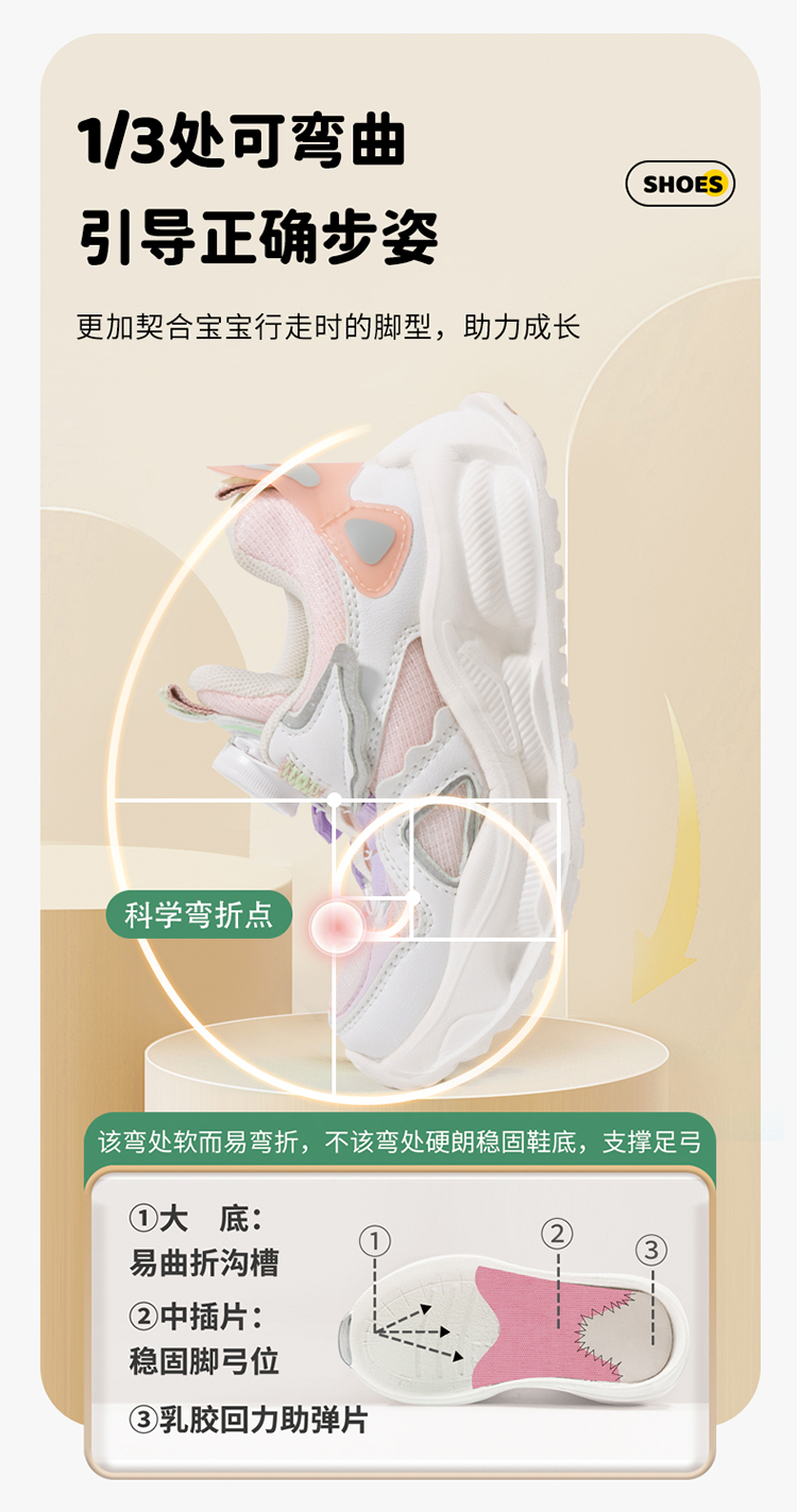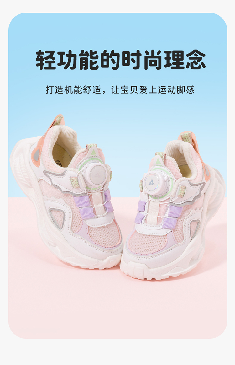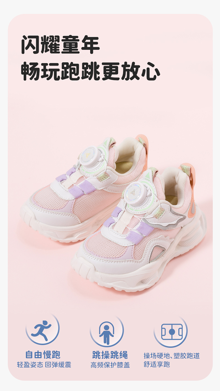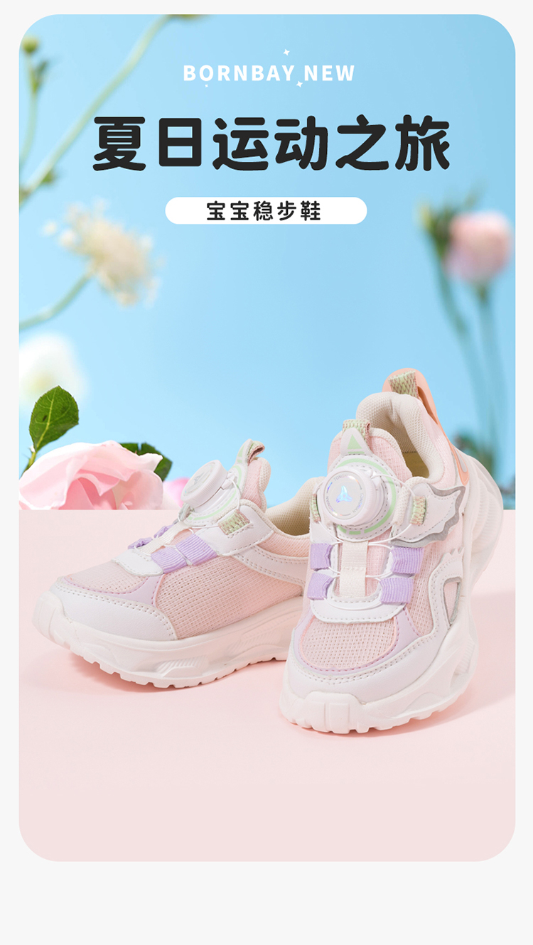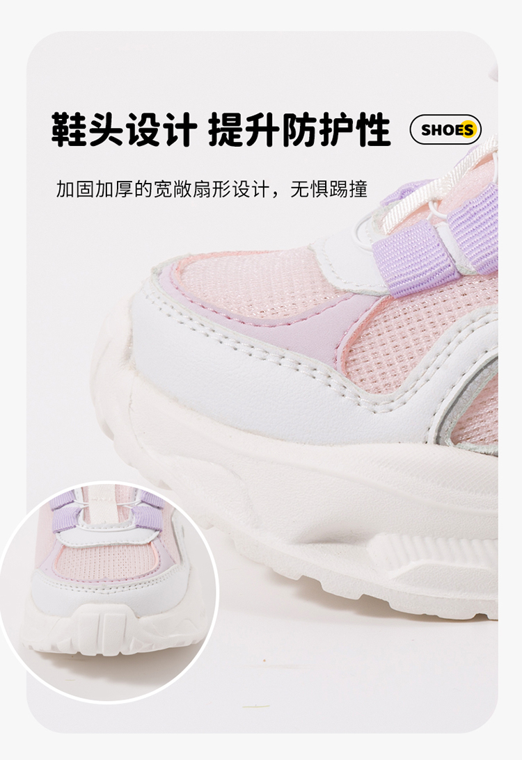 贝贝怡【旋钮扣】童鞋女童春秋运动休闲鞋厚底防滑宝宝鞋透气防臭网面鞋