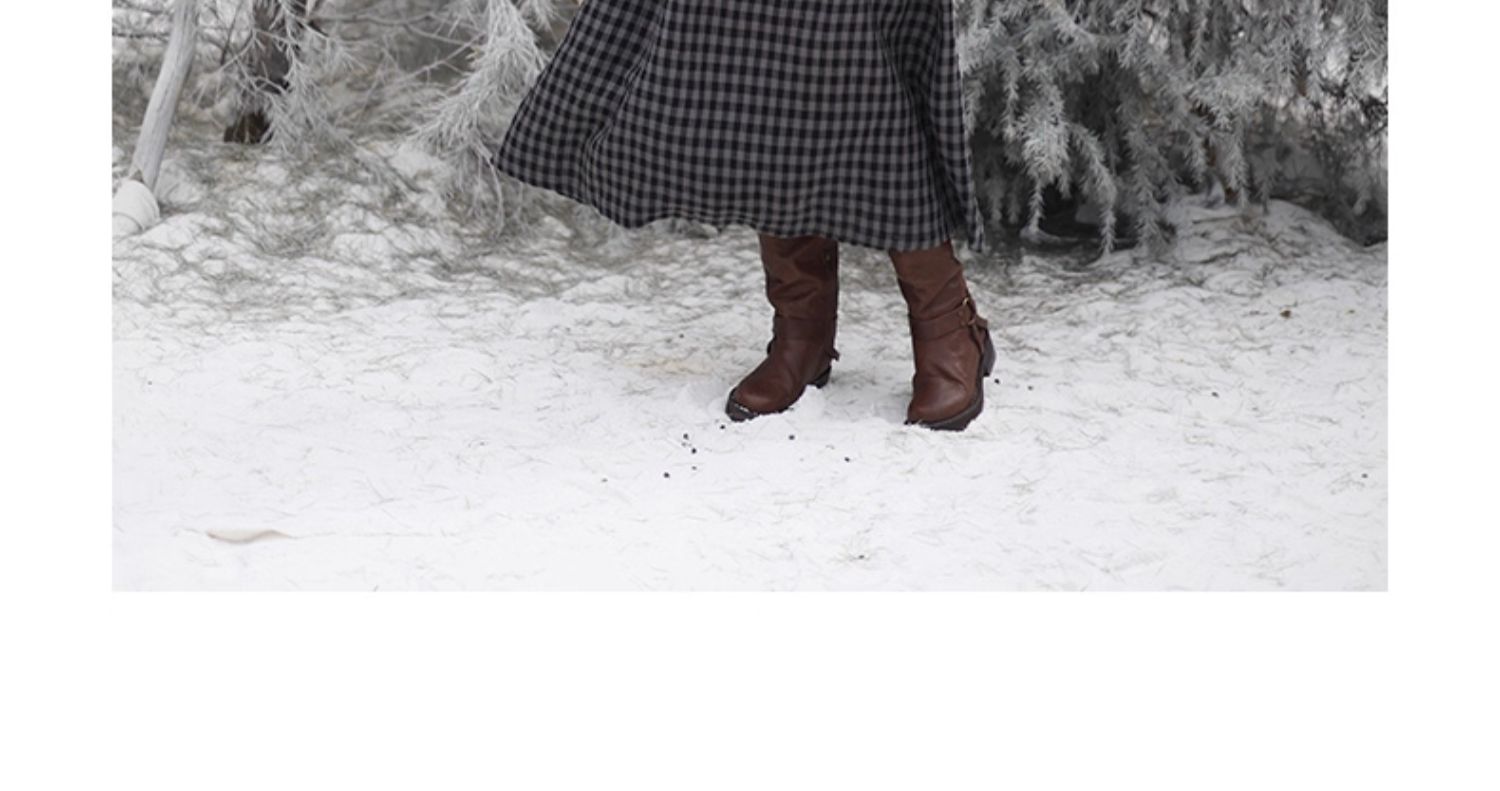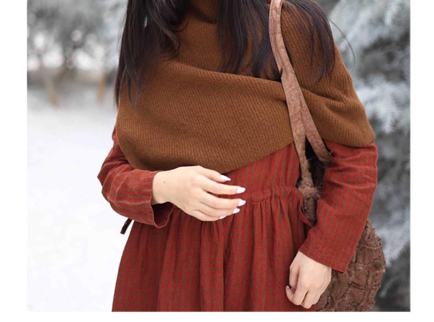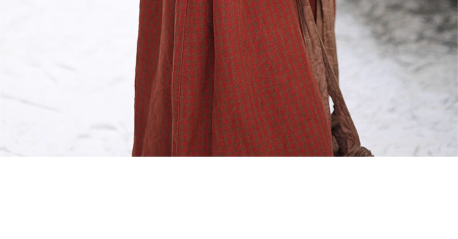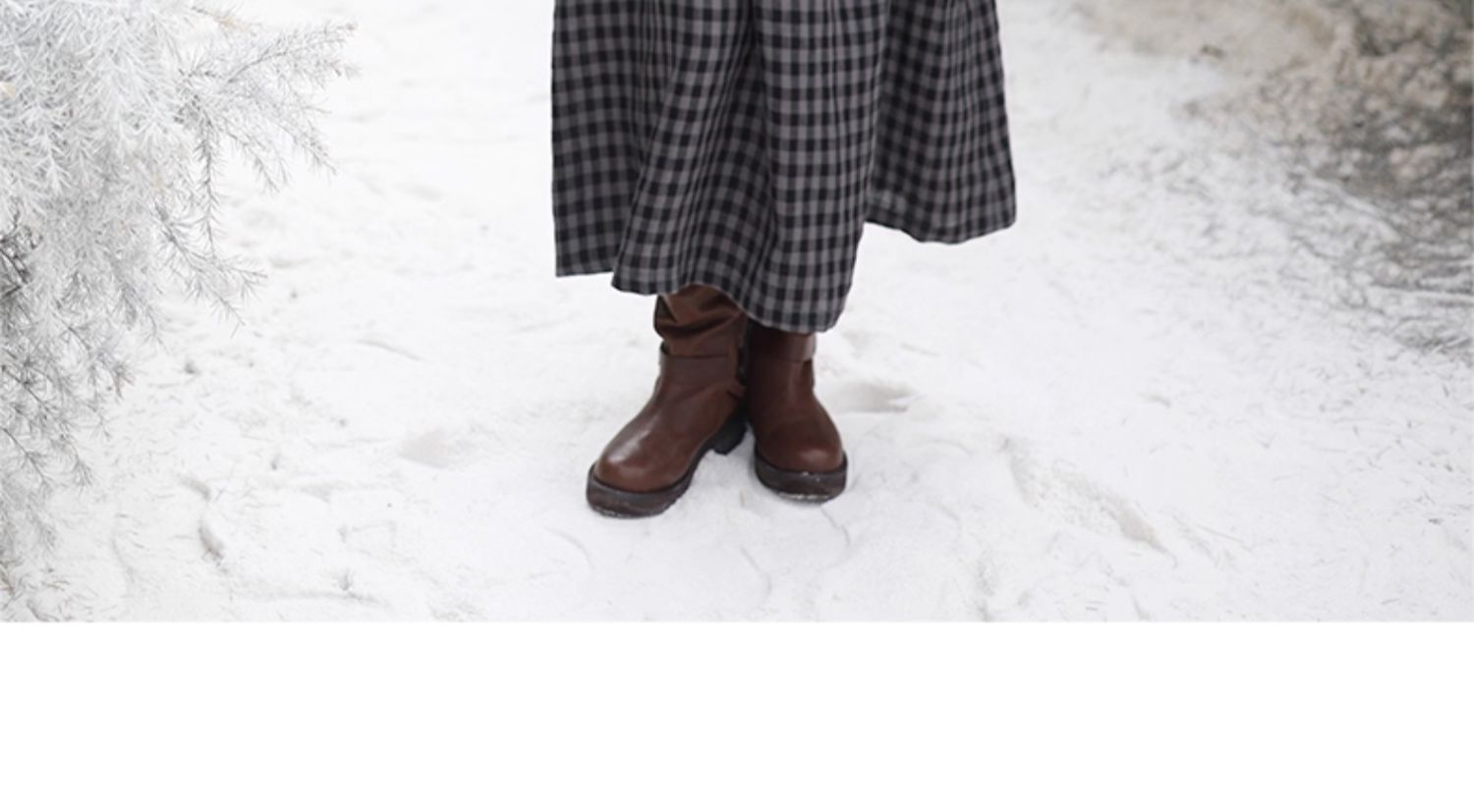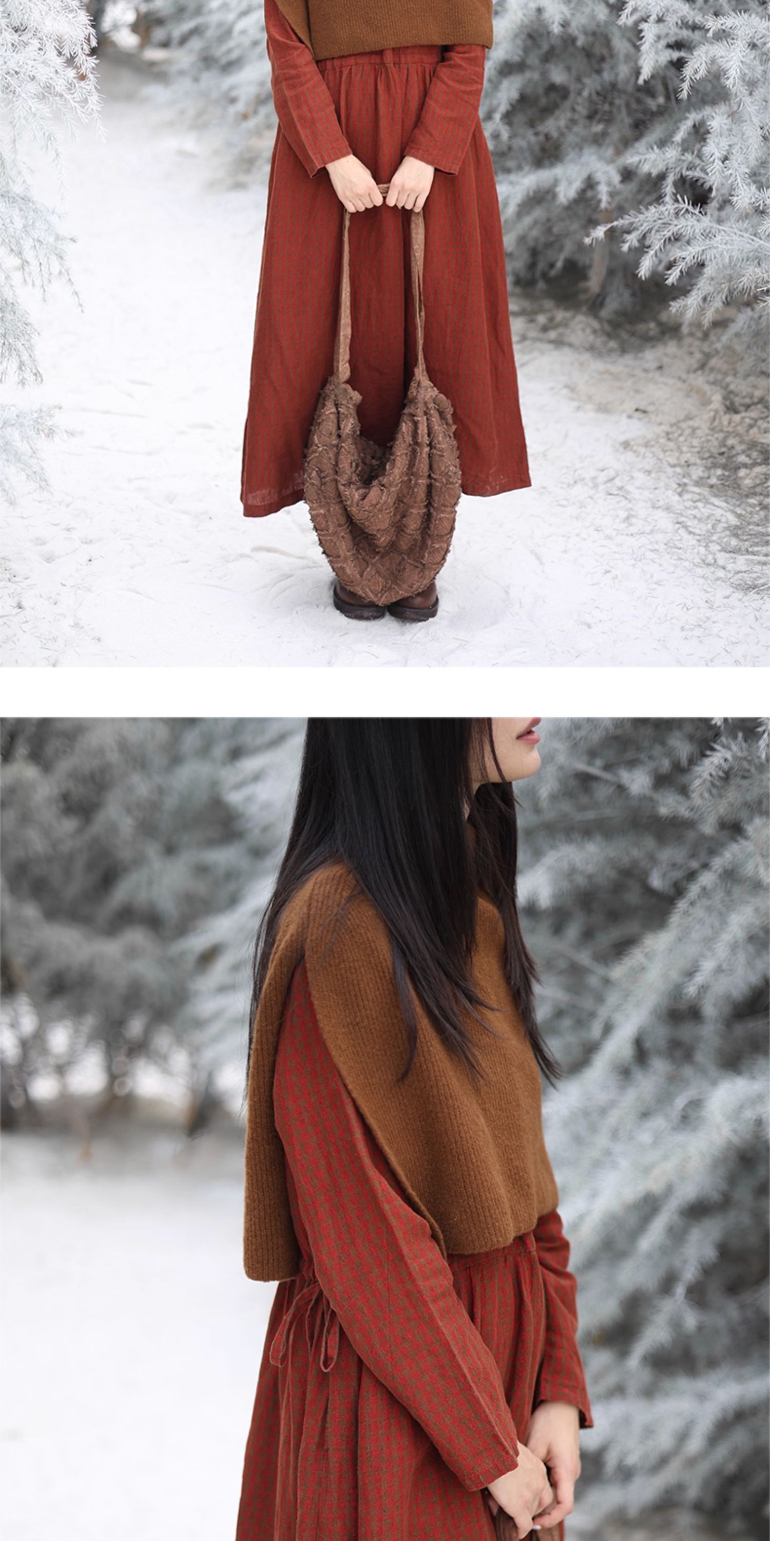 特绽放728朵/影格·色织亚麻格纹花边领腰部系带收腰长袖连衣裙女