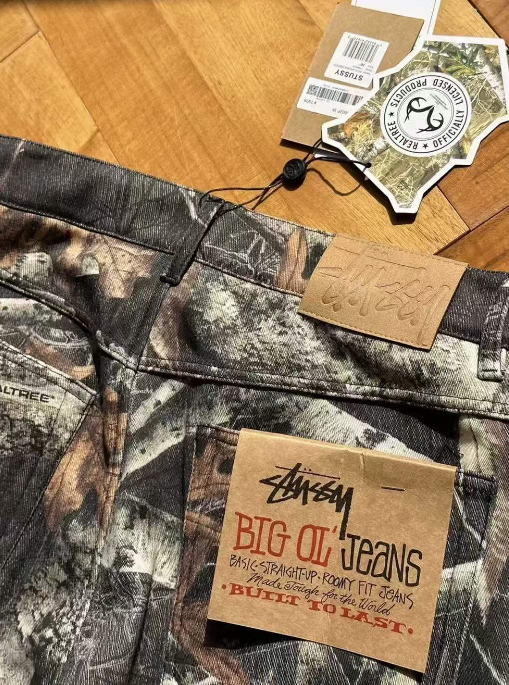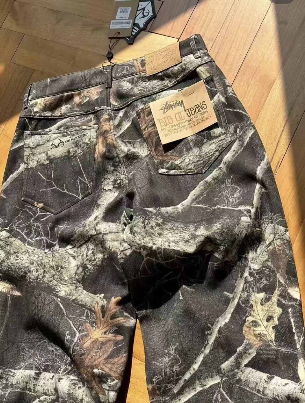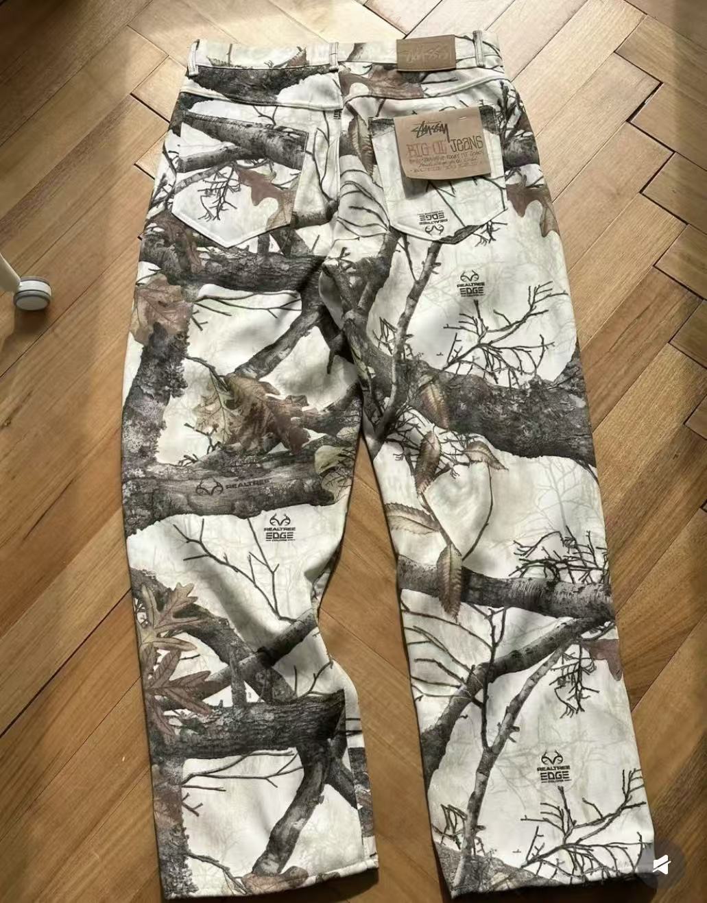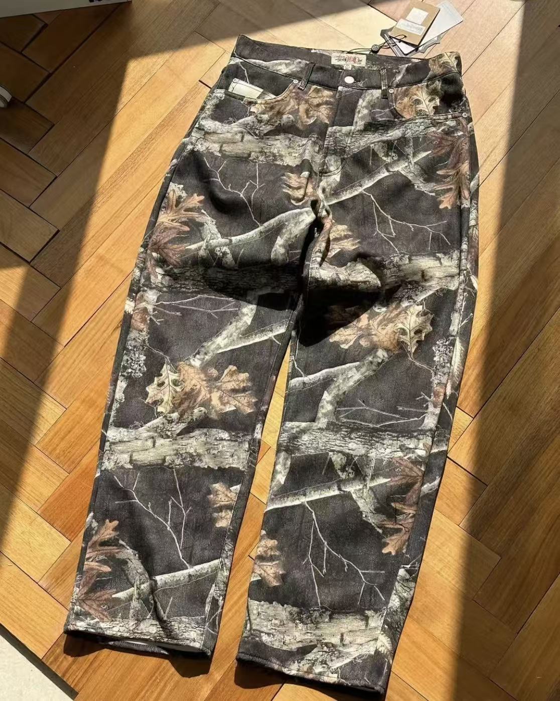 秋冬款,王嘉尔同款 Stussy /斯图西 度假系列 迷彩枫叶🍁树枝落叶满印工装长裤