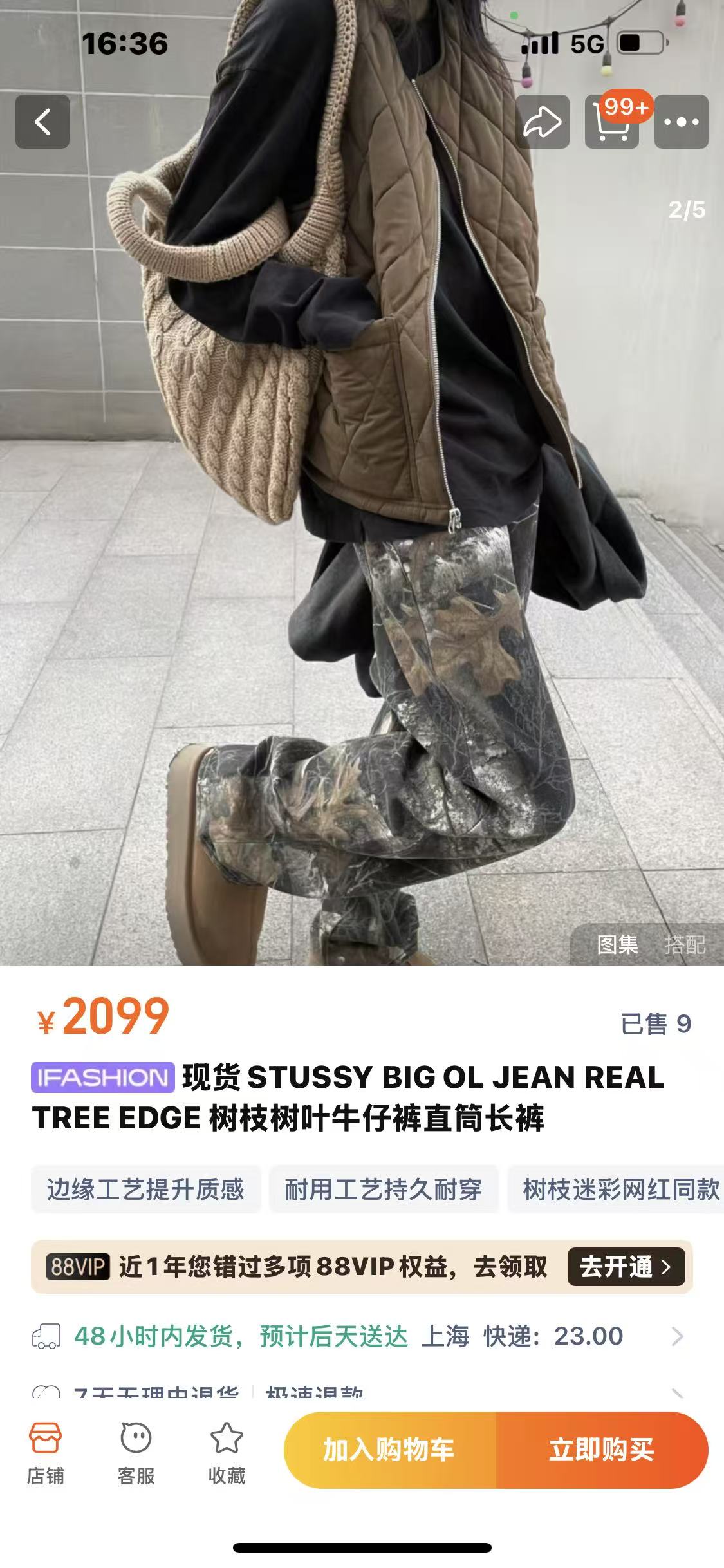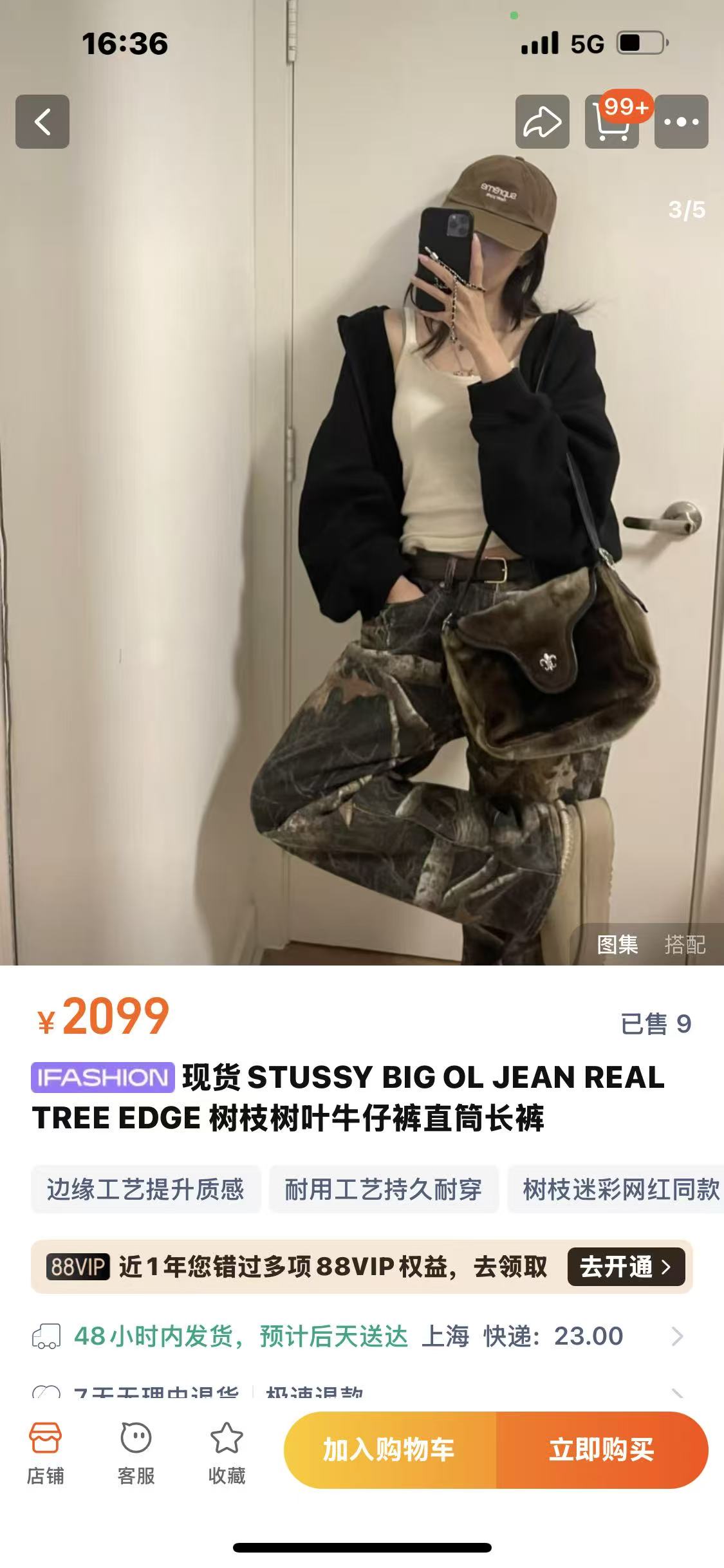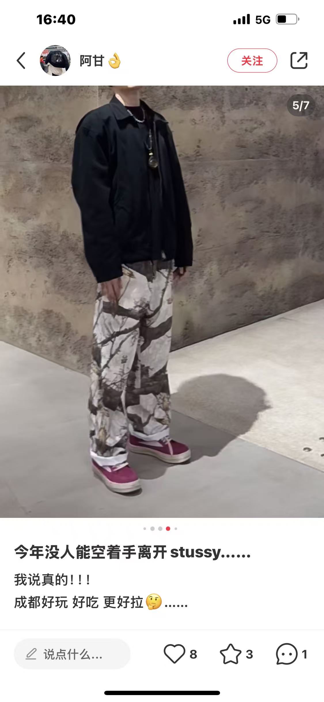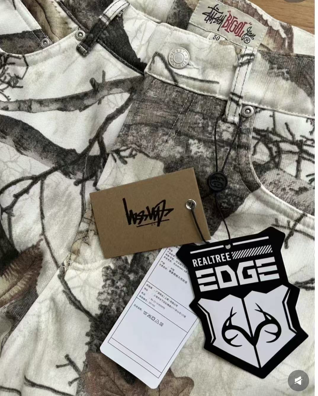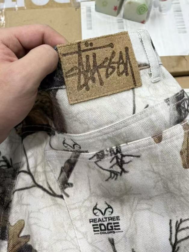 秋冬款,王嘉尔同款 Stussy /斯图西 度假系列 迷彩枫叶🍁树枝落叶满印工装长裤