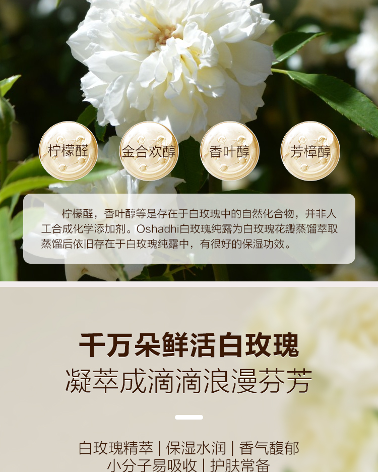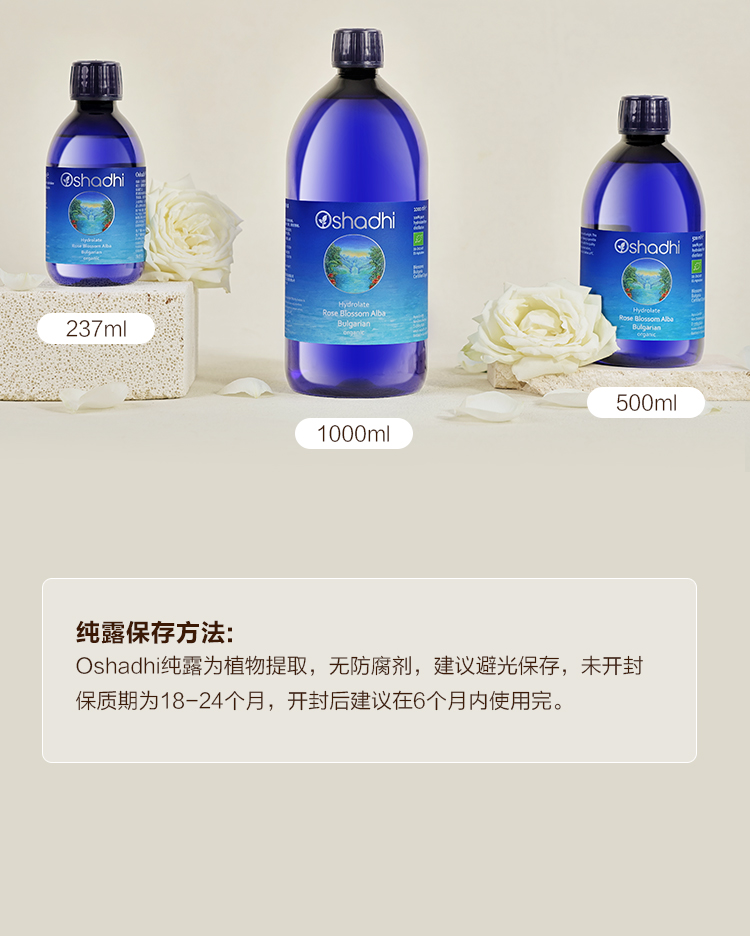 德国O家保加利亚白玫瑰纯露 蔷薇纯露 高冷清冽 花水爽肤水