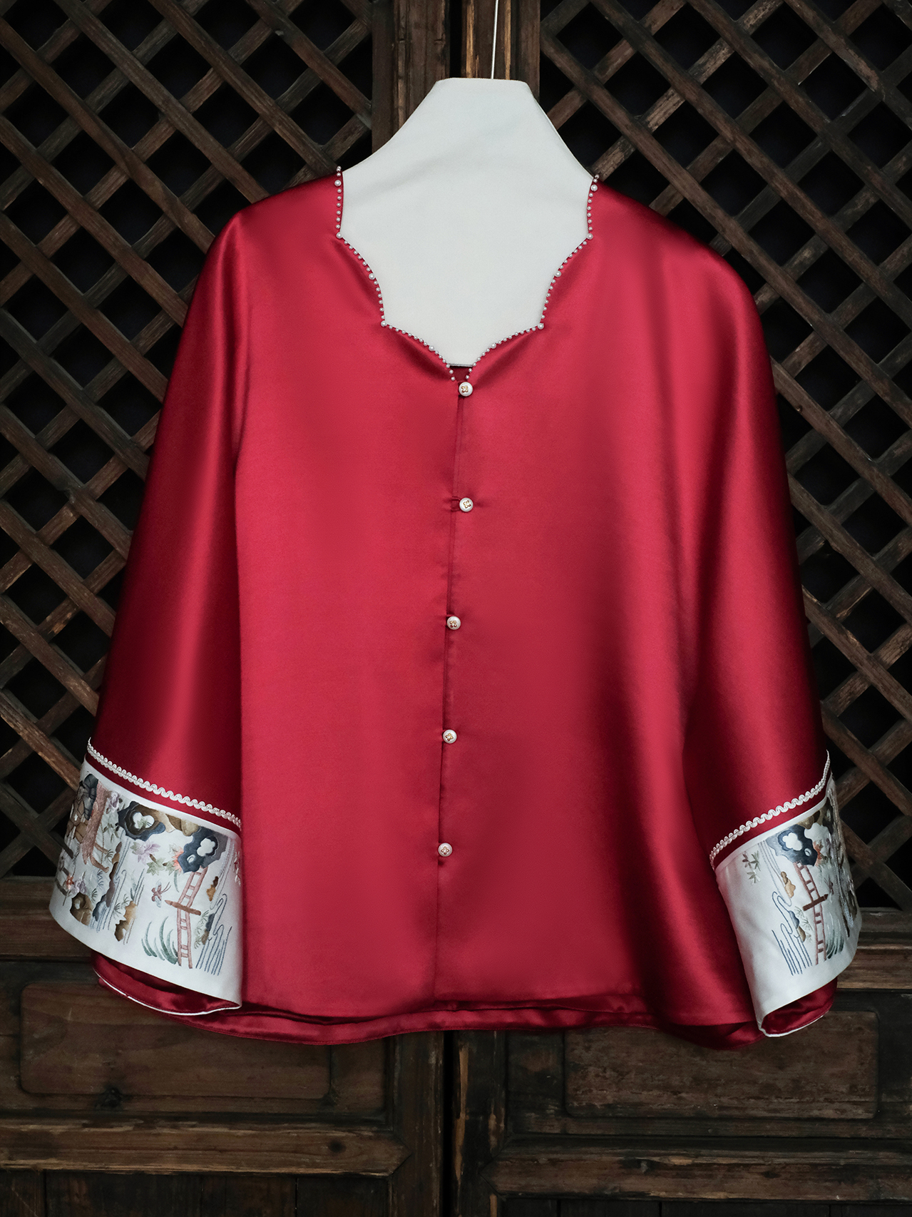 盛唐牡丹大师系列| 重工刺绣西厢丝毛外套-红色