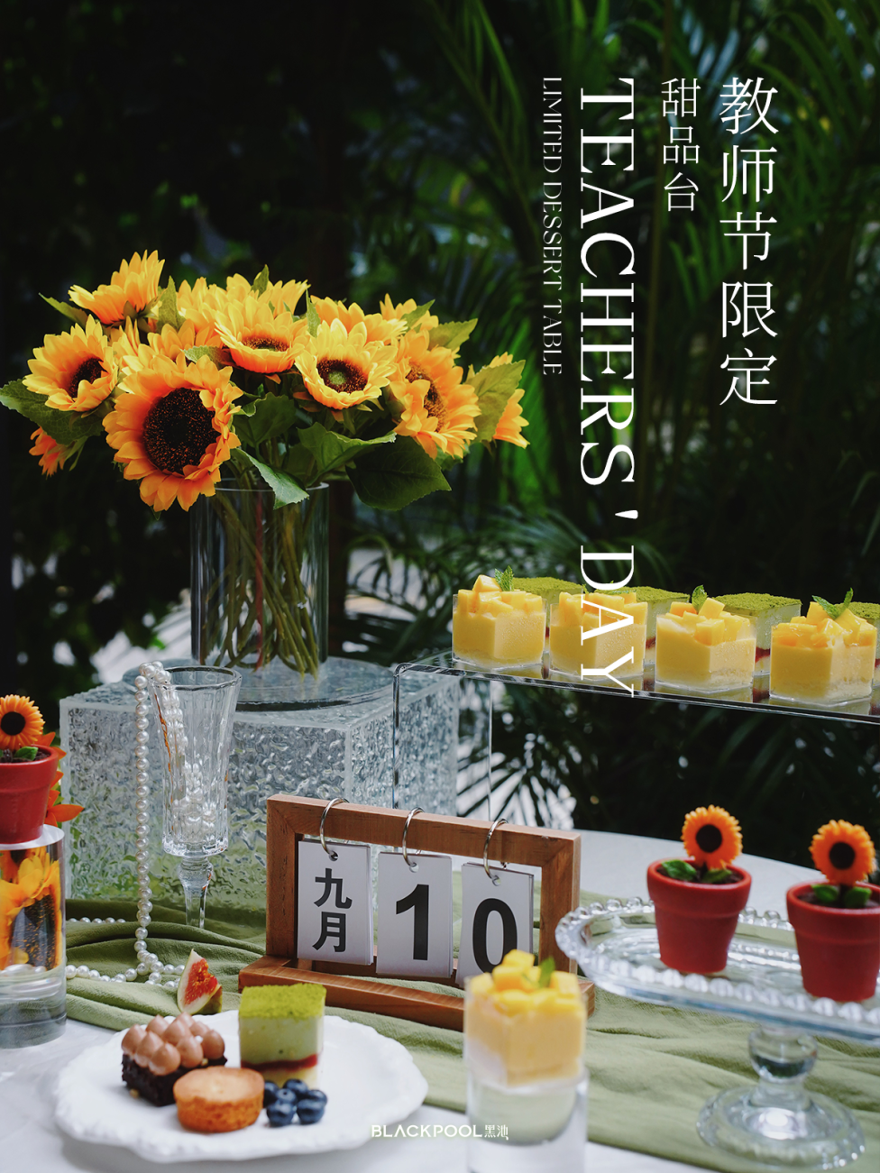 今年教师节,黑池想送老师们一片向日葵花海,在甜品桌上”种“下满满的向日葵,向辛勤耕耘的老师们致以最深的敬意与感激。