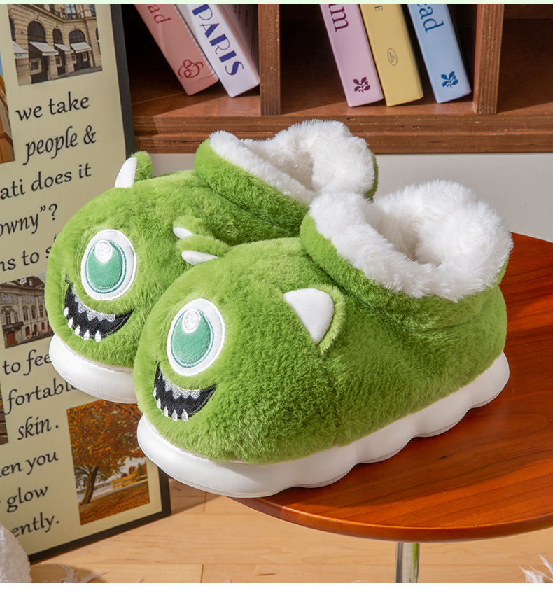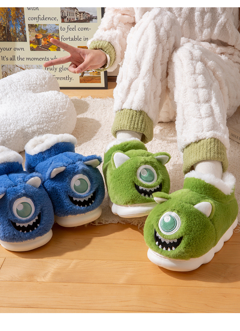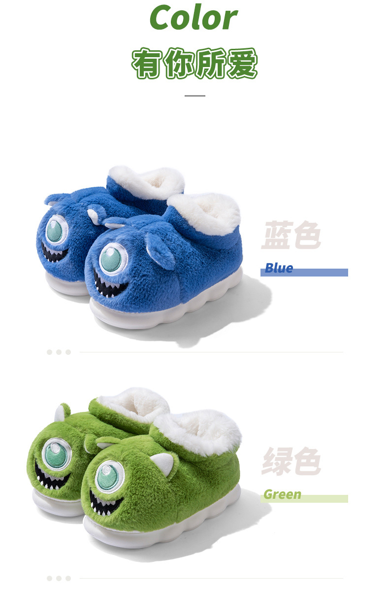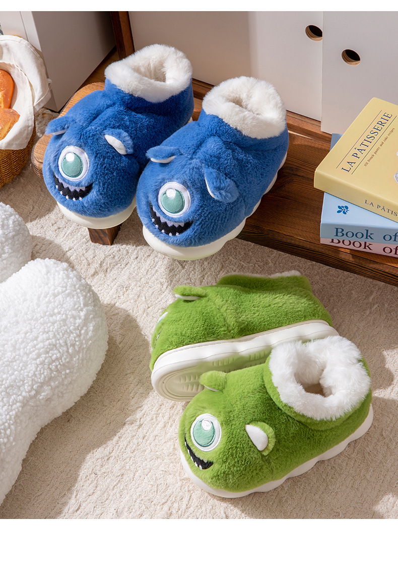 【冬日小怪兽,大眼萌化万物】用双足去感触TA带来的温暖,高密度绒毛温度持久脚感轻盈,冬季加绒保暖室内家居厚底防滑情侣高帮棉鞋QQ