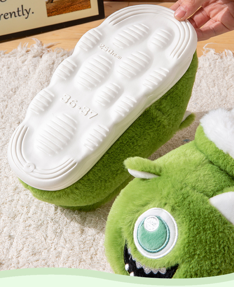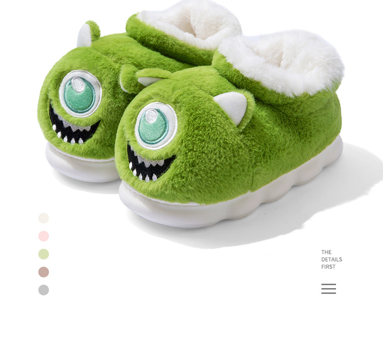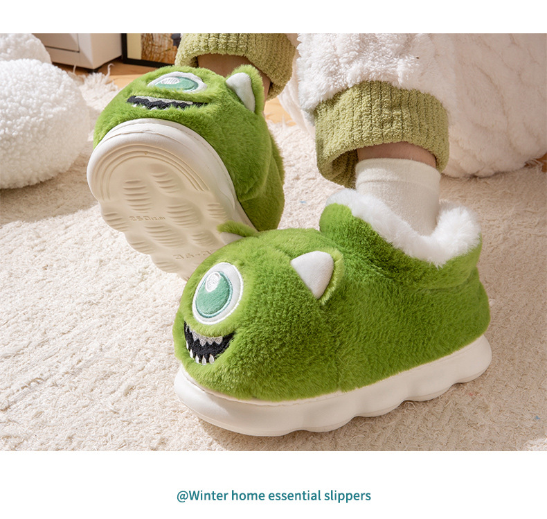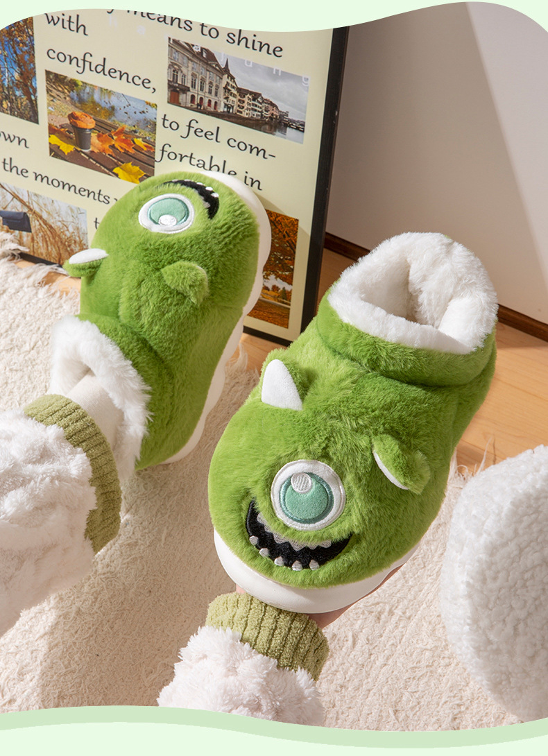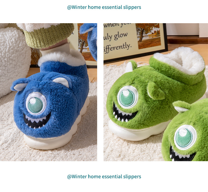 【冬日小怪兽,大眼萌化万物】用双足去感触TA带来的温暖,高密度绒毛温度持久脚感轻盈,冬季加绒保暖室内家居厚底防滑情侣高帮棉鞋QQ