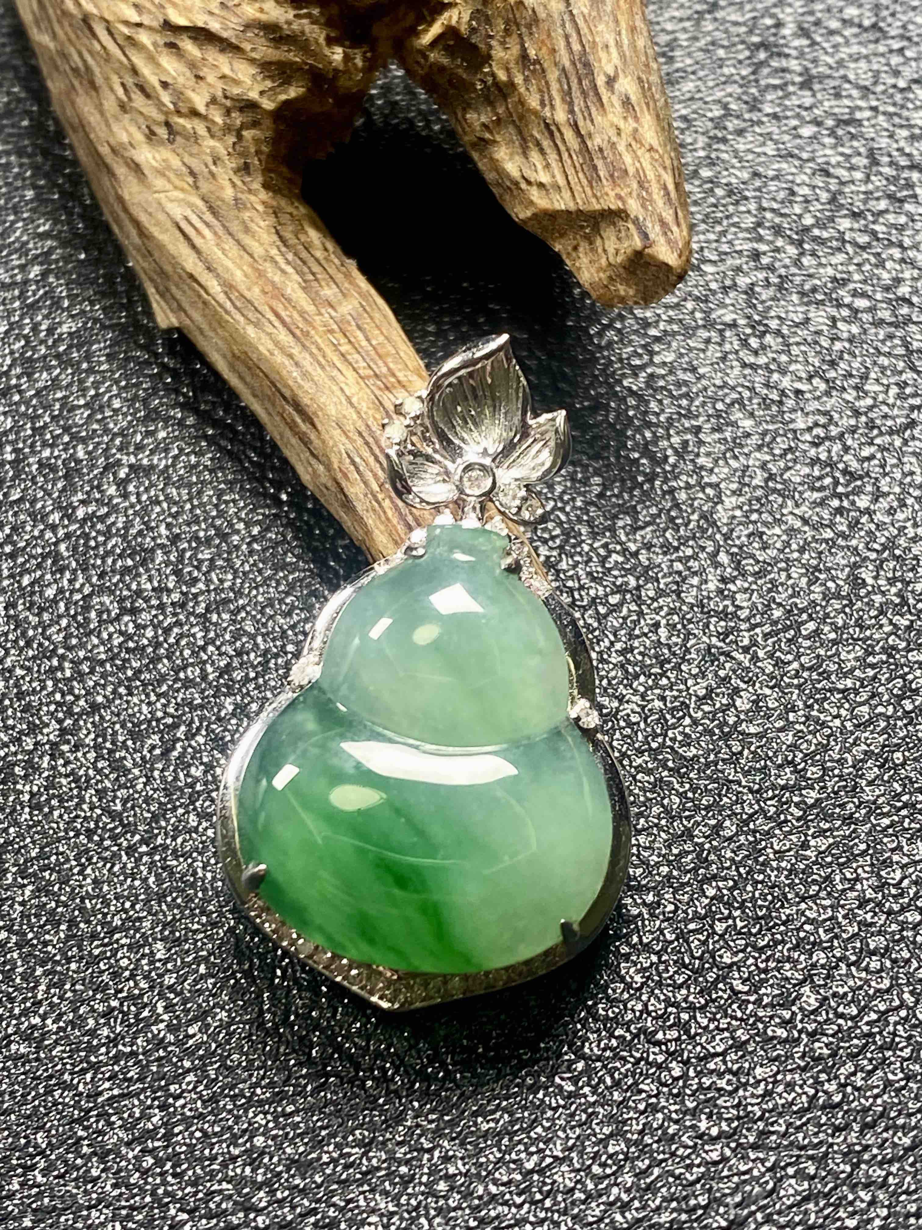 【FC0116】18K镶嵌翡翠飘绿小葫芦吊坠 冰润光泽 飘绿灵动 多子多福 裸石尺寸:19.3*15.8*4mm 超值价💰7600