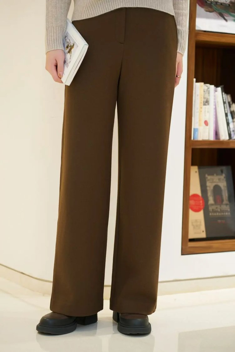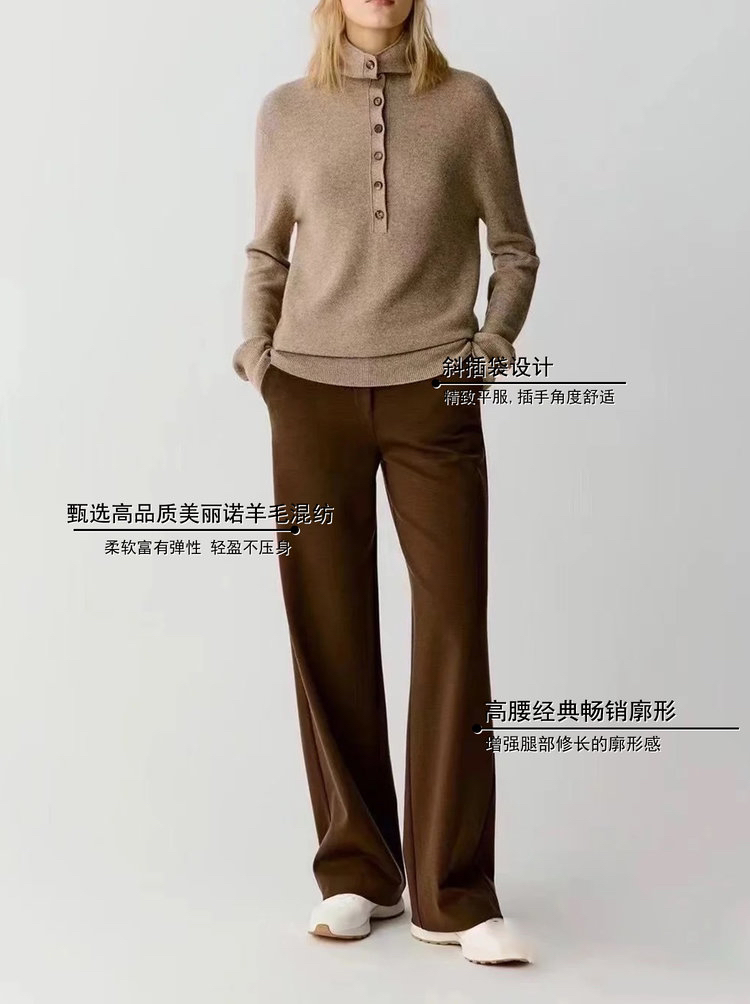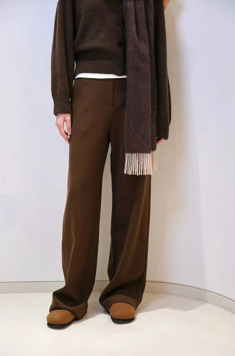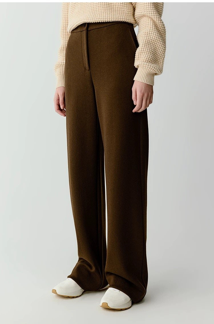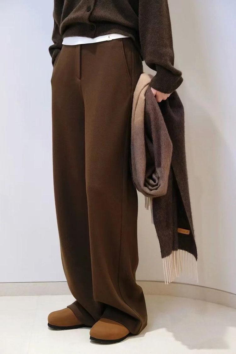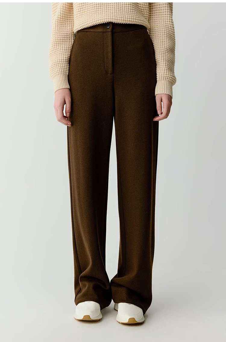 【爆款裤王】针织简约阔腿裤 羊毛混纺针织布直筒裤 炙热咖色 高腰设计 拉长腿部线条 打造松弛穿搭 高腰廓形 宽而不肥
