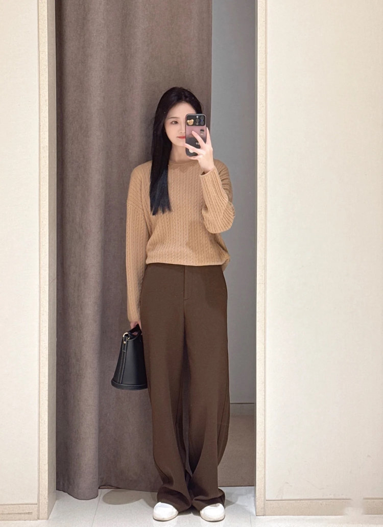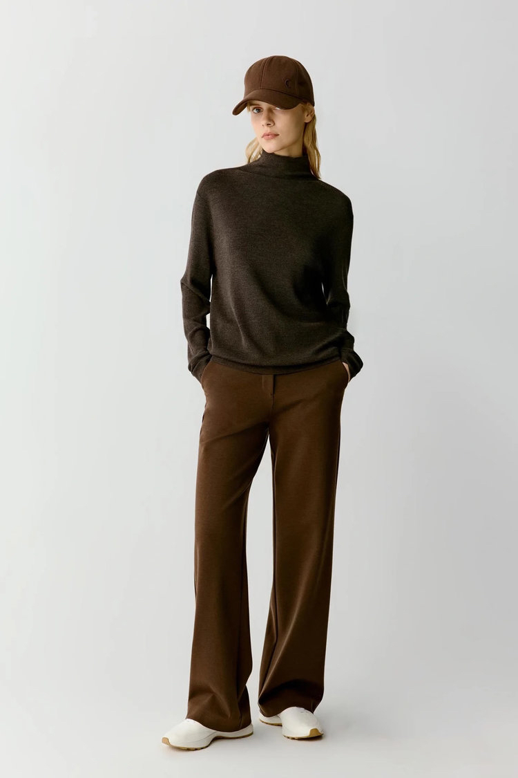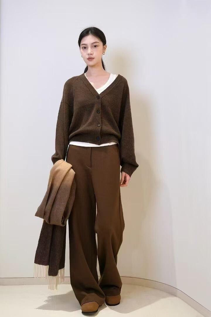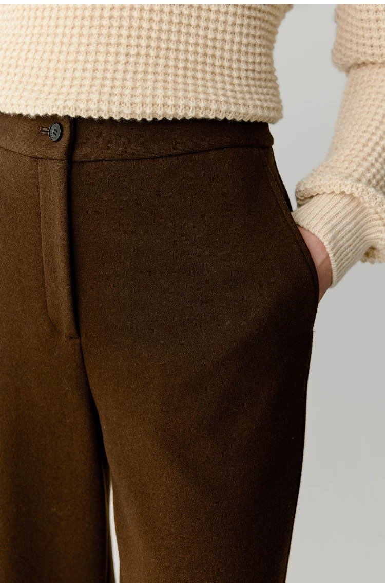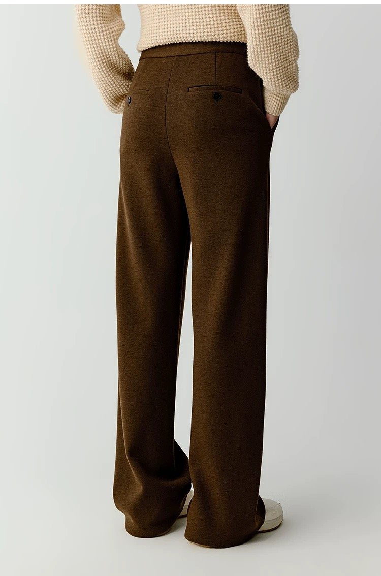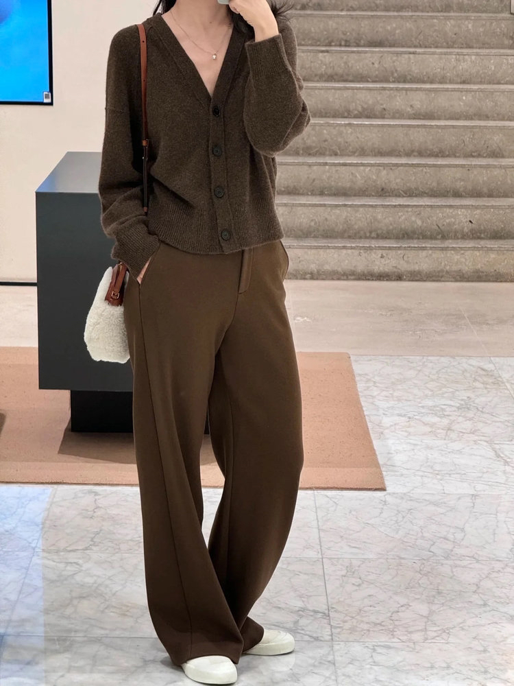 【爆款裤王】针织简约阔腿裤 羊毛混纺针织布直筒裤 炙热咖色 高腰设计 拉长腿部线条 打造松弛穿搭 高腰廓形 宽而不肥