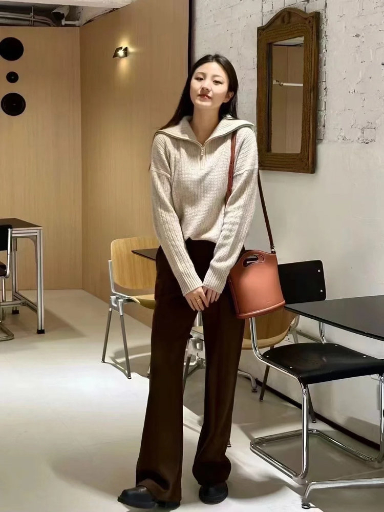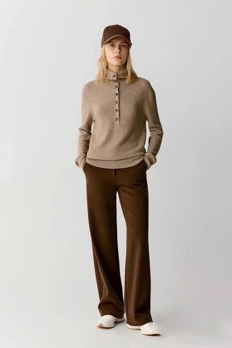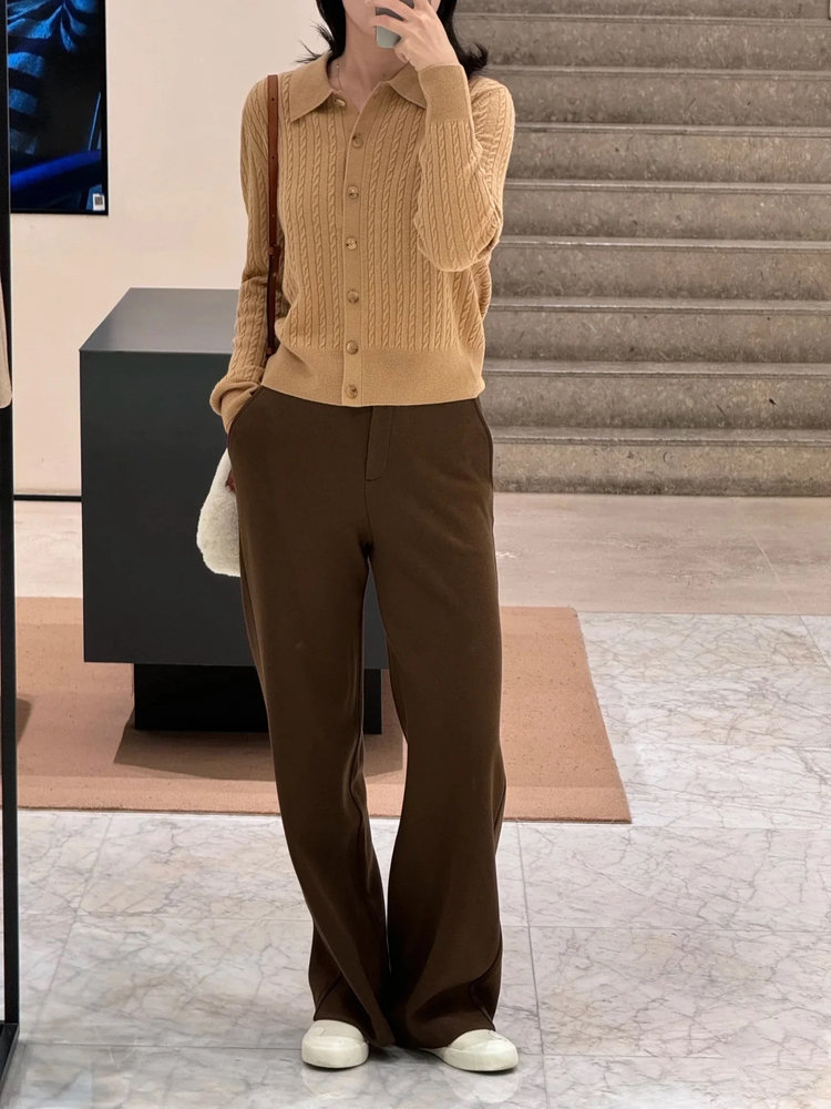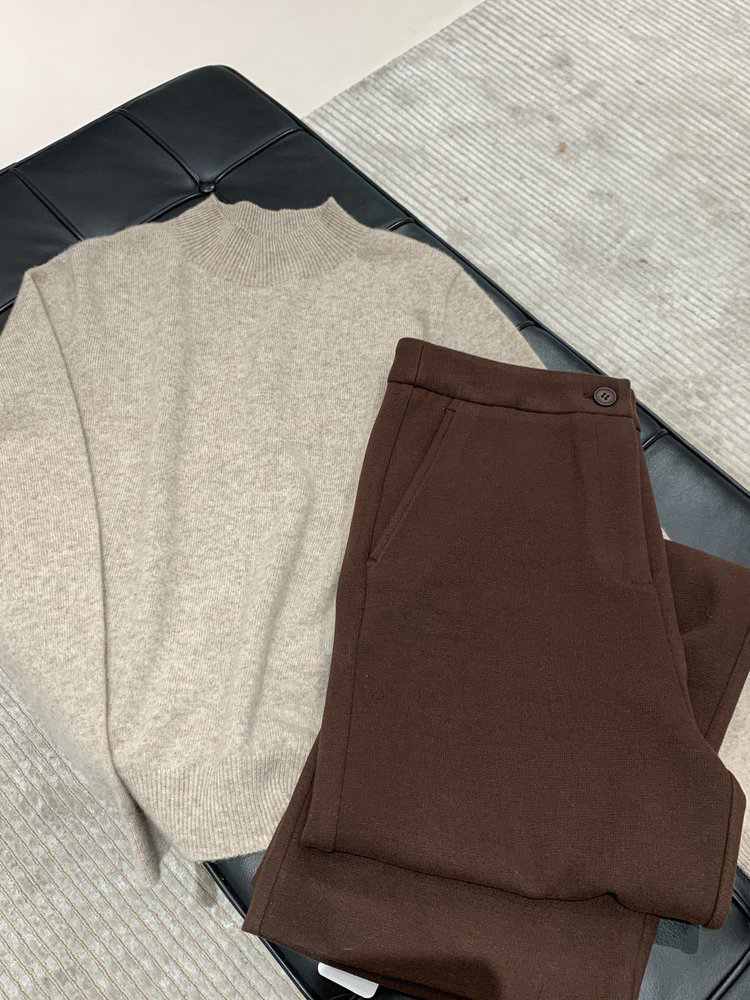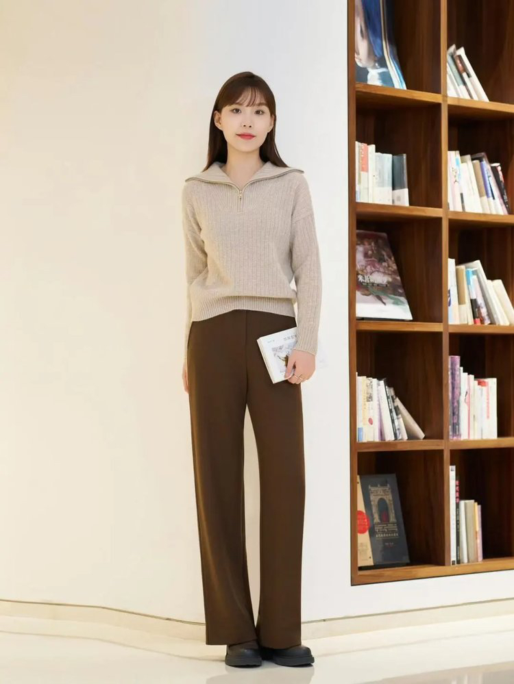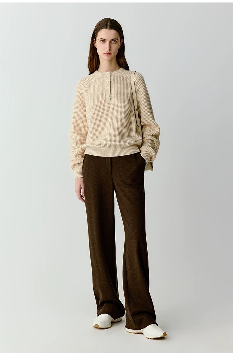 【爆款裤王】针织简约阔腿裤 羊毛混纺针织布直筒裤 炙热咖色 高腰设计 拉长腿部线条 打造松弛穿搭 高腰廓形 宽而不肥